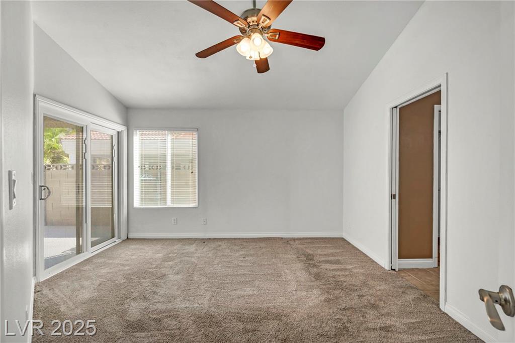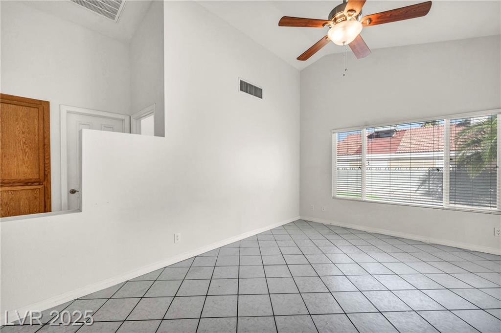This charming single-story home in the Sterling Springs community has been meticulously maintained and thoughtfully upgraded, offering a perfect blend of comfort and style in the heart of Las Vegas. Step inside and immediately feel the care that has gone into this 3-bedroom, 2-bathroom residence. The interior features a spacious, open floor plan with the original, tile flooring and a cozy gas fireplace, creating a warm and inviting atmosphere. But the true gem of this property is the phenomenal backyard with real grass! Designed for both relaxation and entertaining, the landscaping is pristine yet requires minimal effort, allowing you to spend more time enjoying your outdoor oasis and less time on upkeep. Don't miss your chance to own this turnkey retreat.