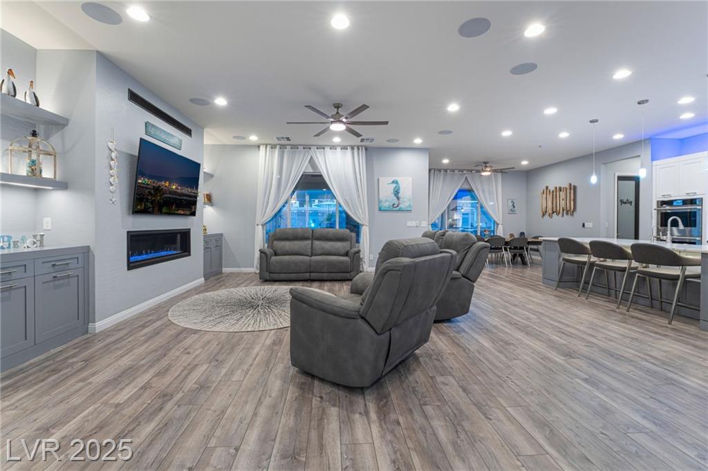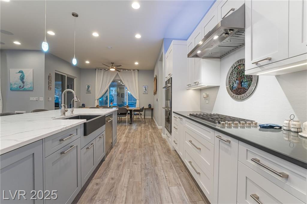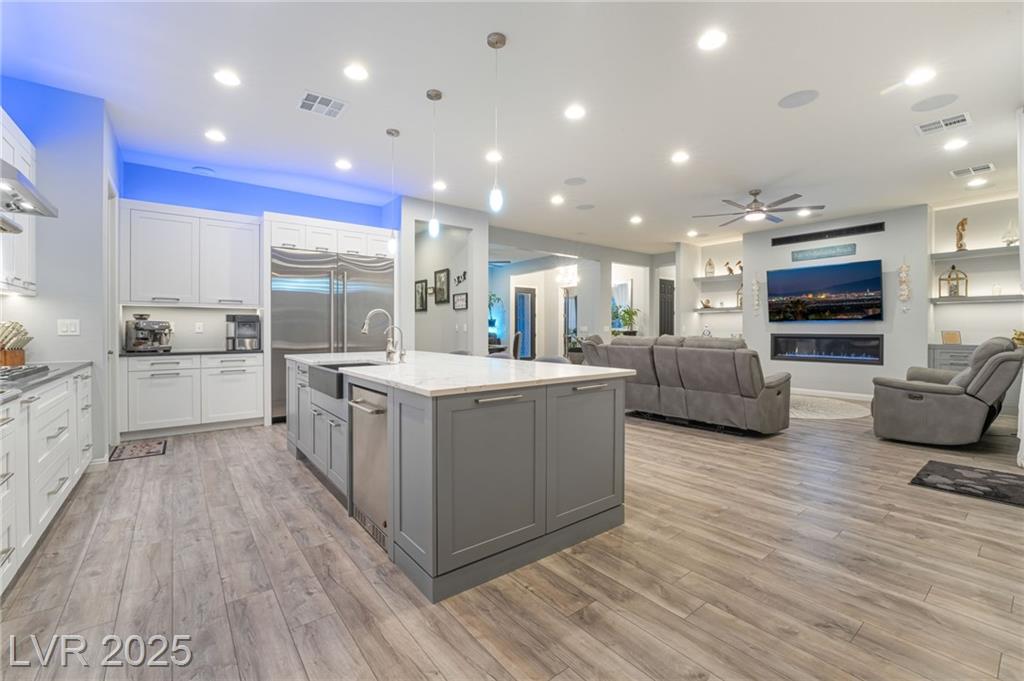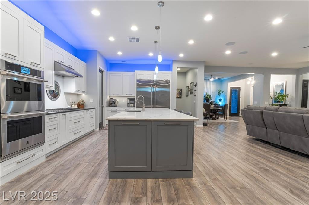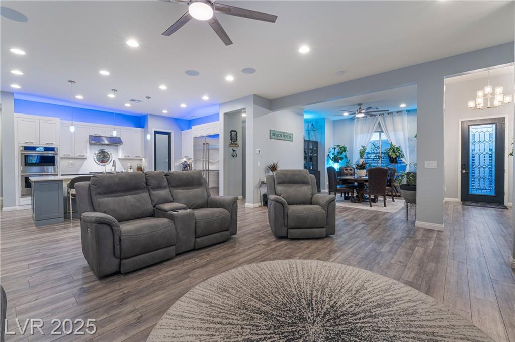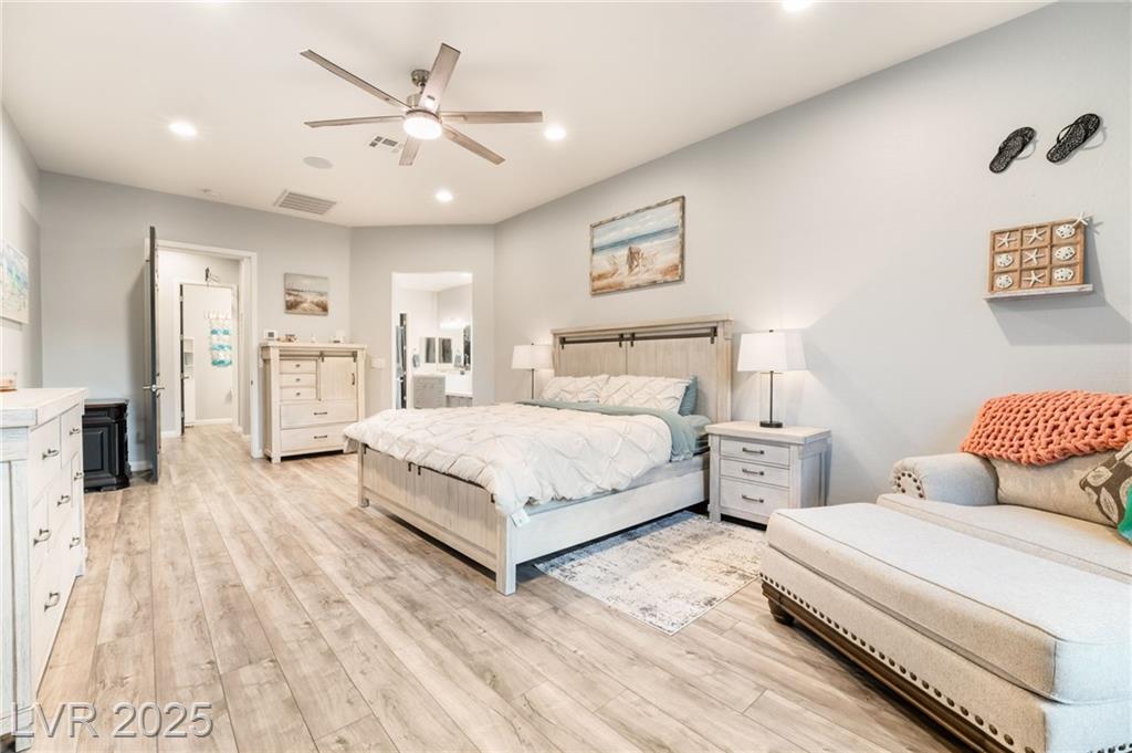 Elevate your lifestyle in this meticulously maintained single-story estate on a half-acre lot with 3,000+ sq. ft. of living space. The 4-bedroom home features a chef’s kitchen with large island, dual pantries, stainless steel appliances, and soft-close cabinetry. Soaring 10’ ceilings brighten the open layout. The luxurious primary suite includes a spa-inspired bath, dual vanities, sit-down makeup area, and two walk-in closets. Each additional bedroom has a private ensuite. A separate RV garage offers 50-amp hookup, sewer access, bathroom, and 12’ gate—all with no HOA. Enjoy a sparkling pool, covered patio, and multiple entertaining areas. Thoughtful upgrades, flexible living, and refined style make this home exceptional.