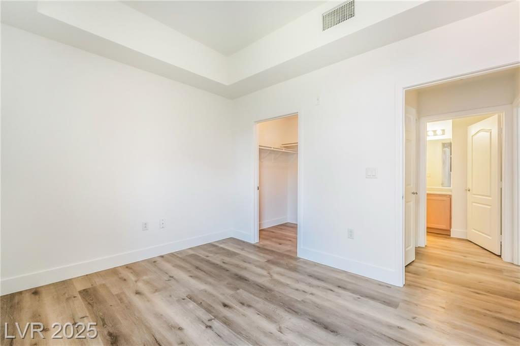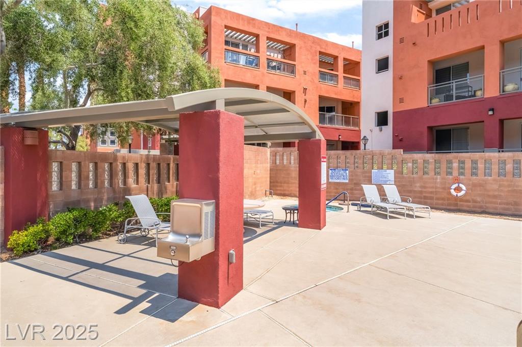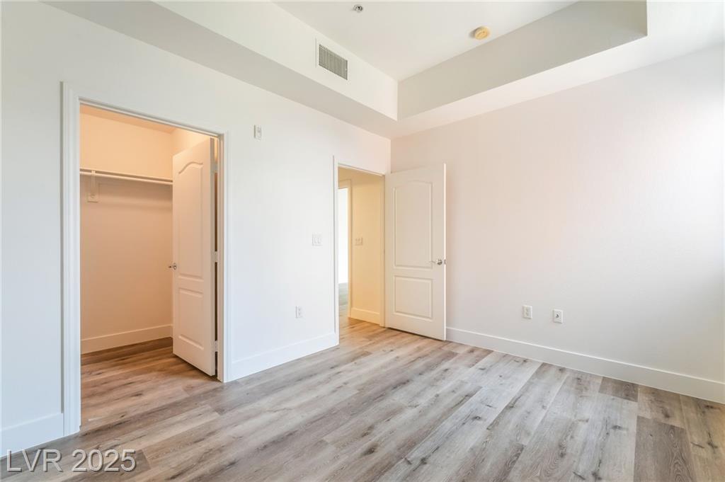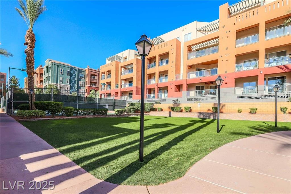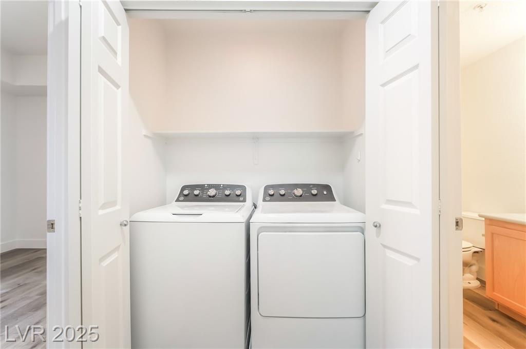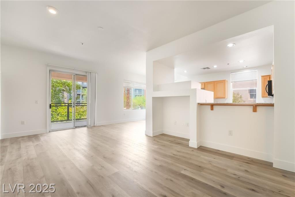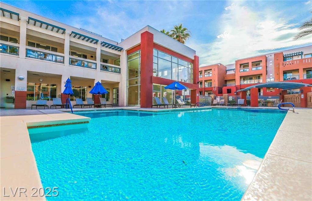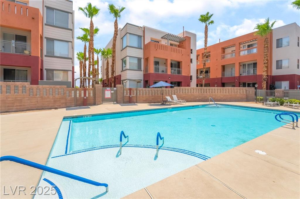 Welcome to 59 E Agate Ave Unit 303! This 2 bed, 2 bath condo in the guard-gated Park Avenue community is just minutes from the Strip. Bright open layout with new luxury vinyl plank flooring, fresh paint, and no carpet. Kitchen features granite counters, breakfast bar, and appliances included. Private balcony accessible from both the living room and primary suite. Spacious primary offers walk-in closet and dual vanities. In-unit laundry + assigned underground parking. Amenities: 2 pools, full gym, tennis courts, clubhouse & 24/7 security. Low-maintenance living or a great investment!