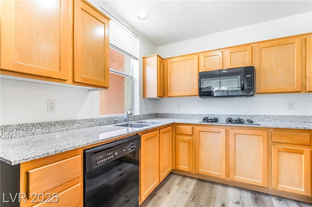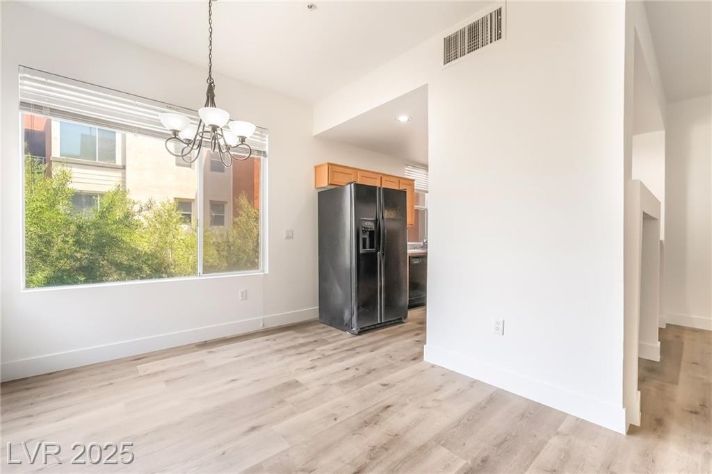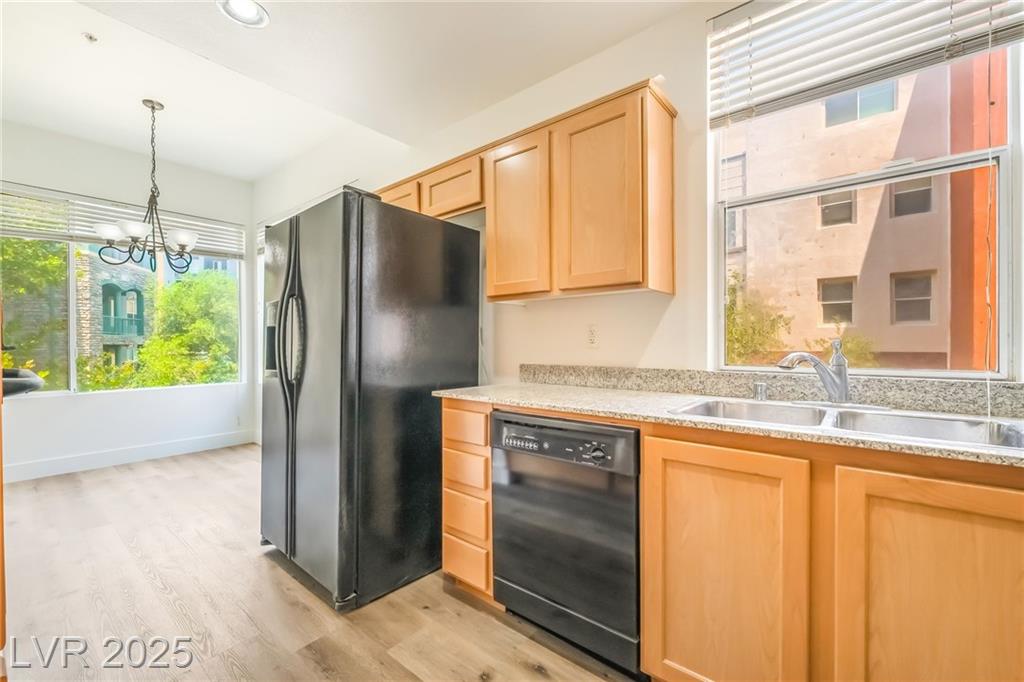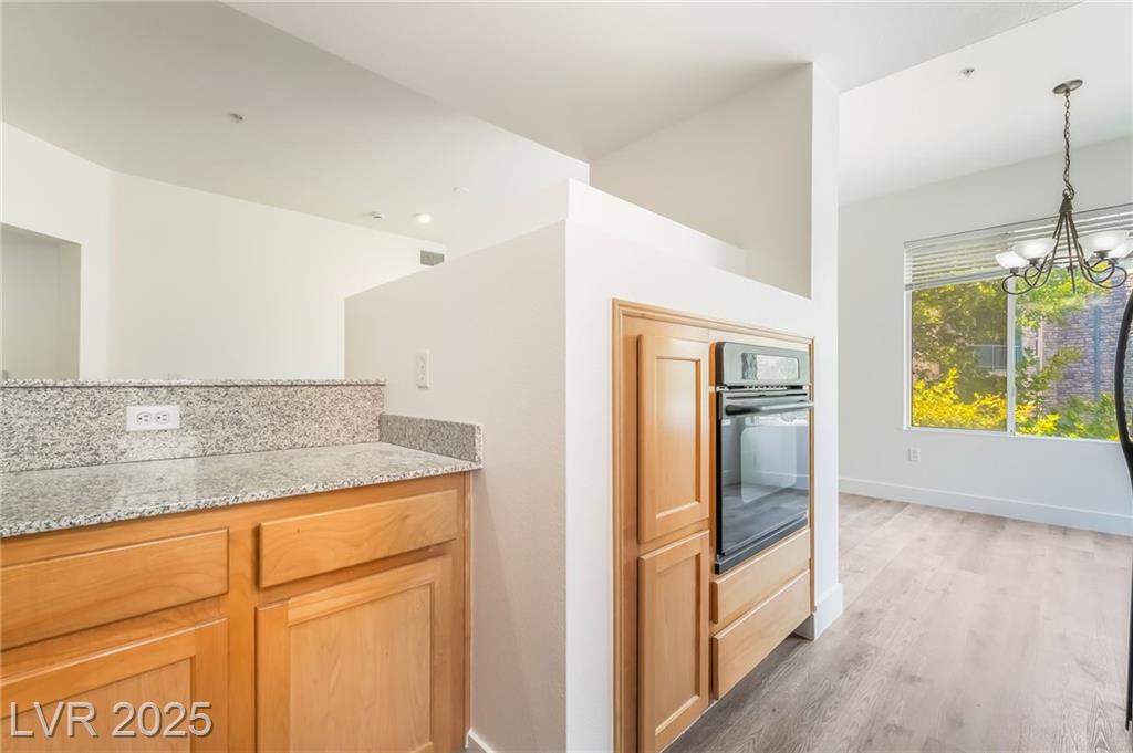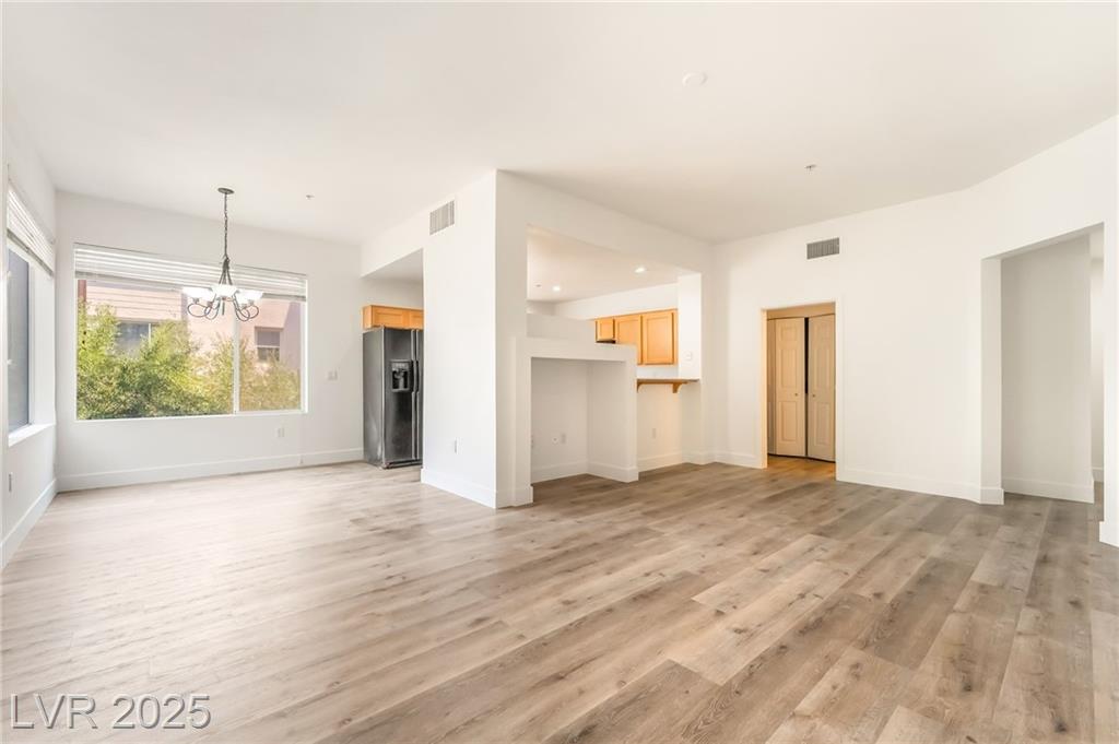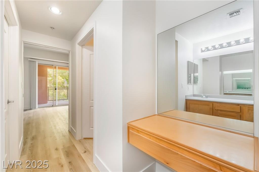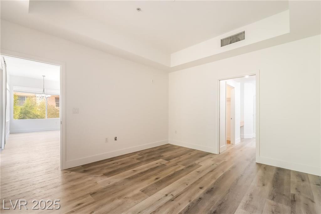 Welcome to 59 E Agate Ave Unit 303! This 2 bed, 2 bath condo in the guard-gated Park Avenue community is just minutes from the Strip. Bright open layout with new luxury vinyl plank flooring, fresh paint, and no carpet. Kitchen features granite counters, breakfast bar, and appliances included. Private balcony accessible from both the living room and primary suite. Spacious primary offers walk-in closet and dual vanities. In-unit laundry + assigned underground parking. Amenities: 2 pools, full gym, tennis courts, clubhouse & 24/7 security. Low-maintenance living or a great investment!