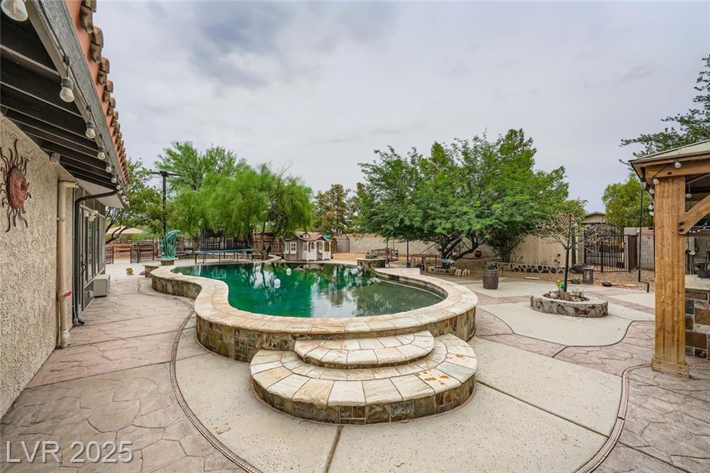 *** A PEACEFUL PARADISE !! *** 1 Acre property with stalls, chicken coops, dog house, shaded area for a turnout or small arena, all fenced and gated for safety and security of kids & animals *** BRING ALL YOUR ANIMALS & ENJOY THIS UNIQUE DISNEYLAND TYPE OF PLACE !! *** 2,712 sq ft 4 Bedroom 3 Bathroom remodeled and updated with 2 Sunrooms both front & back entries, attached office/workshop and small cabana out back - not included in square footage *** 2 car garage *** ON A WELL!! *** BEAUTIFUL swimming pool with stone wall, built-in BBQ and sitting areas all around to enjoy this beautiful and peaceful atmosphere *** Adults, kids & animals together will enjoy this wonderful ambience *** A MUST SEE !! ***