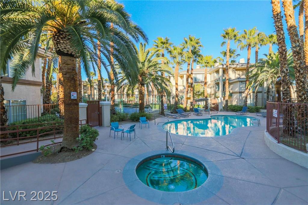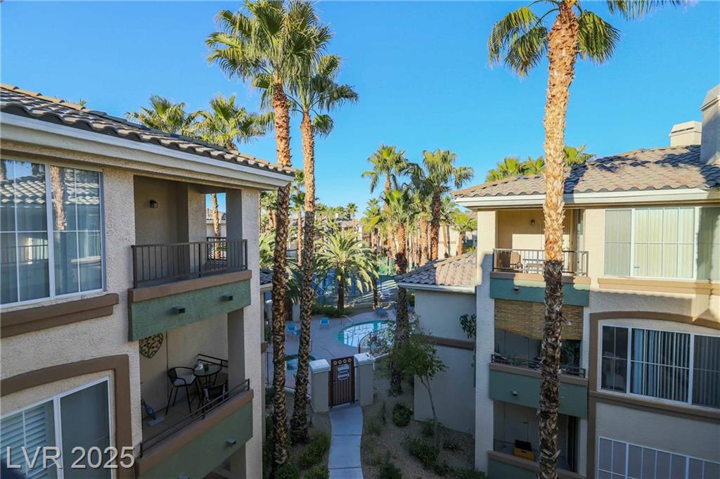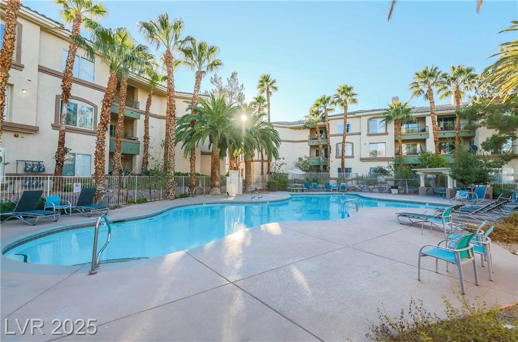This charming 2-bedroom, 2-bathroom condominium is located in the highly desirable Vistana Condominiums, a gated community. Situated on the third floor, this single-level unit features an open floor plan, including a living room with a cozy fireplace. The kitchen comes with all appliances, and there is a laundry room equipped with a washer and dryer located just off the kitchen. You can enjoy a private balcony, along with several pools and spas, a well-designed fitness area, a tennis court, BBQ areas, and a clubhouse. The property offers easy access to the 215 freeway and is conveniently located near restaurants and more. Plus it is just blocks away from the new Durango Station Casino.
