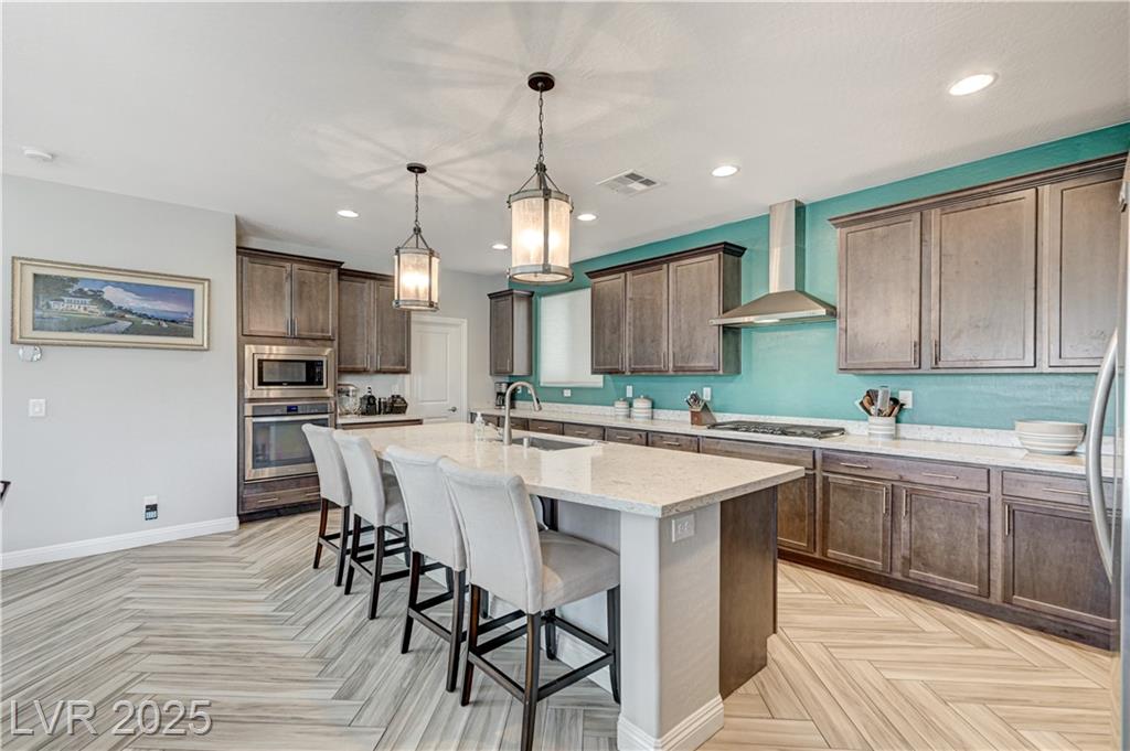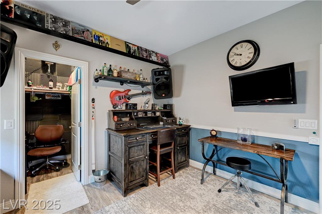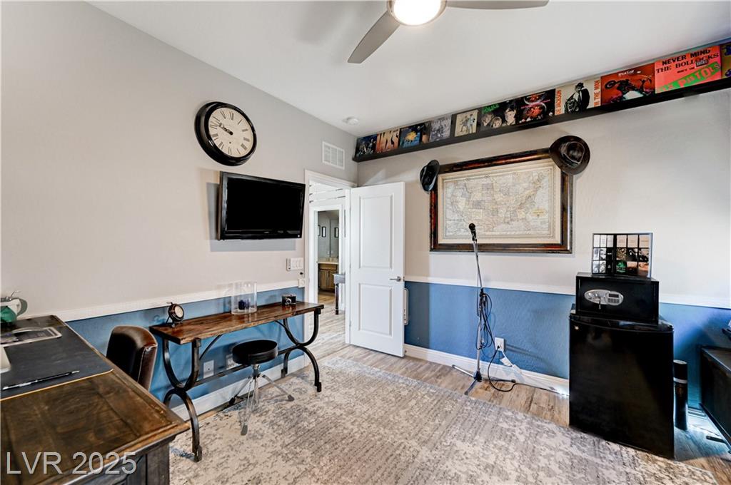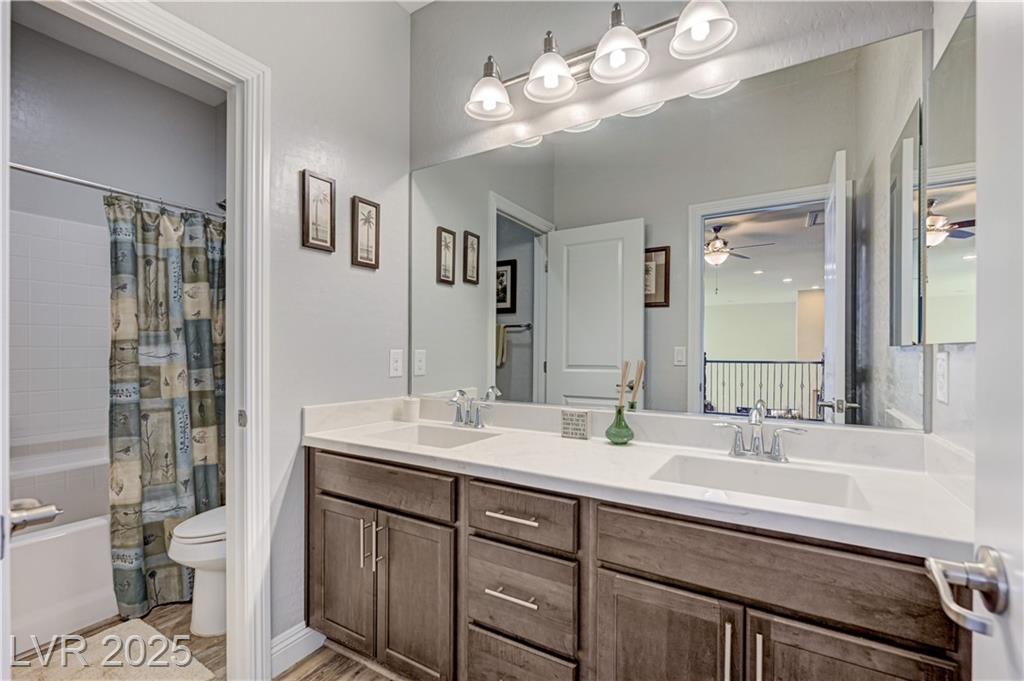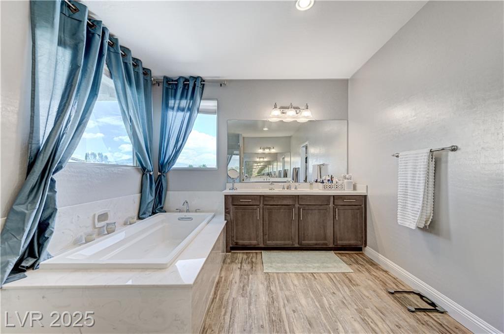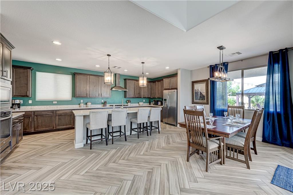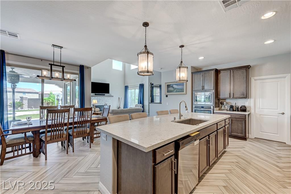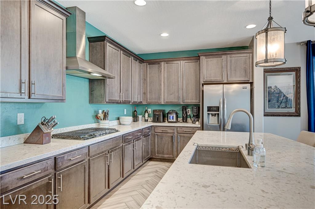 This stunning 1/4-acre property showcases a beautifully upgraded 3,235 sq. ft. two-story home with a private-entry casita/in-law suite featuring a full bath and tile flooring. Inside, enjoy herringbone wood-style tile, soaring ceilings, and an open-concept layout with a spacious family room, gourmet kitchen with quartz counters, walk-in pantry, and dining area. Upstairs offers wood laminate, a luxurious primary suite with spa-like bath, dual walk-in closets, and a covered balcony with mountain views. A loft, two bedrooms with walk-in closets, a third bedroom with en-suite bath, dual vanity guest bath, and laundry room complete the second floor. Step outside to your own oasis—covered patio, custom pool & spa, two gazebos (one outdoor kitchen-ready), plus a serene courtyard with gas/firepit hookup. Ideally located near Skye Canyon amenities, shopping, and freeway access—with no SIDS/LIDS. Call today for your private tour!