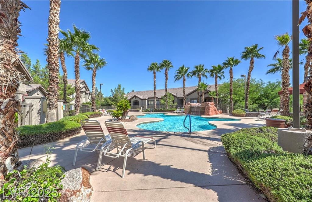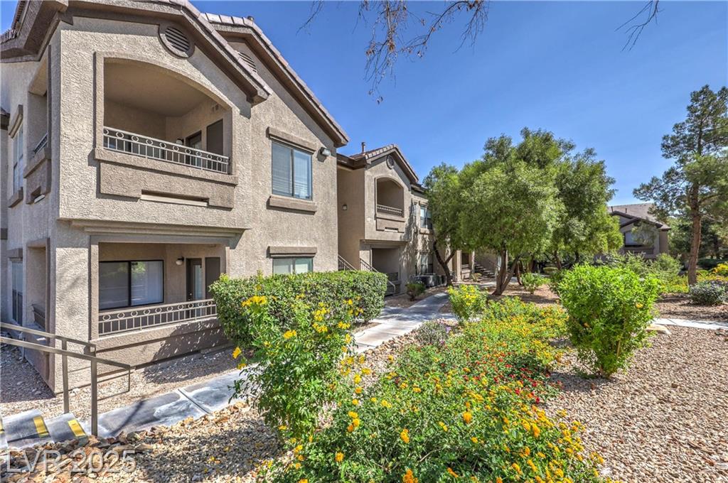 Amazing 1st floor unit. Floorplan features open and spacious living room w/separate dining area. Wood floors and tile flooring throughout. Kitchen w/breakfast bar & all appliances included. Nice size bedroom w/custom walk-in closet and vanity area. Bathroom features a Garden tub and direct access from both bedroom and main area hallway. Full size laundry room. Cover Patio/Balcony with extra room for storage. Assigned covered parking space. New A/C unit recently installed. Community amenities include resort style pool with waterfall & spa, exercise room, club house and much more. Beautiful community near Sky Canyon, conveniently located to multiple parks, and freeway access with many dining and shopping options.