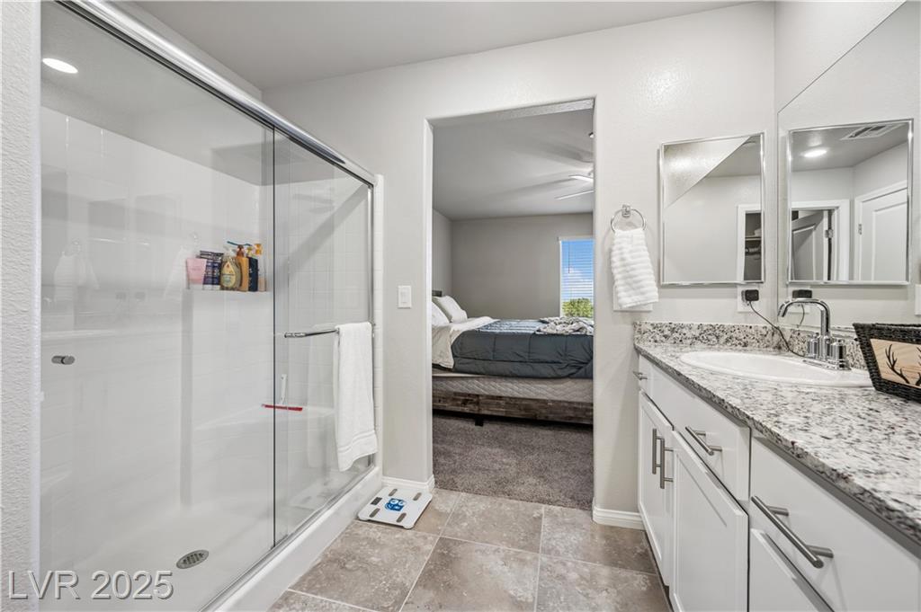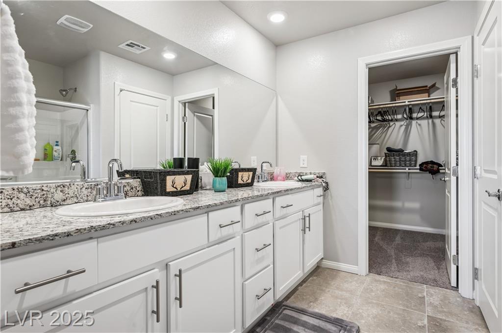 Shows like a model! Spacious 4 bedroom home that has beautiful mountain views from front & back! Inviting front porch entry! Spacious Open Concept layout! Gorgeous tile flooring thru out downstairs! Gourmet Kitchen with GRANITE countertops, stainless steel appliances, Ivory white cabinetry! Large Walk in Pantry! Sunny & bright layout! Great eat in nook and dining area! Primary Suite is separate with a large walk in closet, a primary bath with GRANITE countertops, double sinks separate oversized soaking tub and a walk in shower! All bedrooms have mountain views!! Nice separate laundry room upstairs! Smart home technology! Tankless water heater! Large FINISHED pool size backyard! Minutes to Exploration Park in Mountain's edge! Enjoy hiking, biking & playground area! ** No neighbors behind! ** Energy efficient home!!
