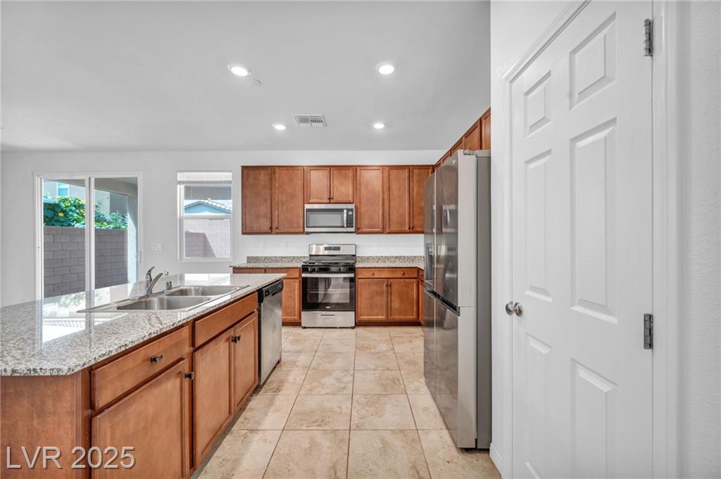 Introducing a rare new offering in Southwest Las Vegas—a beautifully crafted 4-bed, 2.5-bath home built in 2022, nestled within a secure gated community. Step inside and you’ll find an open-concept chef’s kitchen outfitted with sleek stainless-steel appliances, perfectly complementing the modern finishes throughout. Enjoy one main-floor bedroom for flexible living, plus a loft upstairs for work or play—all under soaring 9-foot ceilings that heighten the spacious feel. Located just minutes from Rainbow Blvd and Russell Rd, this home offers unparalleled convenience—close to top-rated schools, shopping, dining, and medical facilities. Opportunities like this—new construction in a gated enclave—don’t come often. Schedule your private tour today and discover why this residence is the perfect combination of comfort, style, and smart design.