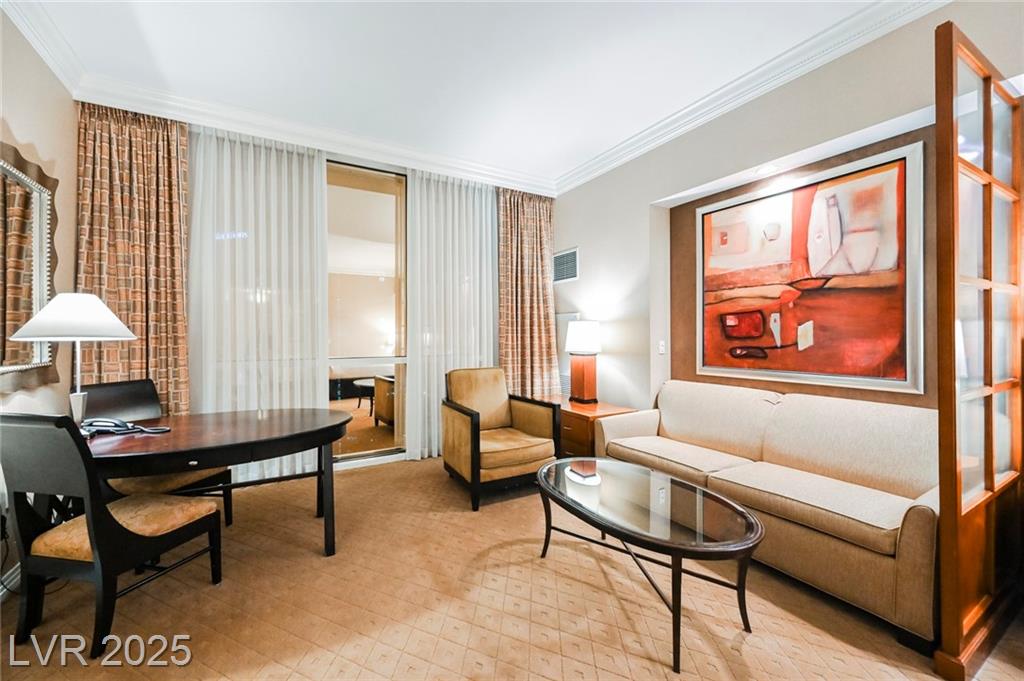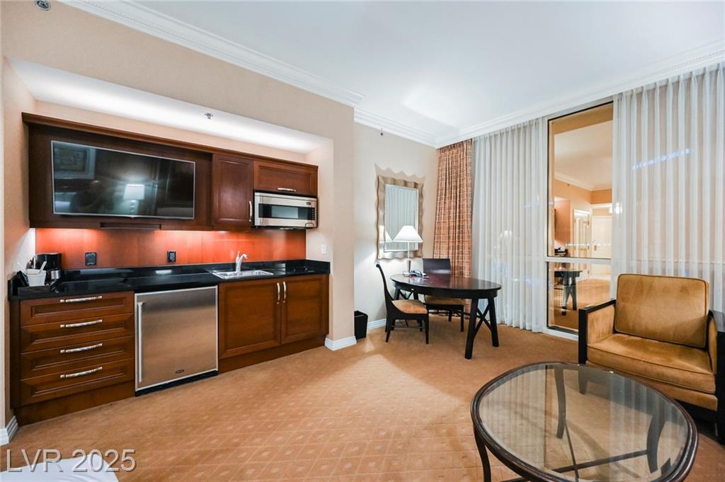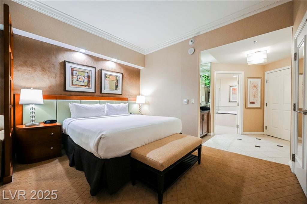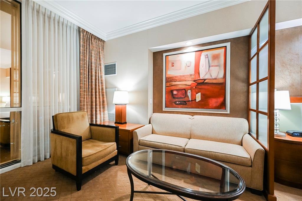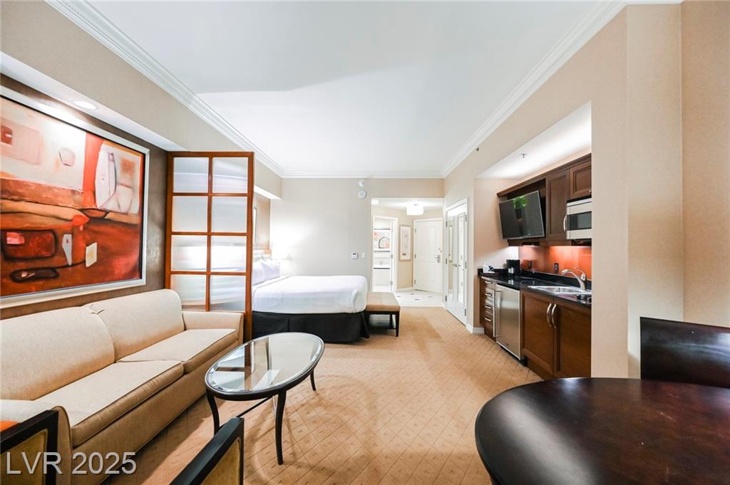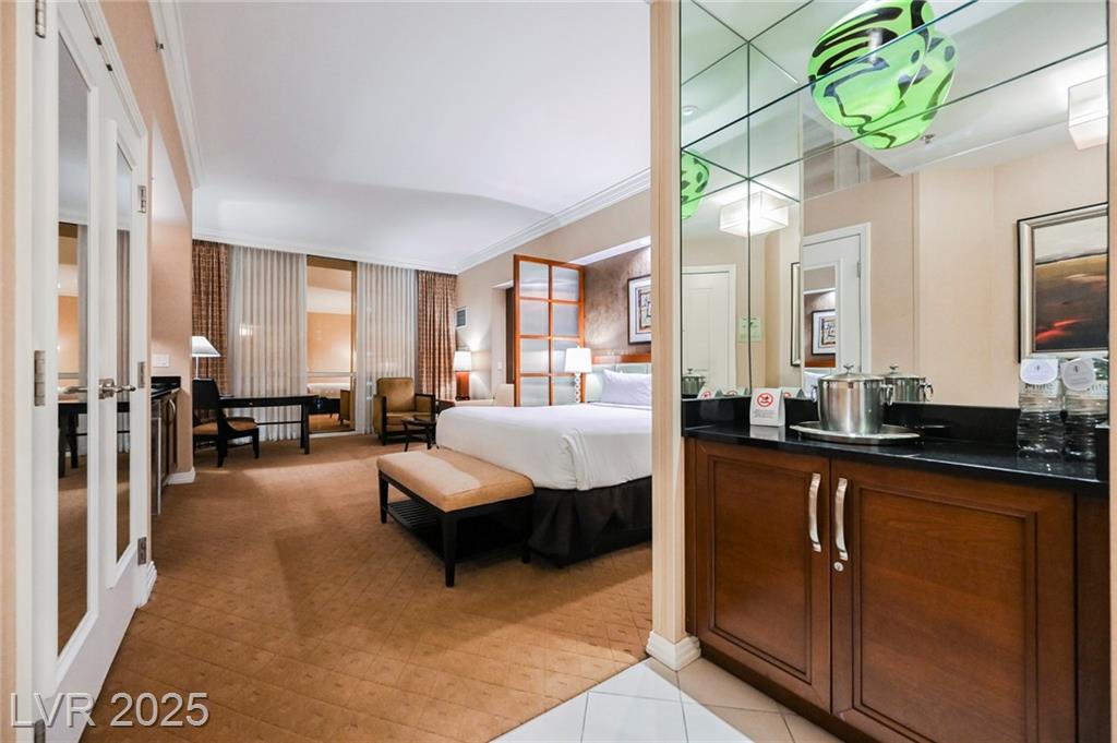Panoramic Strip View Suite offering breathtaking views of the iconic Las Vegas Strip. The fully furnished turnkey suite features a kitchenette with high-end stainless-steel appliances, a two-burner stove, microwave, refrigerator, sink with granite countertops. Built-in entertainment center, closet with safe and extra bedding. Large bathroom with double sinks, jacuzzi tub, and walk-in shower. The unit comfortably sleeps four, with a luxurious king bed and pullout sleeper couch. MGM Signature's 3 private, heated pools, spas, and cabanas. Lounge with full bar, gym, valet, concierge, Starbucks, and laundry! Connected to MGM Grand, Wet Republic Ultra Pool, Lazy River, several high-end restaurants, casino, and MGM Grand Spa. The onsite rental program, AIRBNB, or third-party rental program is available.