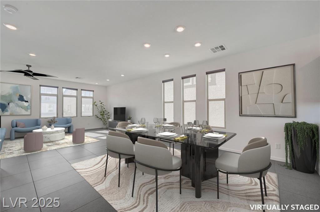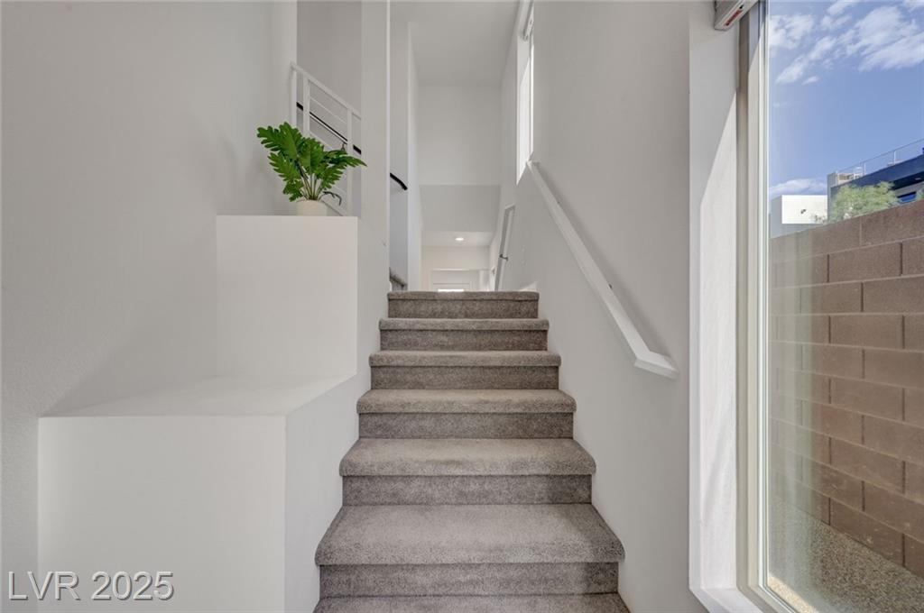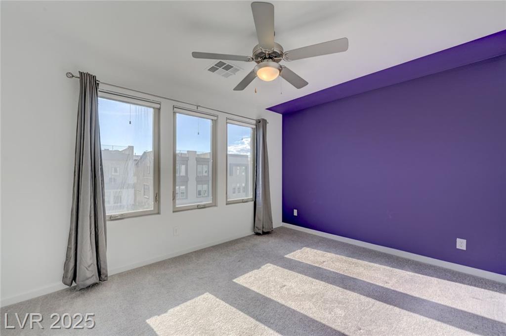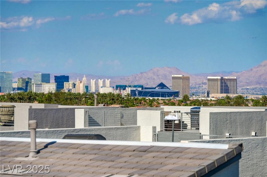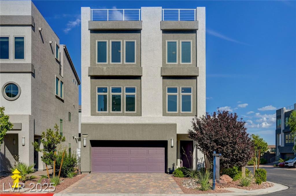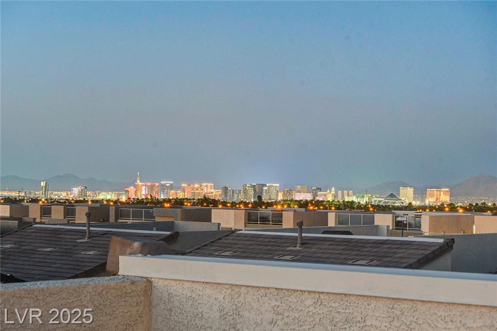 Gorgeous 3 story luxury home in a gated community in the Southwest! SELLER WILL DO $10,000 TOWARDS BUYERS INTEREST RATE BUY DOWN. Rooftop deck offering breathtaking panoramic Strip, City, and Mountain views. Featuring 4 bedrooms, 2.5 baths and 2 car garage. Flexible 1st floor room that can be converted as a bedroom, den, office, gym, or playroom. Main floor boasts a spacious family room, gourmet kitchen with granite counters, large island, walk-in pantry & included appliances. Upgrades w/ quartz bathroom countertops, tile flooring in main areas, carpeted bedrooms, ceiling fans, window coverings, tankless water heater, salt water conditioner, alarm system, and Ring doorbell with camera. Primary suite offers a spa bath w/ double sinks, separate tub, shower, and custom walk-in closet with built in closet organizers. Enjoy modern landscaping, a private patio w/ turf & paver & a community pet park. Located near 215, shopping, dining, schools, Durango Casino, UnCommons & the new Costco.