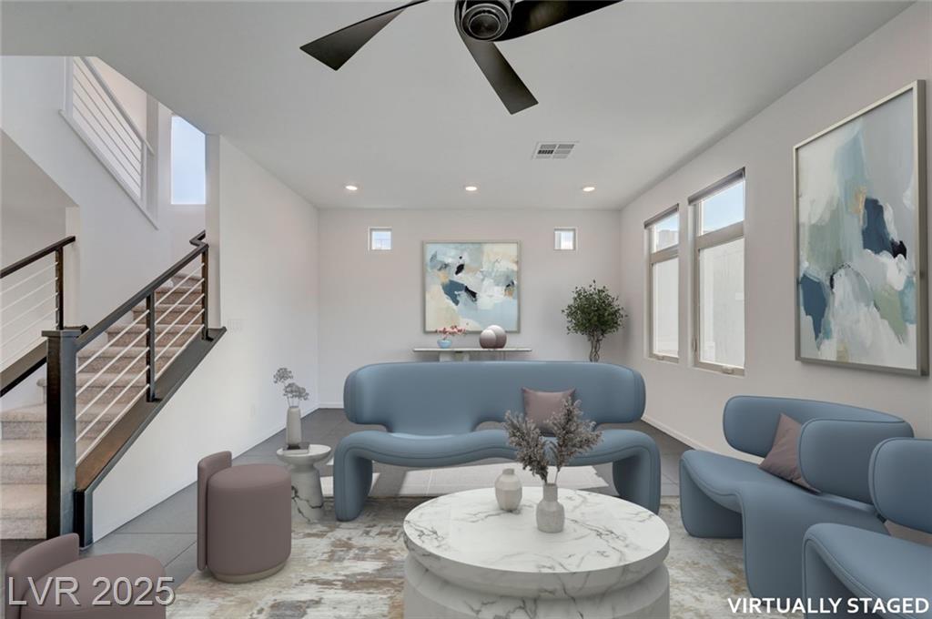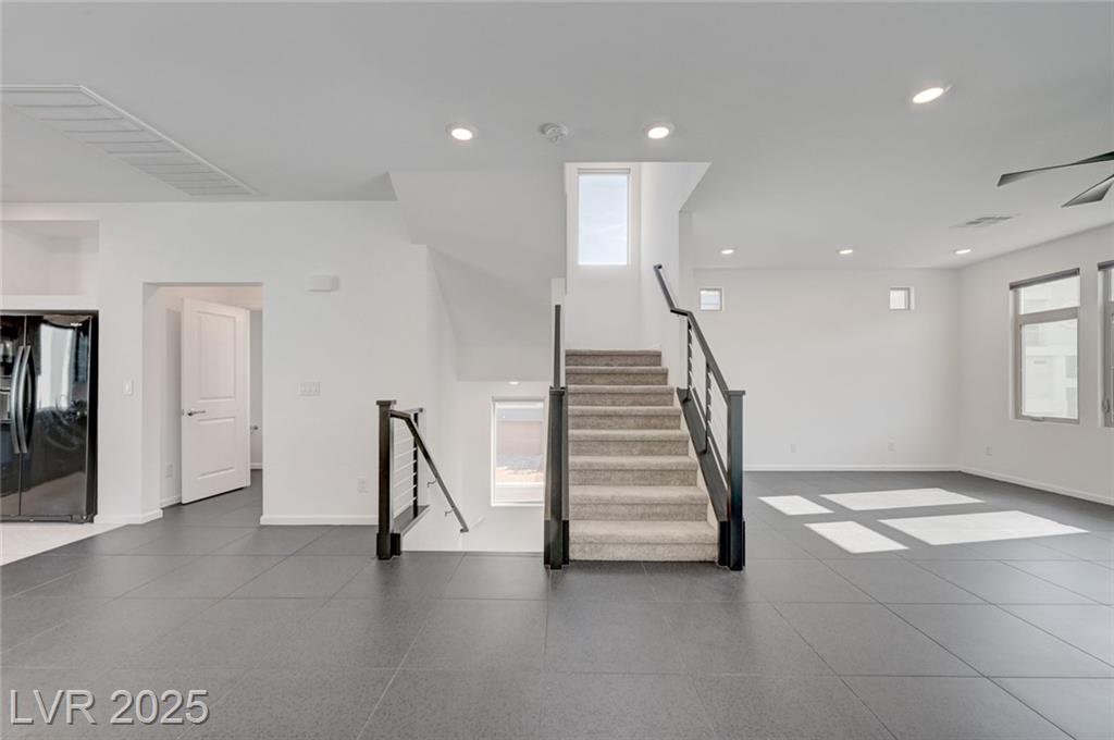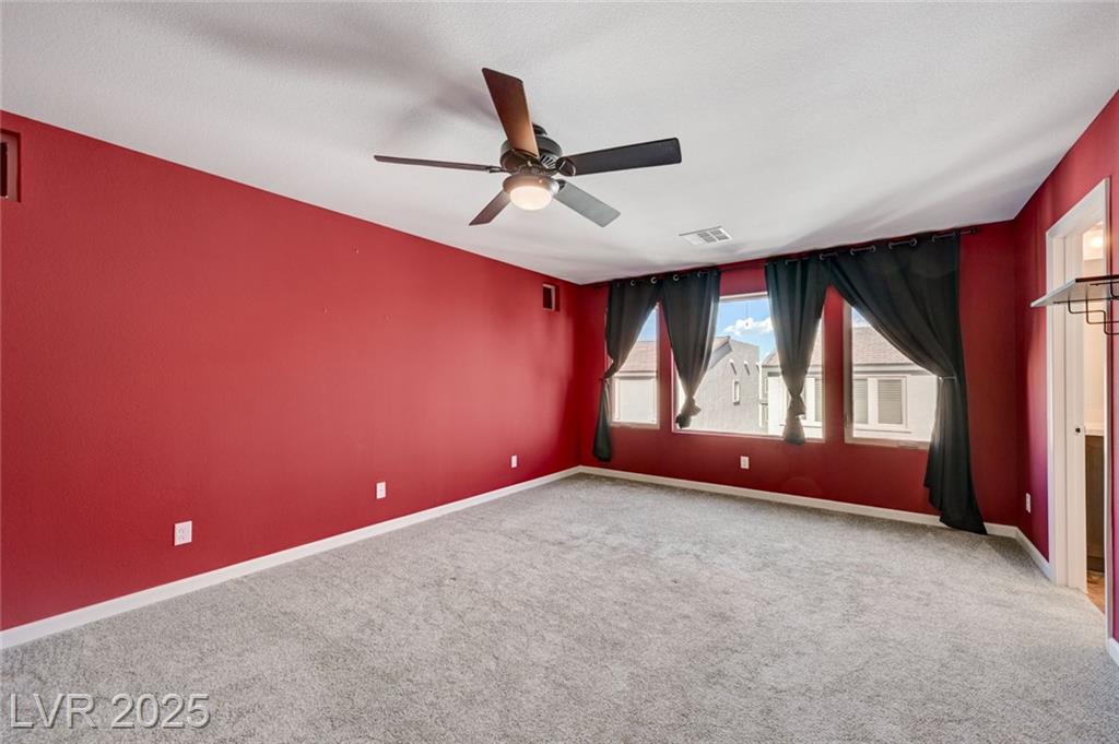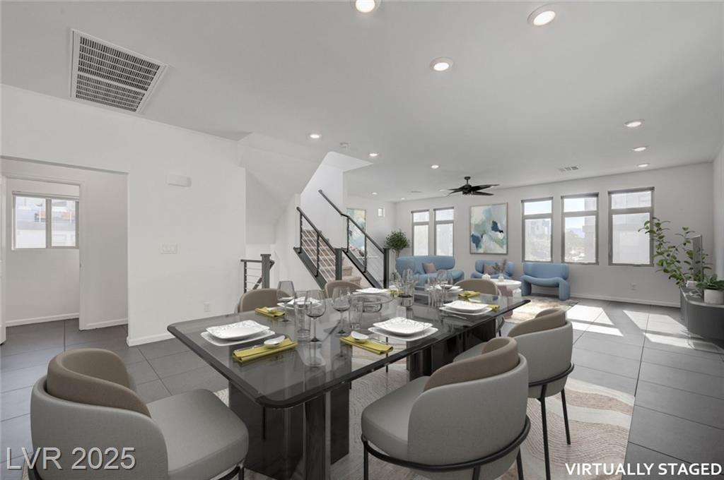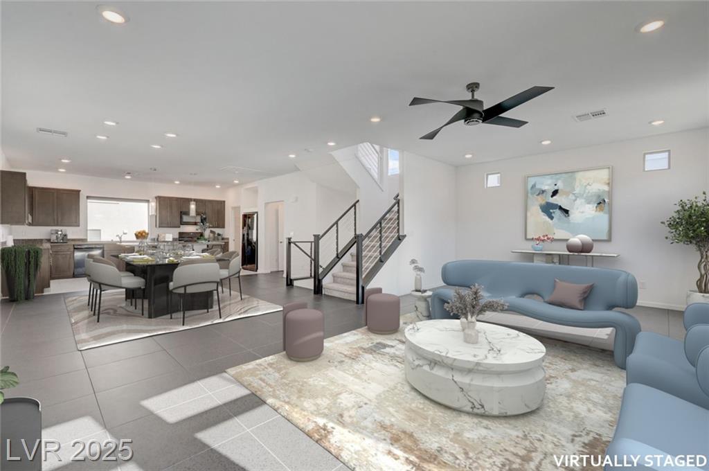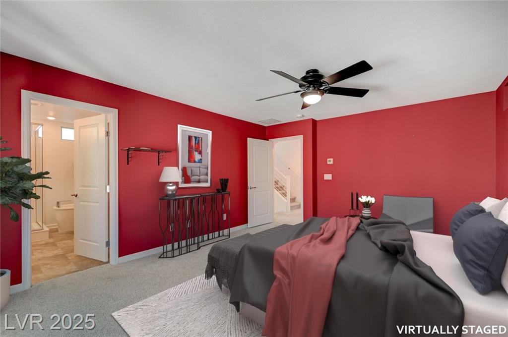 Gorgeous 3 story luxury home in a gated community in the Southwest! SELLER WILL DO $10,000 TOWARDS BUYERS INTEREST RATE BUY DOWN. Rooftop deck offering breathtaking panoramic Strip, City, and Mountain views. Featuring 4 bedrooms, 2.5 baths and 2 car garage. Flexible 1st floor room that can be converted as a bedroom, den, office, gym, or playroom. Main floor boasts a spacious family room, gourmet kitchen with granite counters, large island, walk-in pantry & included appliances. Upgrades w/ quartz bathroom countertops, tile flooring in main areas, carpeted bedrooms, ceiling fans, window coverings, tankless water heater, salt water conditioner, alarm system, and Ring doorbell with camera. Primary suite offers a spa bath w/ double sinks, separate tub, shower, and custom walk-in closet with built in closet organizers. Enjoy modern landscaping, a private patio w/ turf & paver & a community pet park. Located near 215, shopping, dining, schools, Durango Casino, UnCommons & the new Costco.