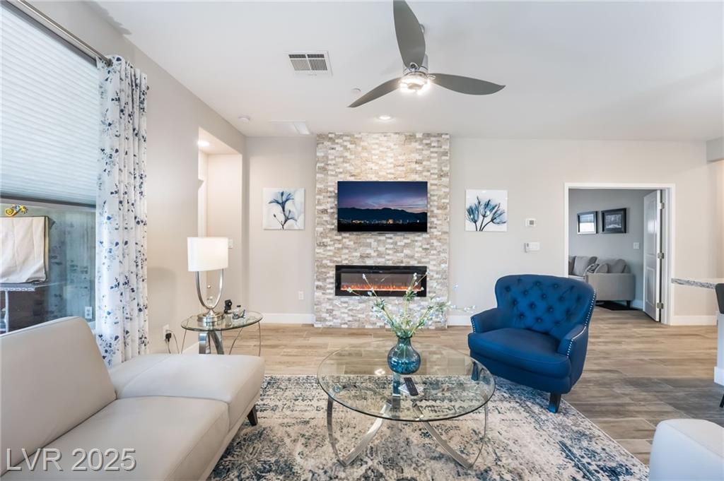 Experience luxury living in the 55+ Trilogy Sunstone community! This 3-bed, 2-bath home (built 2022) sits on an oversized lot with sweeping mountain views. Enjoy a designer primary suite with spa-like bath & custom closet, a living room with electric fireplace & feature wall, and seamless indoor-outdoor living with a covered patio, remote solar shades & custom gas firepit. The extended EV-ready garage features epoxy floors, while energy efficiency shines with solar panels, solar screens & a tankless water heater. Every detail—from the upgraded laundry room to the immaculate finishes—has been thoughtfully designed. Community amenities include pickleball, fitness center, pool, clubs, live music & a full-service restaurant coming soon. Why wait to build when you can have this move-in ready gem today?