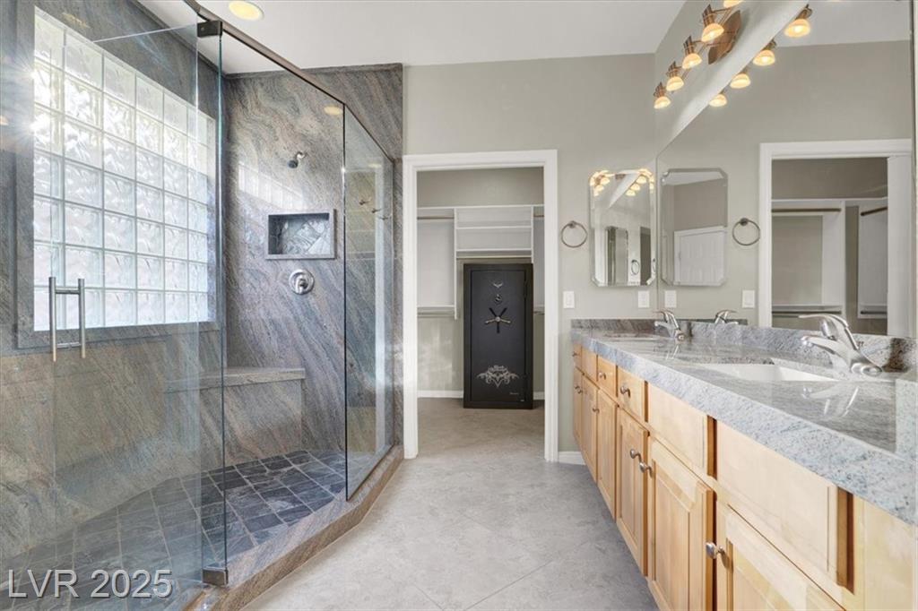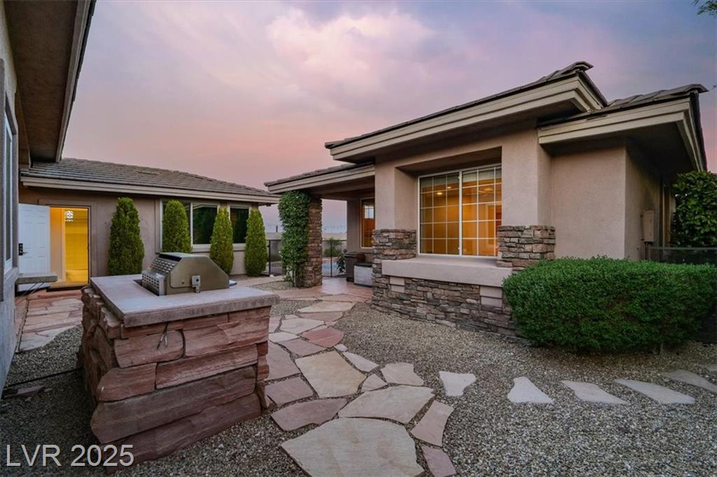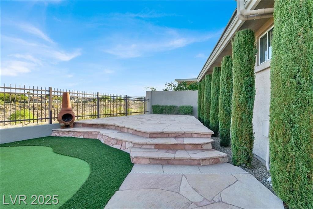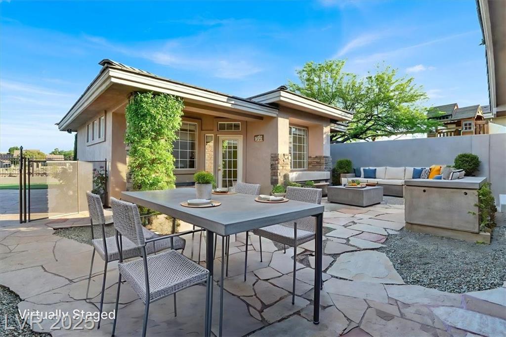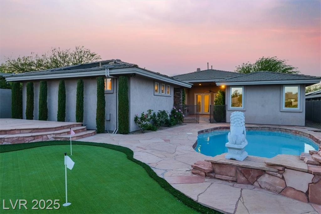 BEAUTIFULLY APPOINTED AND HIGHLY UPGRADED SINGLE-STORY 5-BEDROOM HOME WITH DEN/OFFICE AND DETACHED CASITA INCLUDING A PRIVATE POOL WITH SWEEPING MOUNTAIN VIEWS AND CHILD SFETY FENCE. CENTRALLY LOCATED IN THE HEART OF SUMMERLIN AND EASY ACCESS TO SCHOOLS, SHOPPING AT DOWNTOWN SUMMERLIN. OPEN FLOORPLAN WITH CUSTOM FLOORING AND PAINT SCHEMES THROUGHOUT. NEW WINDOWS IN MAIN HOUSE, REPLACED AC UNITS IN MAIN HOME. OVERSIZED FAMILY ROOM W/ CUSTOM REMODELED FIREPLACE W/CROWN MOULDING ADJACENT TO A CHEF’S DREAM GOURMET KITCHEN FEATURING LEVEL 3 GRANITE COUNTERTOPS, STAINLESS APPLIANCES, RAISED PANEL MAPLE CABINETS, AND PLENTY OF COUNTER SPACE TO ENTERTAIN FAMILY AND FRIENDS. LARGE PRIMARY BEDROOM WITH CUSTOM WALK-N CLOSETS AND SPA-LIKE BATH WITH DOUBLE STEP-IN SHOWER. OFFICE/DEN AREA AND 3 ADDITIONAL BEDROOMS IN MAIN HOUSE. PRIVATE REAR YARD, DID I MENTION VIEWS!! SWEEPING VALLEY VIEWS WITH COVERED PATIO AND DETACHED CASITA W/ FULL BED/BATH 5 HOLE SYNTHETIC PUTTING GREEN. CALL US TODAY!