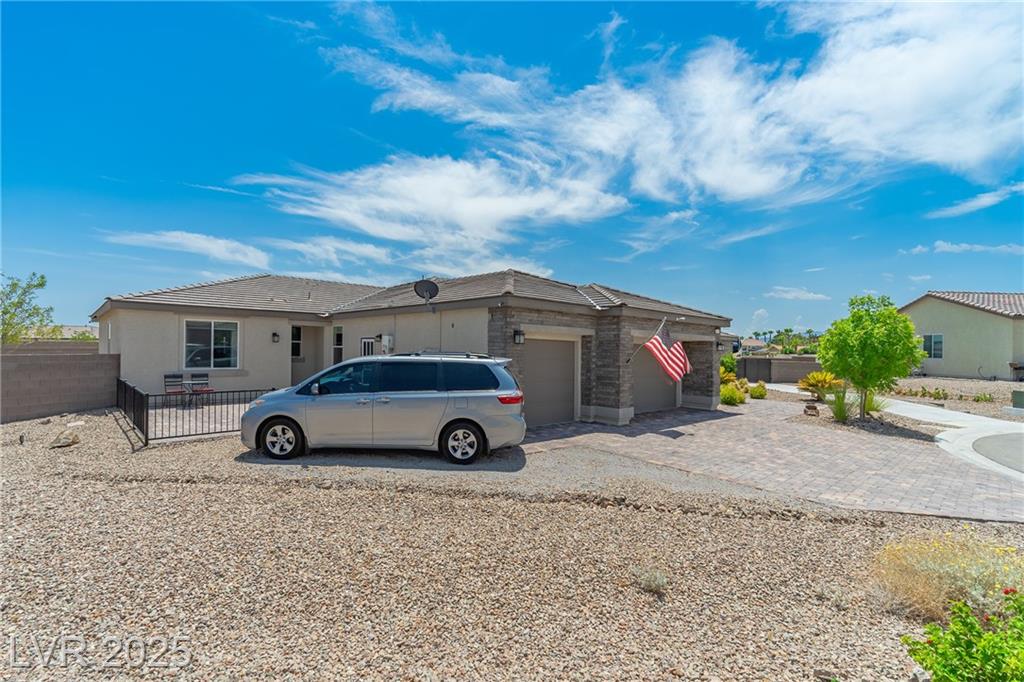 Seller To Pay 26K Towards a 2-1 Buydown. This exquisite 7-year-old, single-story former model home offers 5 bedrooms and 4 full bathrooms on a ½ acre cul-de-sac lot. The property includes a 720 sq ft casita with a private kitchen, laundry, and separate entry, bringing the total living space to 4,155 sq ft. Enjoy a rural feel while being minutes from shopping, dining, and city conveniences. The home features an RV gate and driveway with a 50-amp plug. The layout boasts gray shaker cabinets, custom backsplash, white quartz countertops, stainless steel appliances, and a 700 sq ft covered patio. The desert landscaping includes Malibu lights and no rear neighbors. Highlights include ceiling fans, a master suite with backyard access, a walk-in shower, and a large walk-in closet. Energy-efficient with $35,000 in solar panels, making last month's energy bill $43 for July. Additional features include a 3-car garage with 220 service, two water heaters, and a stacked stone exterior. No HOA.