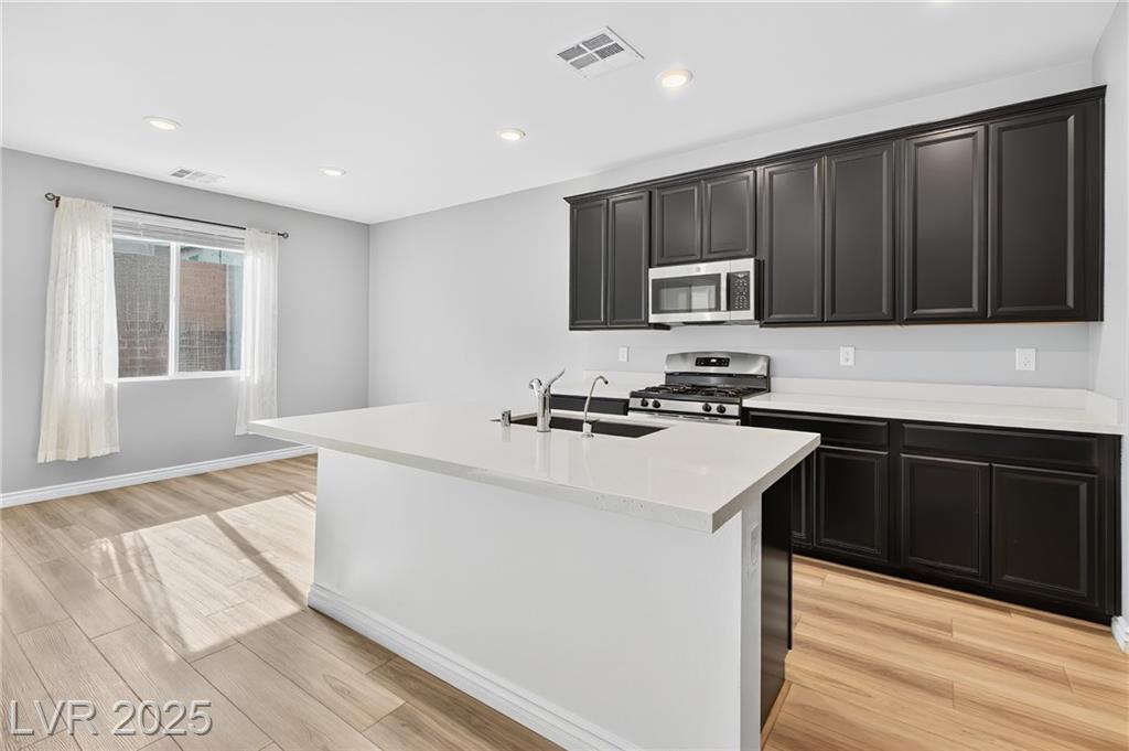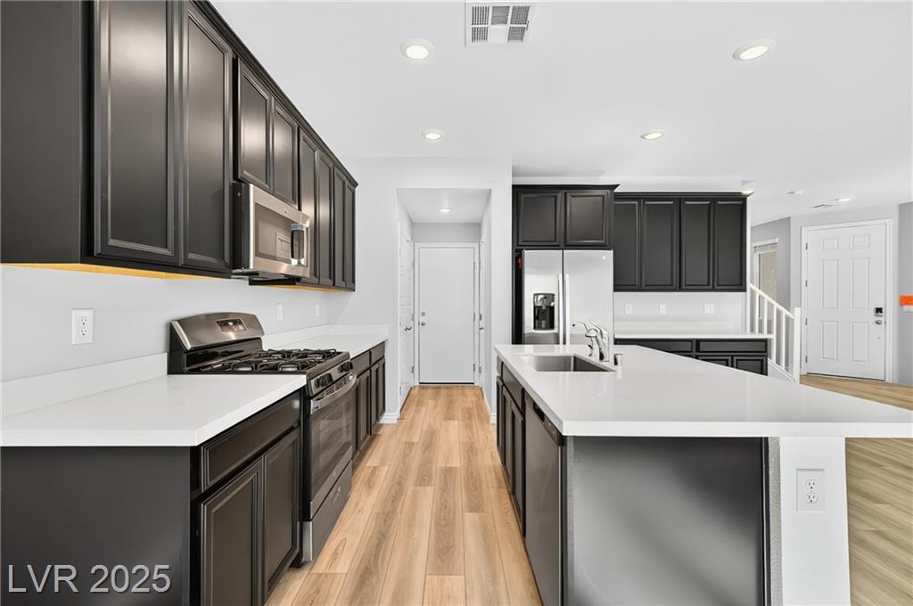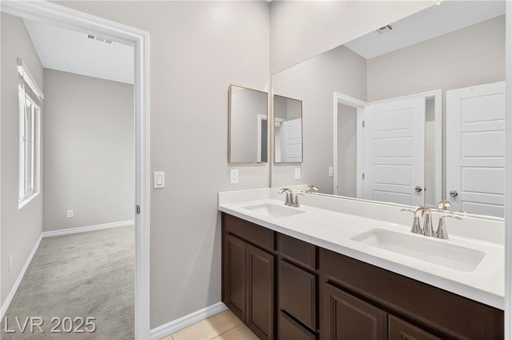 2023 HOME WITH SOLAR PANELS INCLUDED IN RENT!!! ONE BEDROOM IS DOWNSTAIRS! This property features 4 bedrooms, 3 full bathrooms, and a 2-car garage. The primary bedroom upstairs with walk-in closet, ensuite bathroom with double sinks, soaking tub and a separate shower. The two other upstairs bedrooms are spacious and share a jack-and-jill bathroom. The fourth bedroom is located downstairs with access to a full bath. Kitchen with all stainless-steel appliances, quartz countertops, lots of cabinet space, and a huge kitchen island making it an ideal place for entertaining. This home also features low-maintenance desert landscaping. Additionally, this property has SOLAR PANELS INCLUDED NO EXTRA CHARGE TO THE TENANT! Come and see it now!