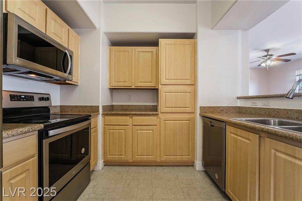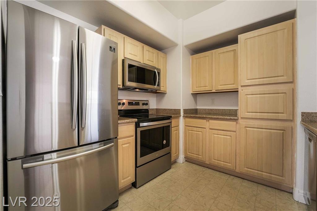 This charming 3 bedroom condo features an open floor plan in a gated community, perfect for modern living. The kitchen is well-appointed with granite countertops, appliances, and ample cabinet space. The bedrooms are generously sized with plenty of closet space, while the master bathroom offers dual sinks and a garden tub. Enjoy the outdoors on your private patio, ideal for relaxation. Conveniently located, this condo offers easy access to shopping, dining, entertainment, and major highways. Experience the best of Las Vegas living while enjoying the tranquility of your own oasis.