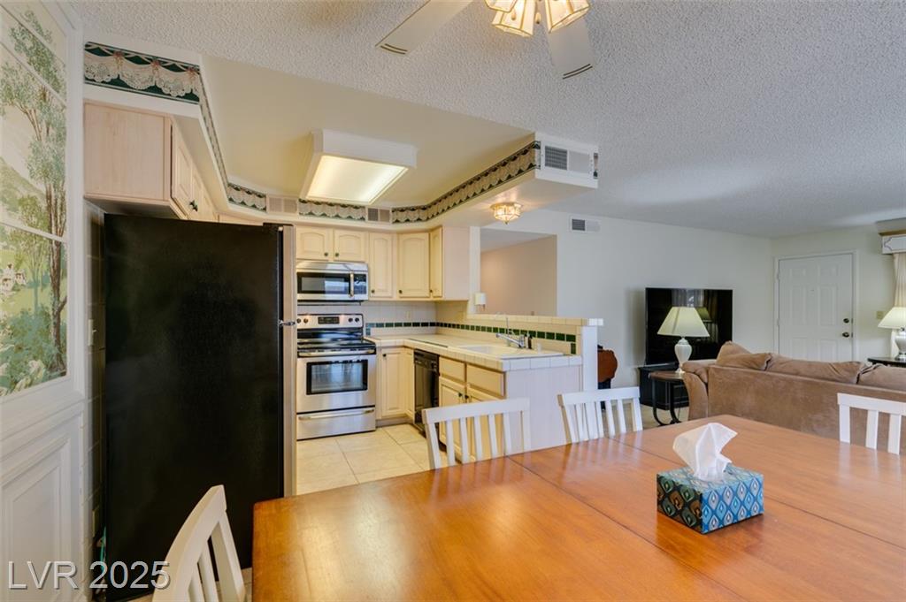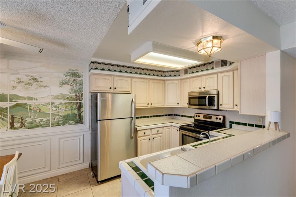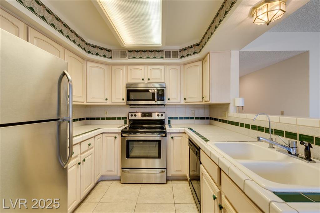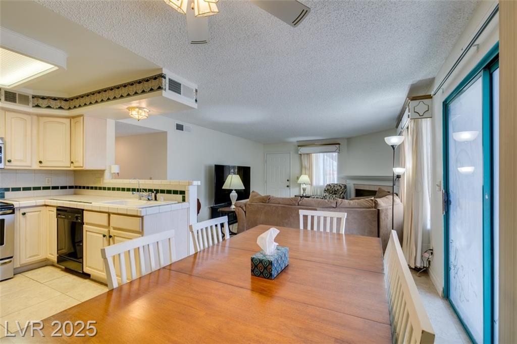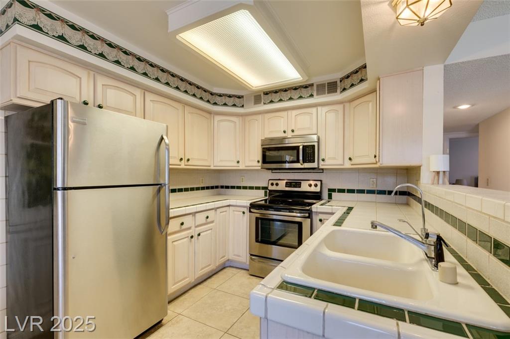 MOVE RIGHT IN on the FIRST FLOOR! Standout features of this desert cottage include a spacious primary bedroom with dual closets, upgraded tile flooring throughout, included stainless steel appliances, laundry area with washer and dryer, custom millwork in the dining area, assigned covered parking, custom security/screen door, all on the FIRST FLOOR. Enjoy mornings or evenings outside on your private patio. Want to swim? Take a quick trip across the parking lot to the nearest pool! Conveniently located within walking distance to shopping, dining, banking, and notable schools. Come visit and see how you’ll feel right at home in Unit 1114 at Verde Viejo in Henderson, Nevada.