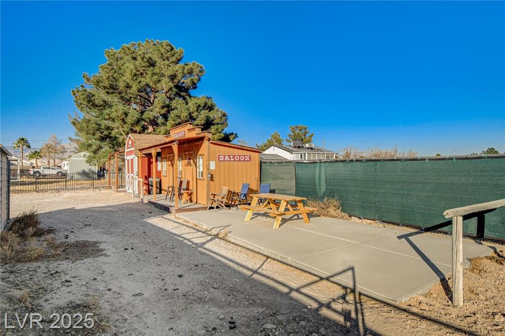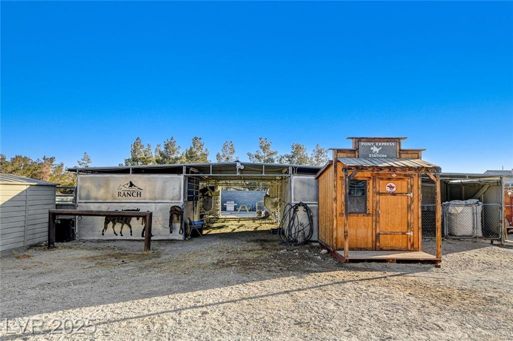 Exterior Description | Bunk House,Circular Driveway,Covered Patio,Private Yard,RV Hookup,Secured Entry,Tack Room |