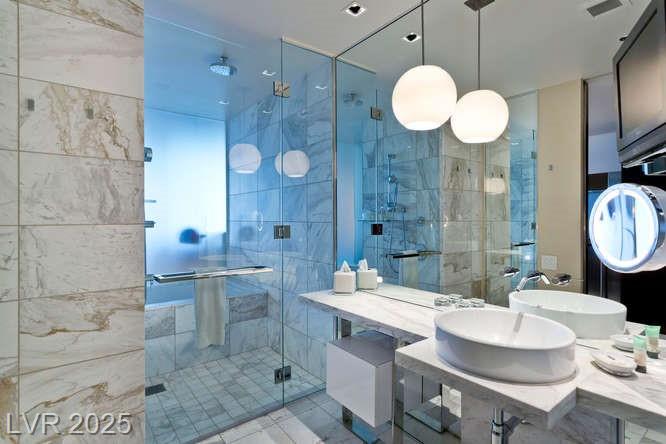 Palms Place – Luxury Studio with Balcony & Strip Views! Contemporary fully furnished condo-hotel residence with stainless steel appliances, king bed, sleeper sofa, built-in desk, flat-screen TVs, and a spa-inspired bathroom with soaking tub & rainfall shower. Step out to your private balcony to take in sweeping views of the Strip, city lights & mountains. Building amenities include resort-style pool, spa, fitness center, on-site dining & 24-hour concierge. Just minutes from the Strip with short-term rental options available—ideal for both personal use or investment.