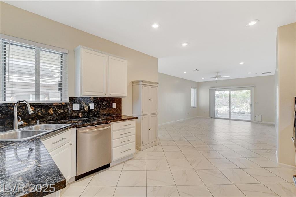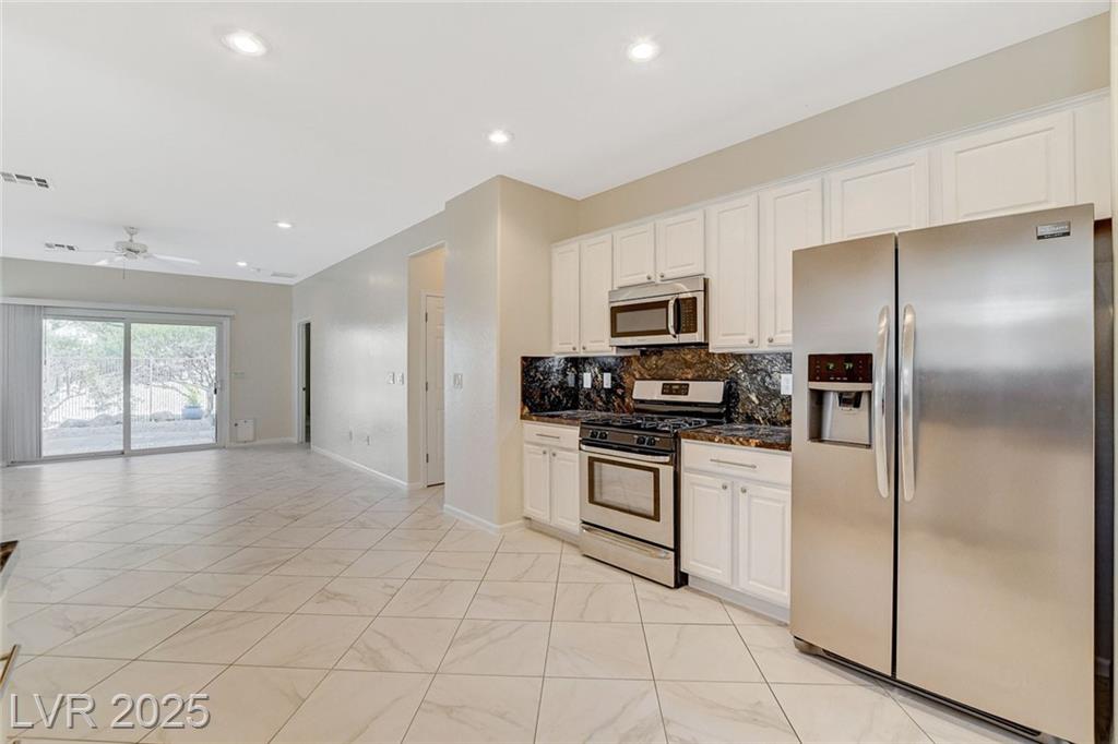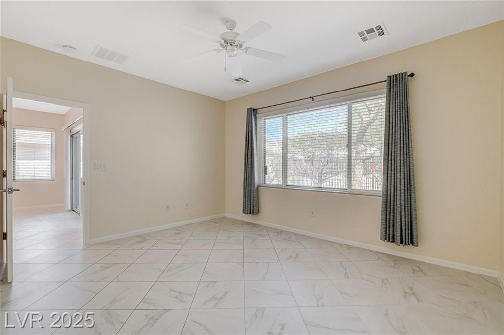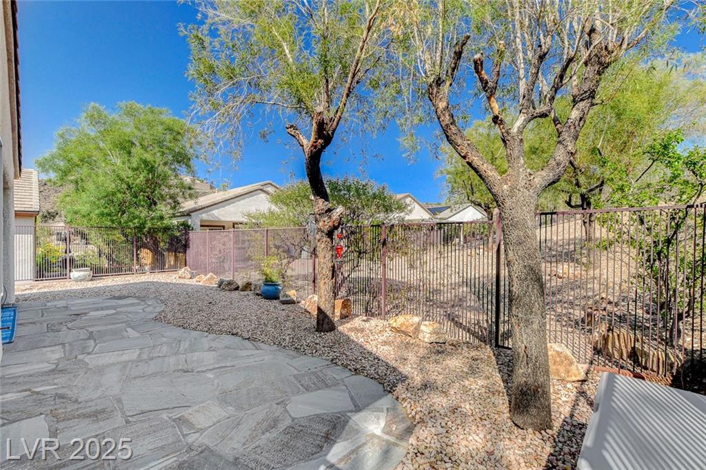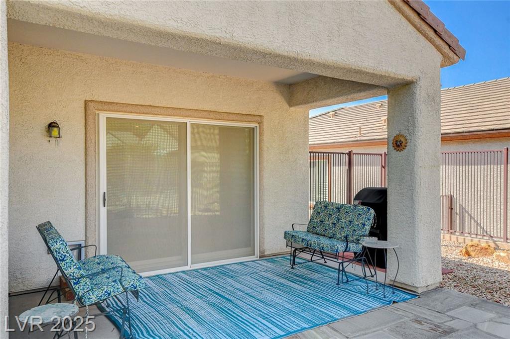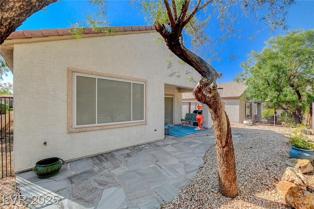 Welcome to the exquisite Lewis Model, featuring a stunning stacked stone entryway that immediately captures attention. This home boasts a sleek, open floor plan with two bedrooms and two bathrooms, all adorned with designer tile flooring—no carpet in sight. Step into the kitchen, where modern stainless steel appliances and elegant granite countertops await. Step outside to enjoy a fully fenced backyard, complete with a covered patio and a low-maintenance landscape. The spacious garage offers ample storage, and all appliances are included for your convenience. Enhance your peace of mind with Boss Security Screens installed throughout, a premium upgrade valued at over $10,000. This home is not only beautiful and immaculate but also move-in ready. For added security, a safe is conveniently located in the primary closet. Nestled in the charming Solera at Anthem, a premier 55+ community by Del Webb, this home offers proximity to shopping and dining options. This is a must see!!!