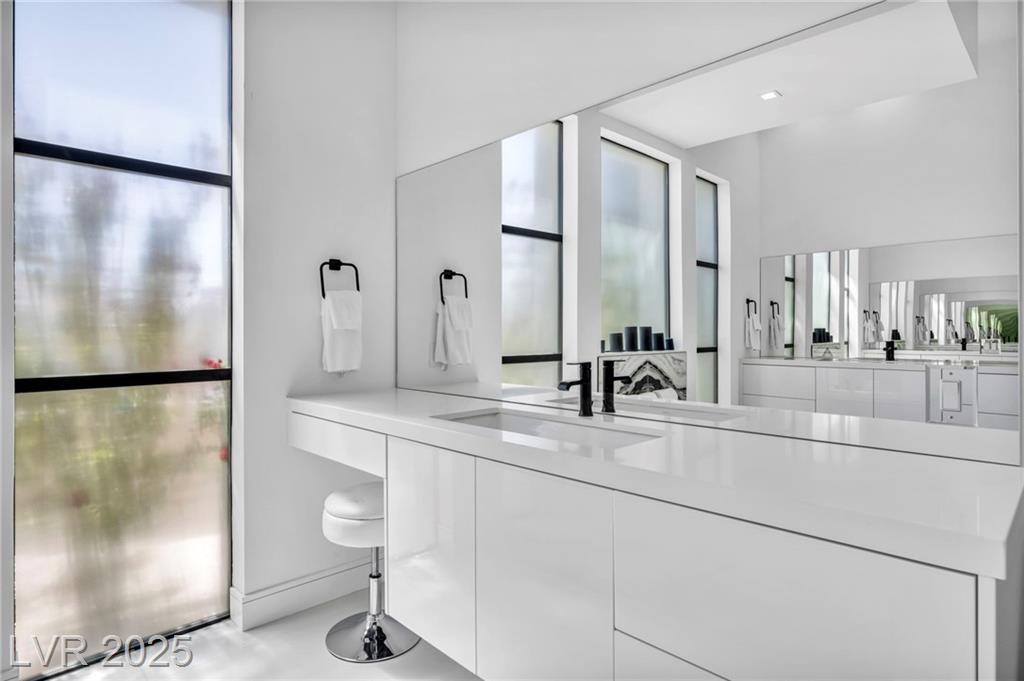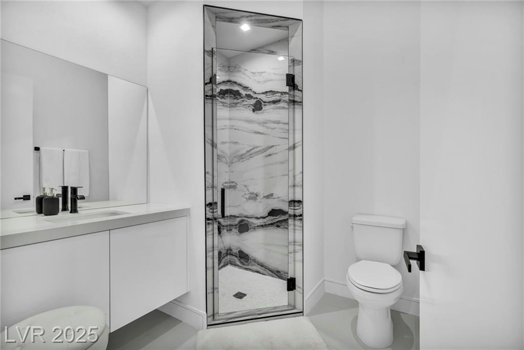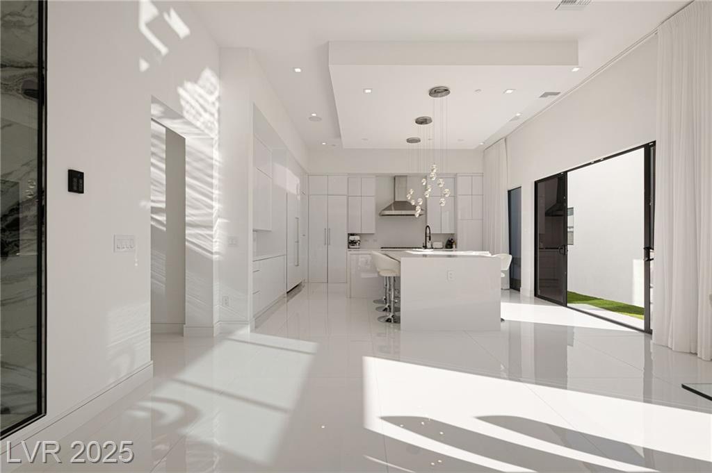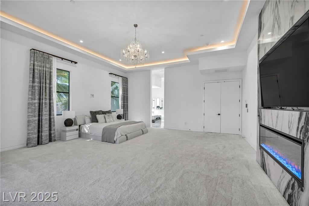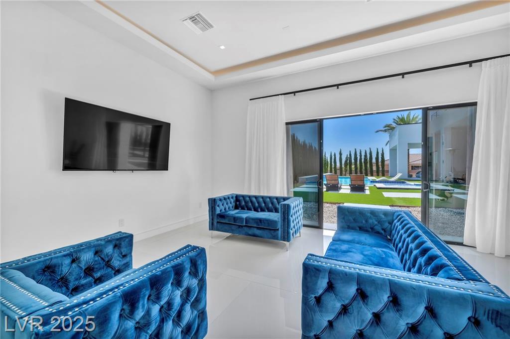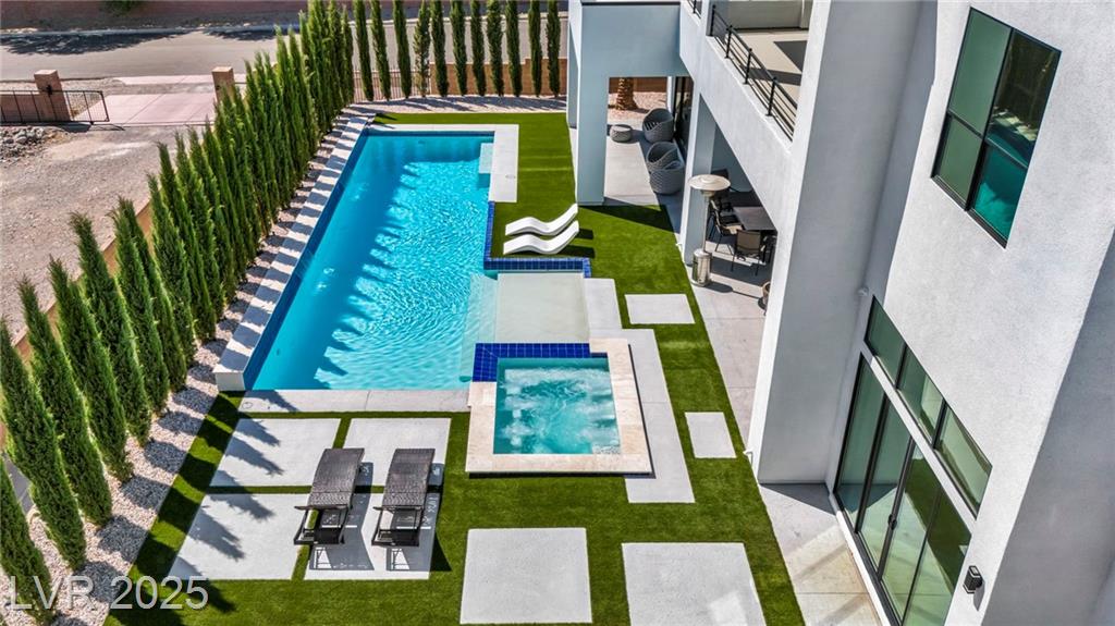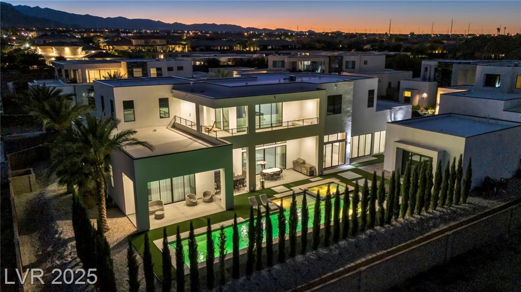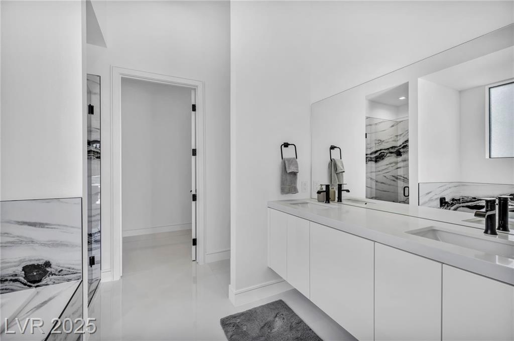 Discover a residence that redefines modern sophistication in Northwest Las Vegas. Designed with precision and intention, this architectural masterpiece blends clean contemporary lines with warm natural light, setting a new standard for refined desert living. The open-concept design flows effortlessly into multiple entertaining spaces, enhanced by sleek finishes and advanced smart-home technology. Gourmet kitchen has an expansive waterfall island, outfitted with professional-grade appliances and a hidden walk-in pantry. The primary suite features a private haven with a spa-inspired bath and 2 custom walk-in closets. Each additional bedroom is appointed with its own en-suite bath. Outdoors, the residence transforms into a resort setting. Meticulously landscaped grounds surround a heated pool and spa, complemented by a sauna and multiple lounging areas. From sunrise to sunset, every moment here is framed in luxury. This home—it's a statement of prestige, privacy, and modern elegance.