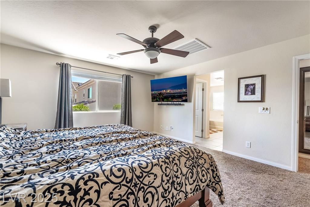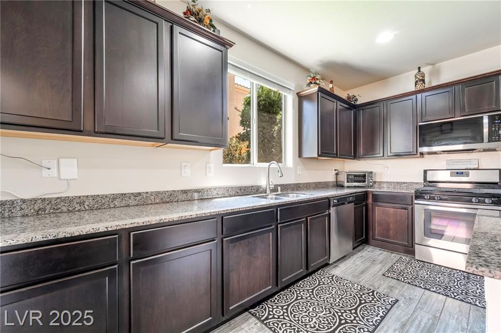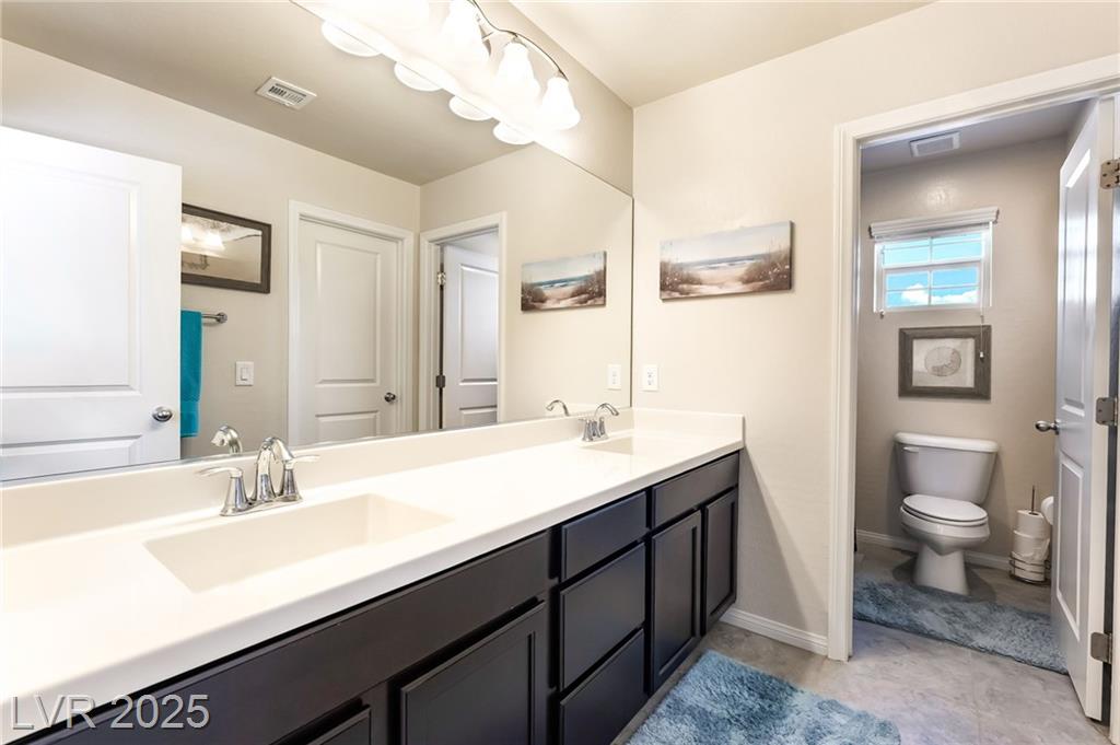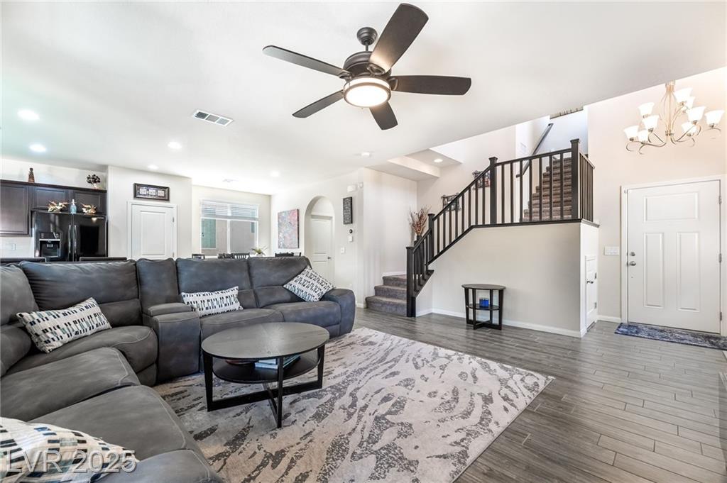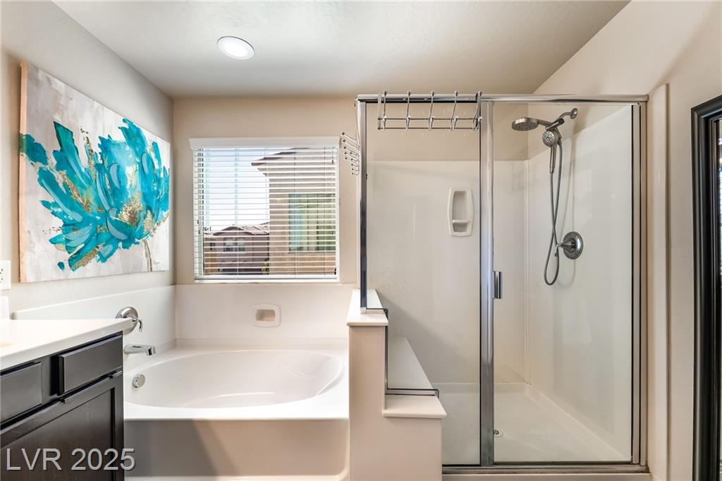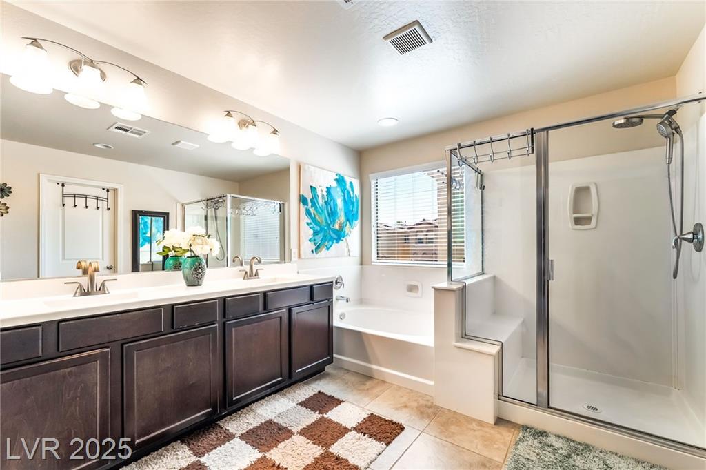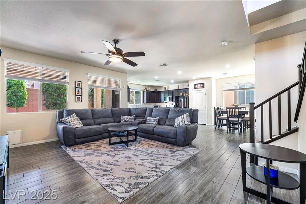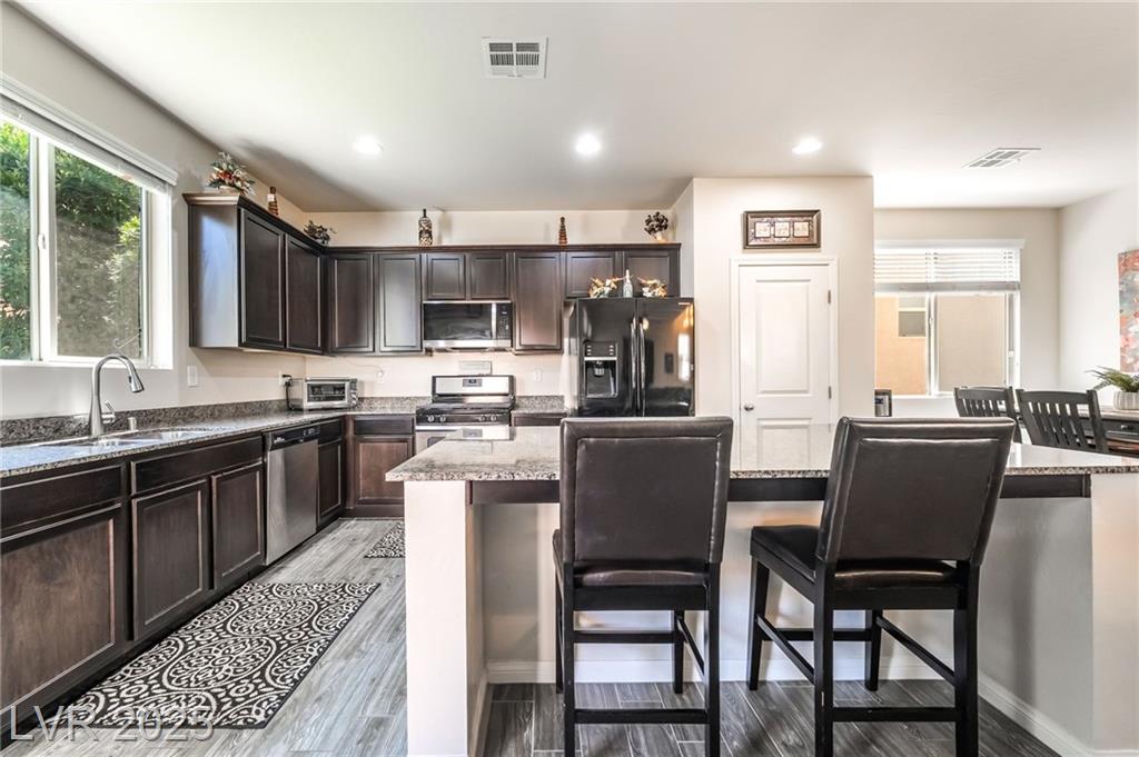 BUYERS-REDUCE YOUR INTEREST RATE BY 2 PERCENT ON THIS GORGEOUS HOME*SELLER IS OFFERING 2/1 RATE BUY DOWN! Highly sought-after guard-gated Rhodes Ranch Community, move-in ready contemporary home offers access to incredible amenities including a championship golf course, fitness center, racquetball, pickleball & basketball courts, resort-style pool, lap pool & spa, water park, playgrounds, walking trails and more! Open floor plan with tile flooring throughout the first level. Kitchen featuring a large island with breakfast bar, pantry, granite countertops, upgraded cabinets, recessed lighting & ceiling fans. Upstairs, the private primary suite with a large walk-in closet, dual sinks, soaking tub, and separate shower. Two additional bedrooms share a Jack & Jill bath & walk-in closets. Laundry room upstairs is plumbed for a sink. Garage w/Opoxy floors, overhead storage racks & Water Softener. Backyard w/mature trees, covered patio, gas BBQ stub & built-in gas fire pit. Schedule Tour Today!