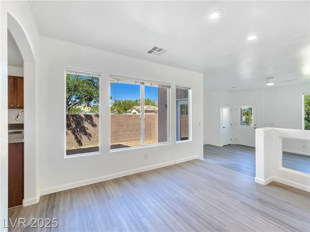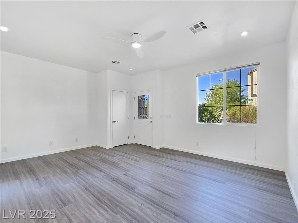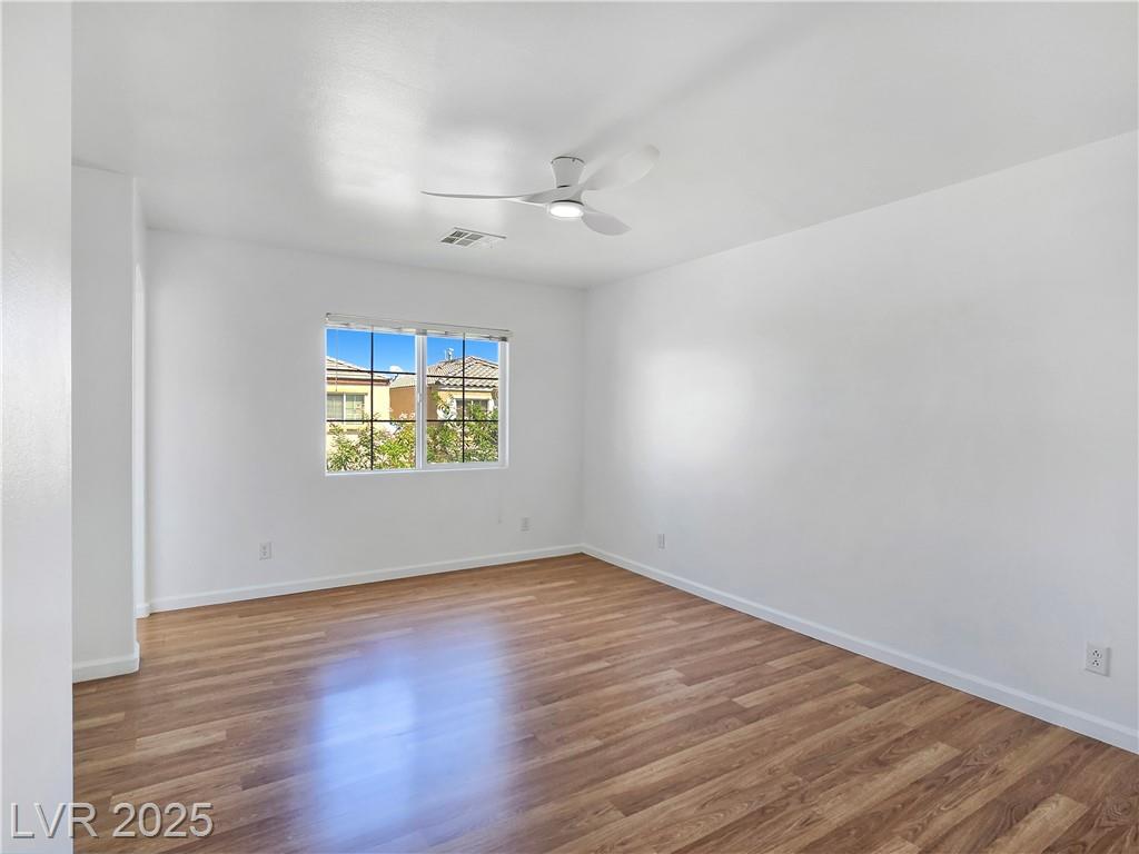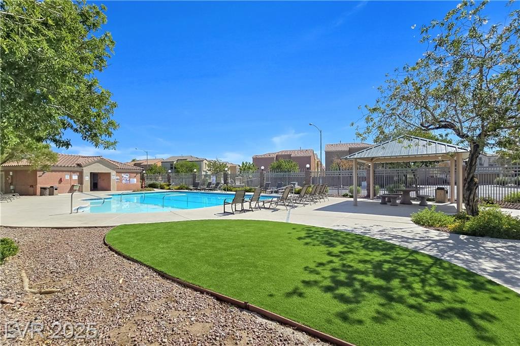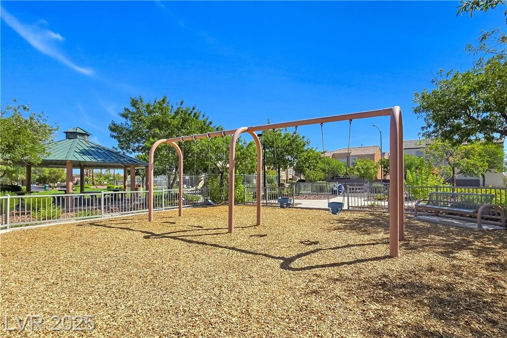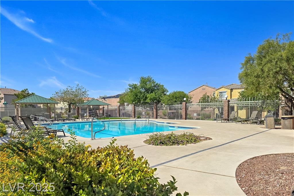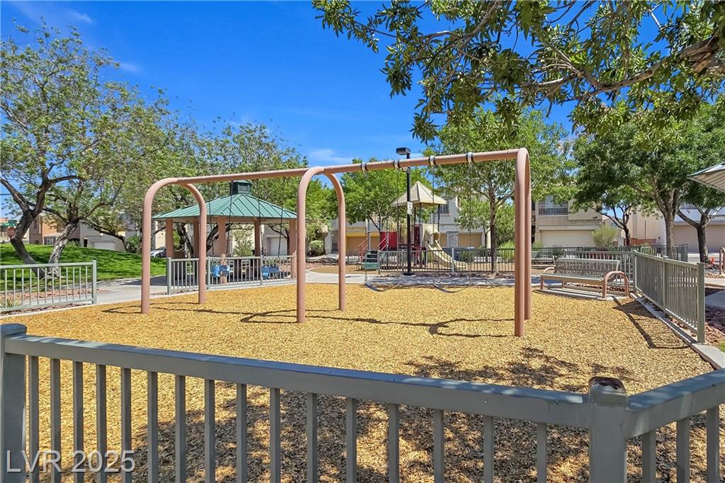 Charming property located in SW Las Vegas. Completely remodeled! The home sits on a  large corner lot directly across the pool and playground! Open and airy floor plan with lots of natural lighting. Chef kitchen with granite counters, custom cabinets and new stainless appliances. The primary retreat has a walk out balcony and primary bathroom has double sinks, separate tub and shower. The location is ideal, with quick and easy access to shopping, dining, entertainment, freeways, the Strip, and airport.