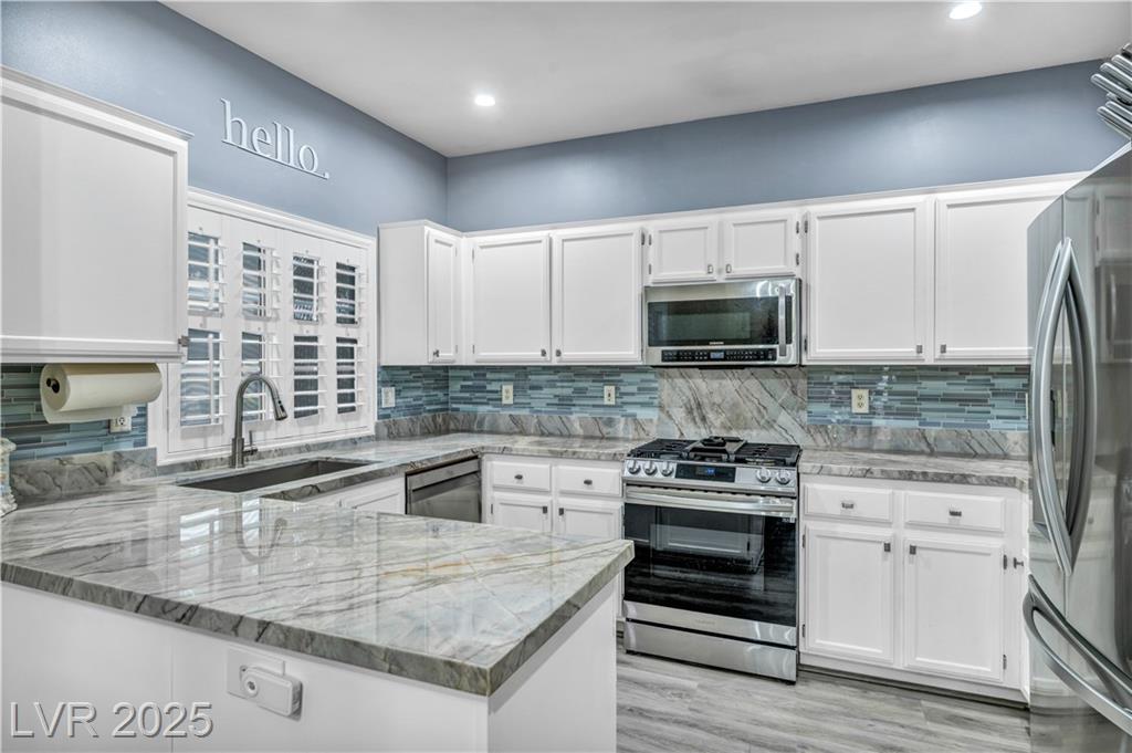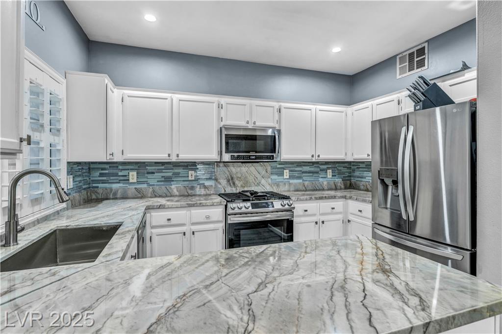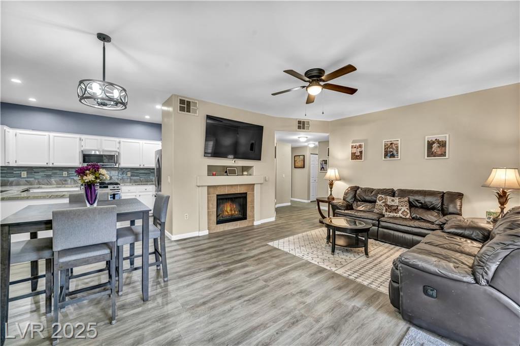 WELCOME HOME! Located on the 1ST FLOOR/CORNER LOT, this NEWLY UPDATED unit is BRIGHT & AIRY w/2 BEDROOM/2 FULL BATH + A DEN (can be used as 3rd bedroom/office) w/AN OPEN FLOOR PLAN. ***FEATURES*** LVP FLOORING & PLANTATION SHUTTERS THROUGHOUT! BEAUTIFULLY REMODELED KITCHEN WITH QUARTZ COUNTER, TILED BACKSPLASH AND RECESSED LIGHTING! PRIMARY BATHROOM AND 2ND BATHROOM ALSO UPDATED W/MARBLE COUNTERS! SOLAR SCREENS ON ALL WINDOWS! Located in the highly sought after Northwest location AND conveniently across from LONE MOUNTAIN - Great for walking/hiking trails w/BREATHTAKING MOUNTAIN VIEWS! The PRIMARY BEDROOM features a walk-in closet with NEW CEILING FAN. COVERED PATIO overlooks the beautiful mountain view. This gated community offers 2 pools/spas, and a workout room. Just a short drive to Summerlin, Downtown Summerlin and Centennial Hills for shopping, dining, entertainment and MORE! ALL NEW APPLIANCES ARE INCLUDED!!! COME SEE WHAT THIS HOME HAS TO OFFER!!! ***MOVE-IN READY***