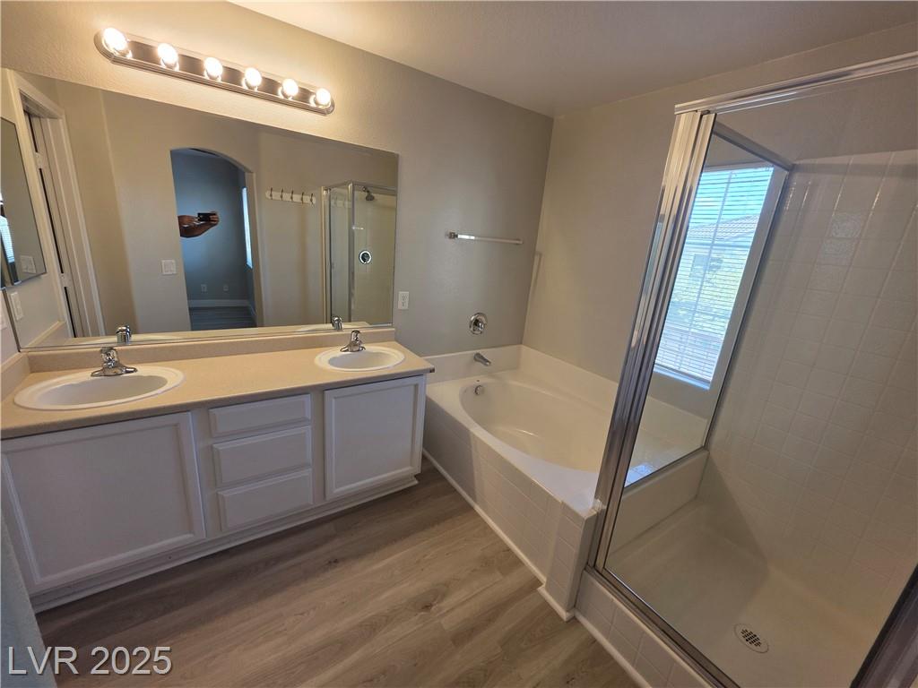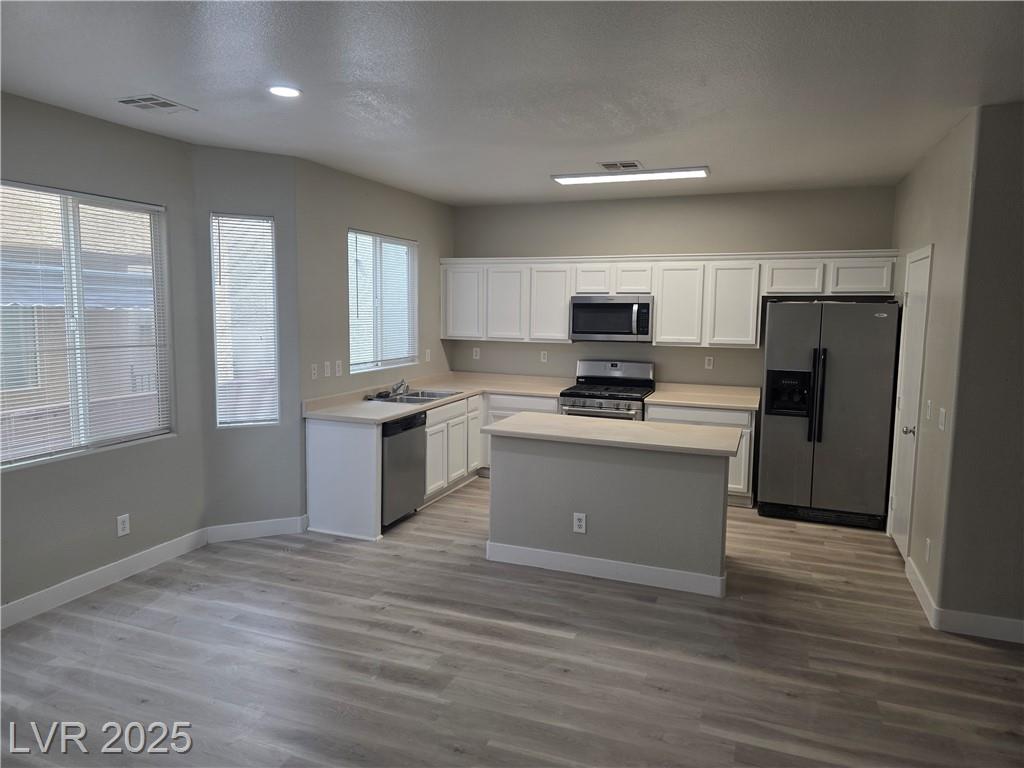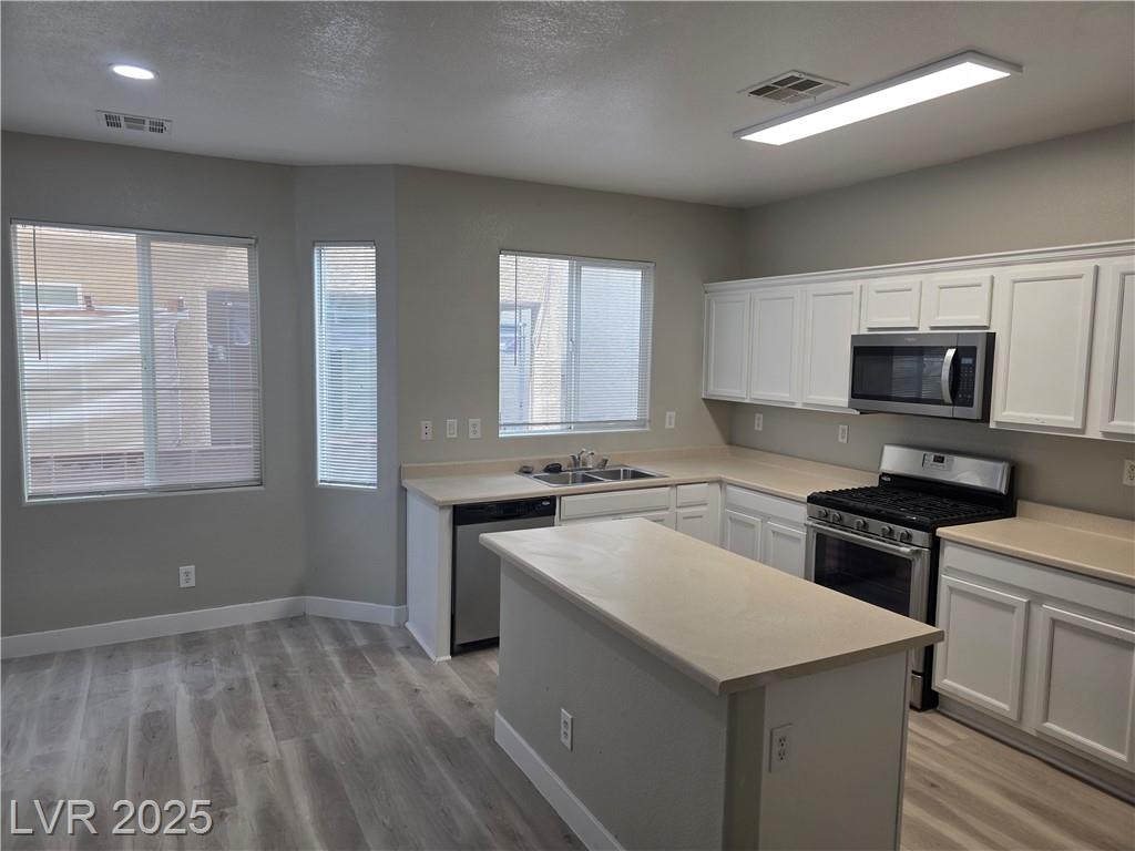 Great location in the booming Southwest Las Vegas, this 3 bedroom plus loft home is newly painted and offers too much. A lovely kitchen that is open to the living areas, island and offers all stainless steel appliances. Beautiful wood-like floors throughout...no carpet. This home is move-in ready with 3 bedrooms and a loft upstairs !! Community offers so much to include pool, pet park, playground, BBQ, etc...wow !! Convenient location offers lots of shopping, restaurants and easy access to the 21r5 freeway. Can you ask for anything else....don't miss this beauty !!