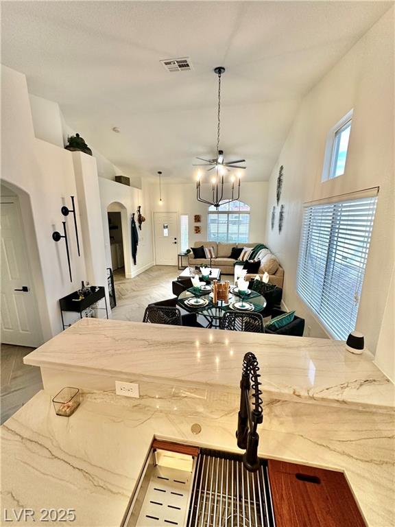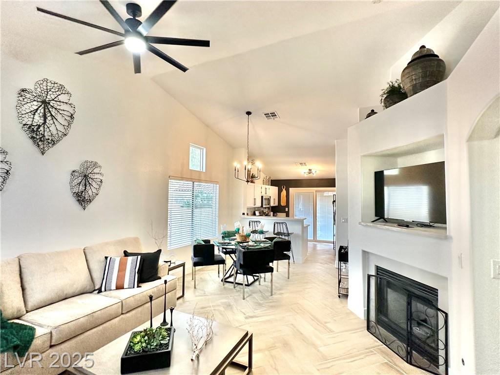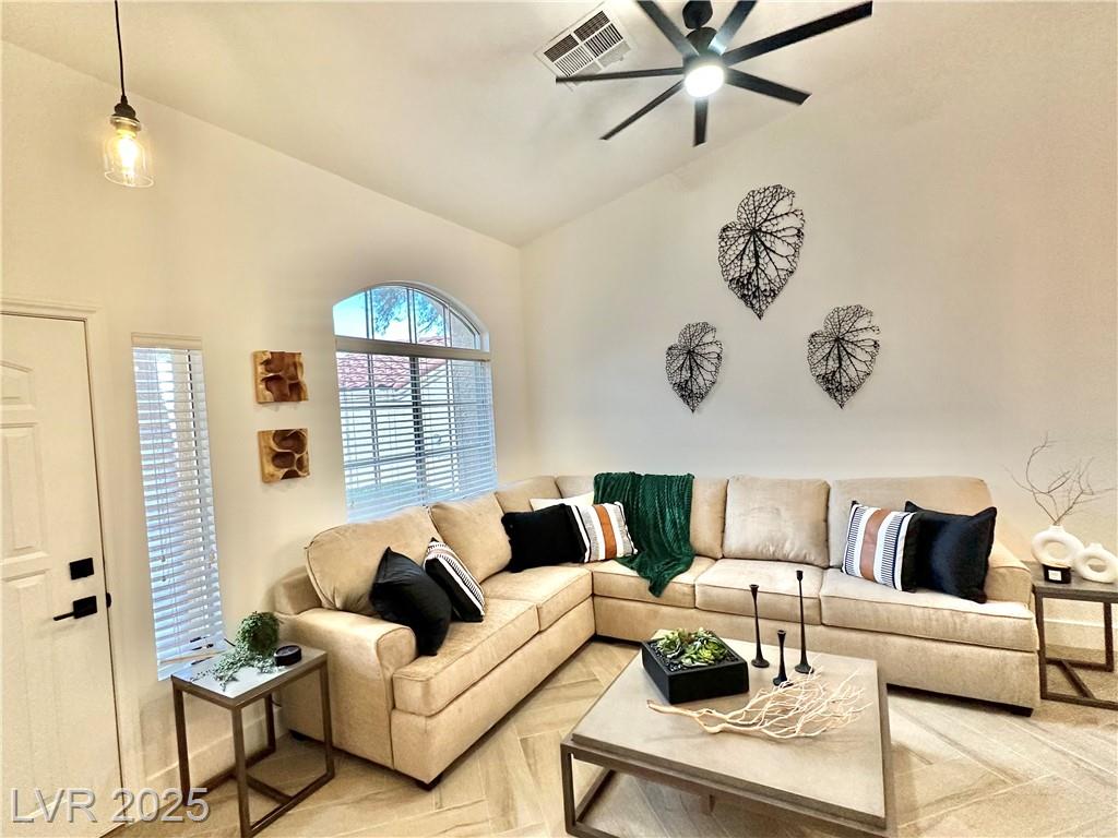 **SEE THE PHOTOS!!** SUMMERLIN SINGLE STORY ON A CUL DE SAC IS FULLY FURNISHED! NO CARPET HERE! GORGEOUS HERRINGBONE FLOORS THROUGHOUT! JUST REMODELED. THIS HOME HAS QUARTZITE COUNTERS. FULLY FURNISHED WITH ATTACHED 2 CAR GARAGE. RENTED FURNISHED ONLY. LARGE BACK YARD WITH LARGE COVERED PATIO! VAULTED CEILINGS, STAINLESS APPLIANCES, 5 BURNER GAS STOVE, GORGEOUS HERRINGBONE TILE FLOORING THROUGHOUT! NO CARPET HERE! PRIMARY SUITE HAS WALK IN SHOWER, WALK IN CLOSET AND SOARING VAULTED CEILINGS WITH CEILING FAN/LIGHT. THIRD BEDROOM FURNISHED AS AN OFFICE. 3 BEDROOMS TOTAL HERE. FURNISHED DOWN TO THE SHEETS, TOWELS, DISHES, ETC. JUST BRING YOUR TOOTHBRUSH! THE LEASE IS A 3 MONTH MINIMUM, THEN GOES MONTH TO MONTH. NEED A LONGER LEASE? LET US KNOW. GREAT CUL DE SAC PIE SHAPED LOT AND NO NOISY ROADS BEHIND! HUGE PATIO COVER TOO. SO RELAXING! MINIMUM CREDIT SCORES REQUIRED. ALL DIMENSIONS ESTIMATED. PLEASE CALL FOR PET POLICY! SORRY, NO AIRBNB, VRBO, ETC.