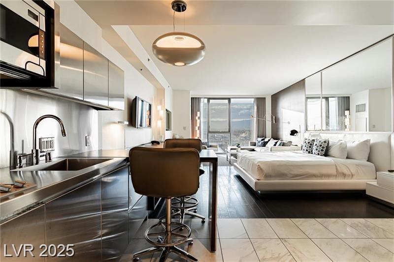 Welcome to Palms Place UNIT 1809 where luxury living meets elegance centrally located near the Las Vegas Strip. This fully furnished stunning studio condo offers a blend of modern elegance and comfort, ideal for those seeking a resort style living lifestyle. Spacious open-concept living area with space for relaxation and entertainment. This unit includes a modern kitchenette that is fully equipped with stainless steel appliances, & countertops. Amenities includes access to both Casino pool and the rooftop pool, GYM fitness center, spa, and 24-hour concierge service. Owners may choose to live in unit as a primary residence or rent unit out through the hotel's rental pool program. Unit is also zoned for STR. Own a piece of Las Vegas Luxury today.