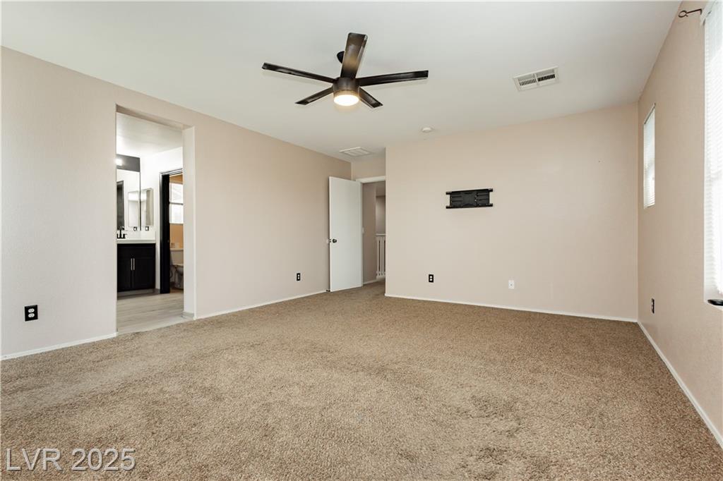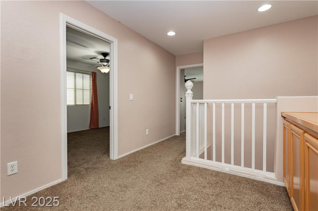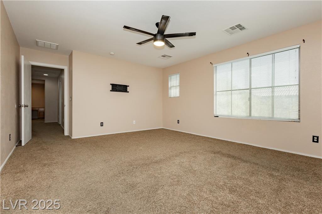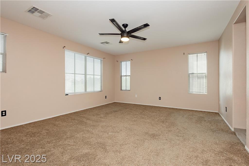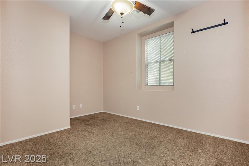 PRICE REDUCED!!! Beautiful 2 story home in a gated community with all the perks — community pool, BBQ, playground, and peace of mind. This energy-saving home comes with solar panels to help lower monthly bills. Inside, the bright open layout features 3 bedrooms, 2.5 baths, a spacious 2-car garage, and a downstairs den for extra flexibility. The kitchen is light and open with stainless steel appliances, while the living area is ideal for gathering. Upstairs, the primary suite offers a walk-in closet, dual sinks, and a separate tub and shower for a true retreat. Low-maintenance desert landscaping in the front and turf in the backyard make the upkeep simple so you can enjoy your time. Located minutes from Nellis AFB, VA hospital, schools, shopping, dining, and freeway access — this home checks all the boxes. The other community park has a basketball court, and a pet park. Don't miss out, schedule your private showing today.