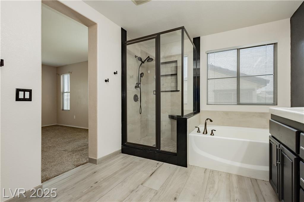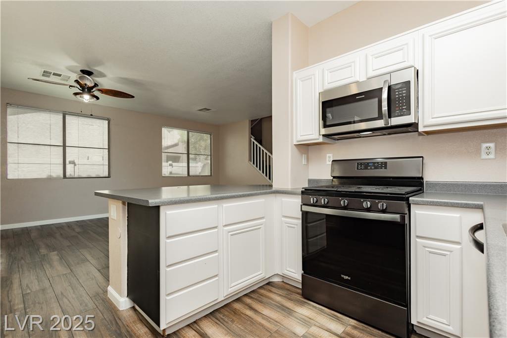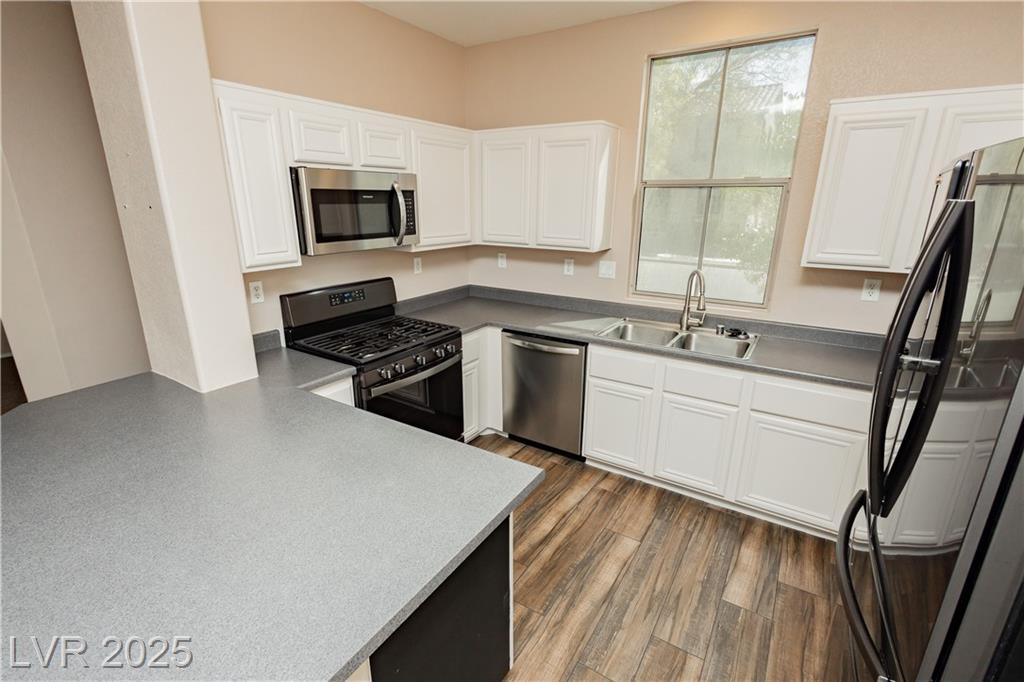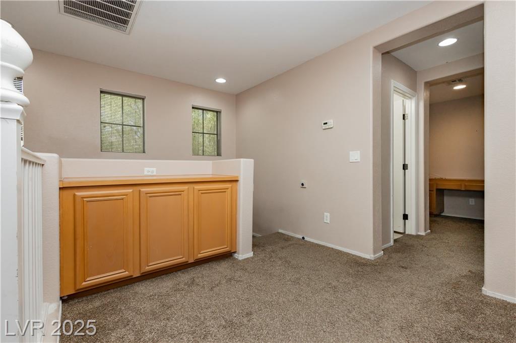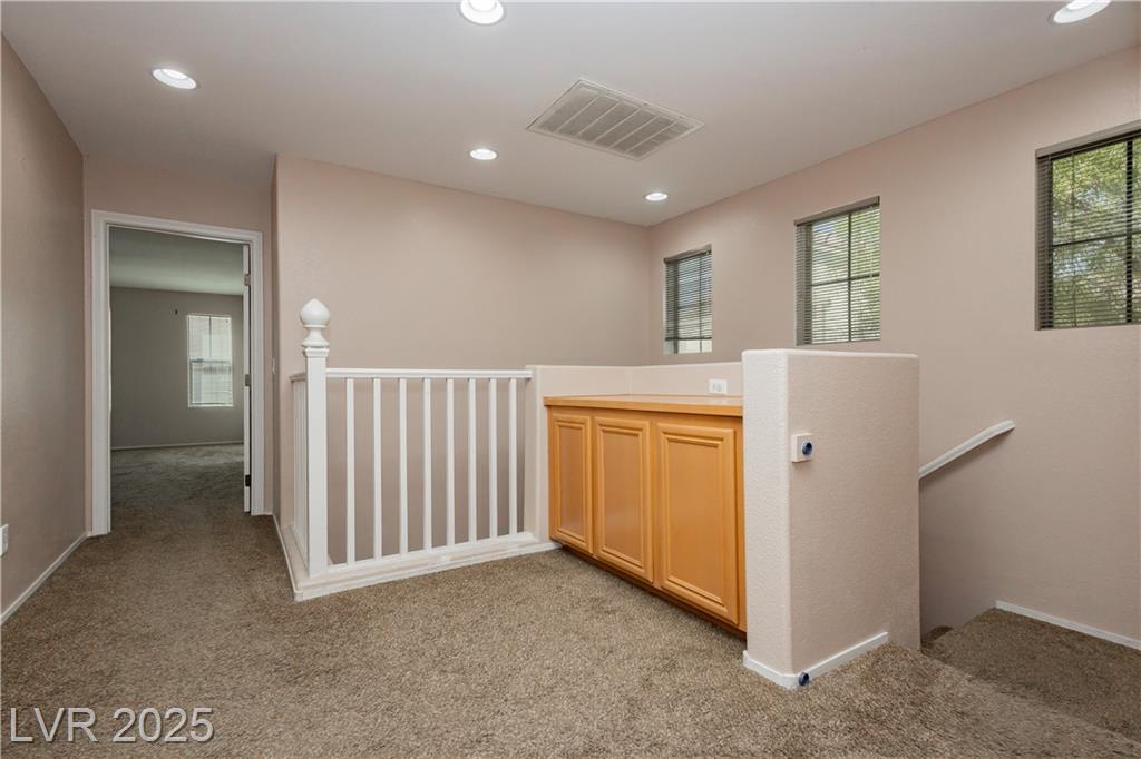 PRICE REDUCED!!! Beautiful 2 story home in a gated community with all the perks — community pool, BBQ, playground, and peace of mind. This energy-saving home comes with solar panels to help lower monthly bills. Inside, the bright open layout features 3 bedrooms, 2.5 baths, a spacious 2-car garage, and a downstairs den for extra flexibility. The kitchen is light and open with stainless steel appliances, while the living area is ideal for gathering. Upstairs, the primary suite offers a walk-in closet, dual sinks, and a separate tub and shower for a true retreat. Low-maintenance desert landscaping in the front and turf in the backyard make the upkeep simple so you can enjoy your time. Located minutes from Nellis AFB, VA hospital, schools, shopping, dining, and freeway access — this home checks all the boxes. The other community park has a basketball court, and a pet park. Don't miss out, schedule your private showing today.