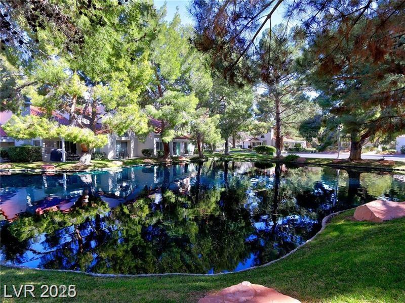 Beautiful single-story town home in wildlife habitat in the gorgeous guard-gated community of Spanish Trail. Home upgraded throughout. Lake/brook views from every room. Ceramic wood-like flooring throughout, granite in kitchen and bathrooms. HOA covers landscaping, guard-gated security, irrigation, all exterior paint and periodic replacement and roof repairs. Water-filtering system, patio pergola, New AC installed about 1 year ago.