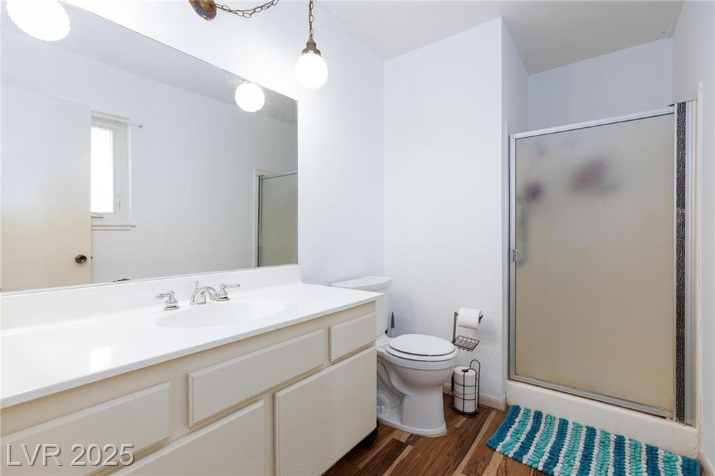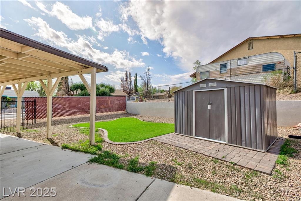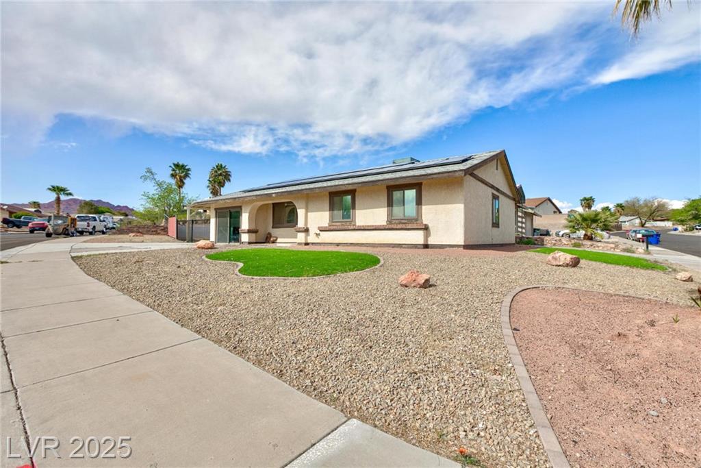 Great Boulder City single story home with covered RV Parking, large yard, and driveway space for all of your toys! NO HOA! Two spacious living room areas with newer wood-like laminate floors! New Water Heater and New AC was installed 7 years ago! Big primary bedroom with private bathroom! Two other good-sized bedrooms with a full bathroom! Make this home yours today!