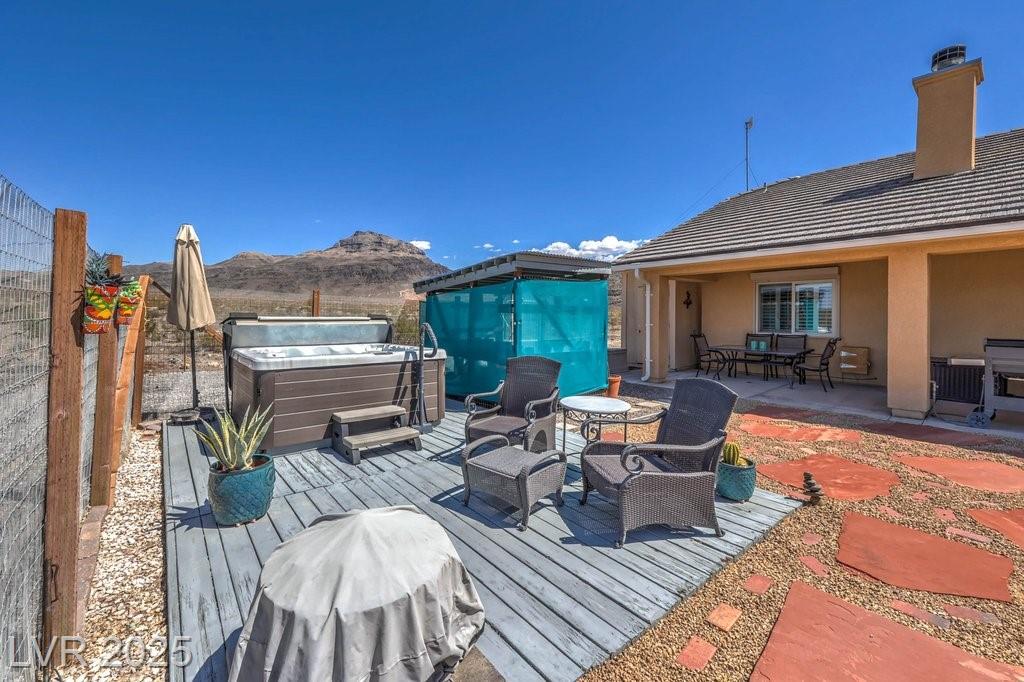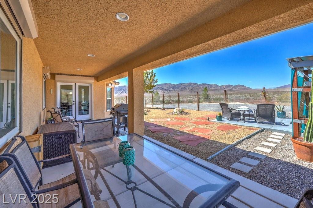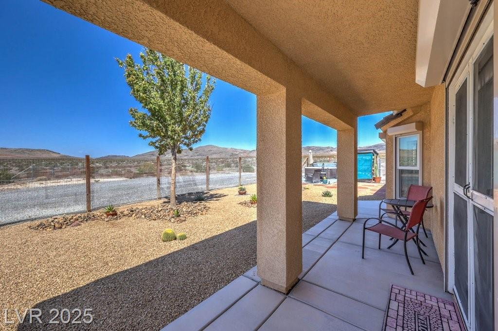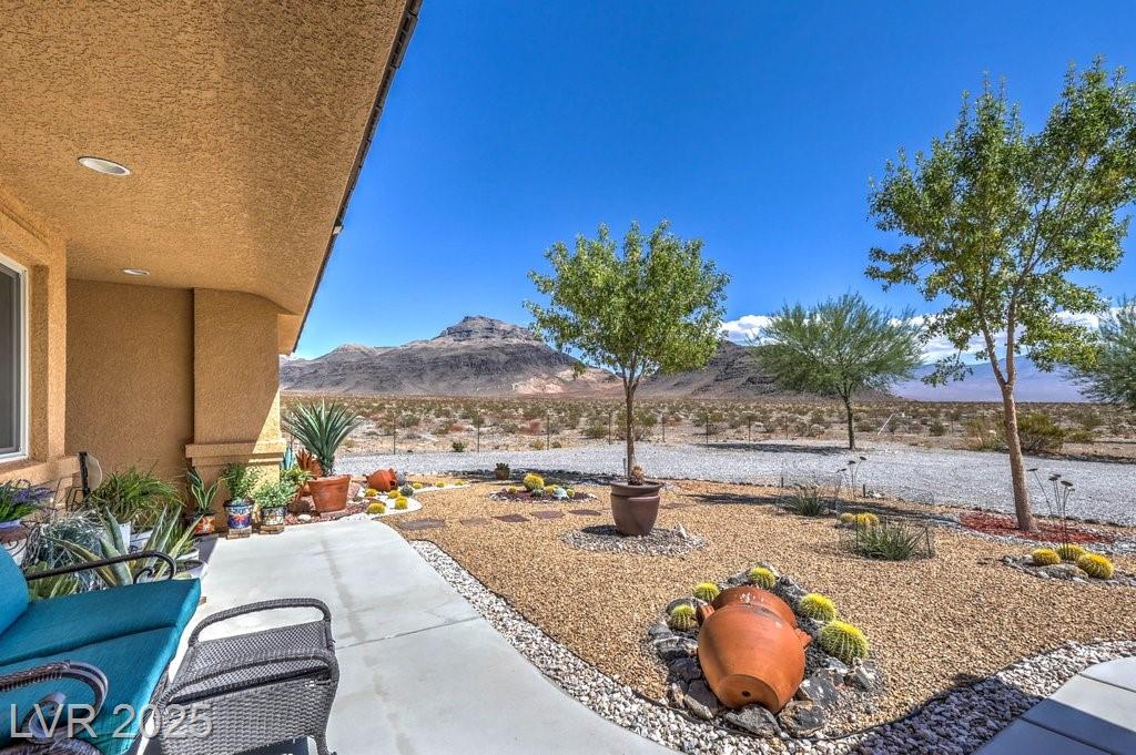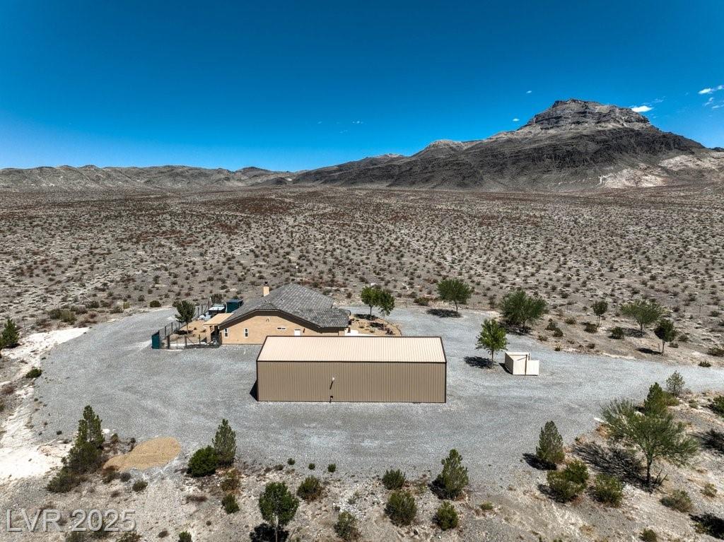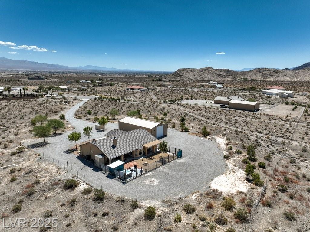 Welcome to this stunning 3 bedroom, 2 bathroom home on just under 5 acres in Pahrump, zoned for horses and surrounded by beautiful mountain views and BLM land. With 1,905 sq. ft. of living space, this property offers a bright open layout featuring granite countertops, stainless steel appliances, and a covered patio. Relax and unwind in the jacuzzi while taking in the desert sunsets. The home also includes Rolladen shutters on all rear windows for added comfort and security. The large drive-through workshop/RV garage is complete with a pellet stove/heater, water hookup with sink, and plenty of room for projects or storage. Propane and a generator are located at the well house, ensuring year-round reliability. With a 2-car garage, ample outdoor space, and horse zoning, this home blends privacy, functionality, and country living at its best.