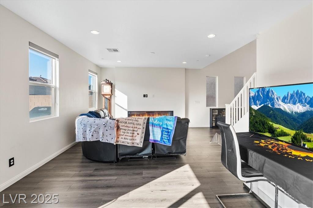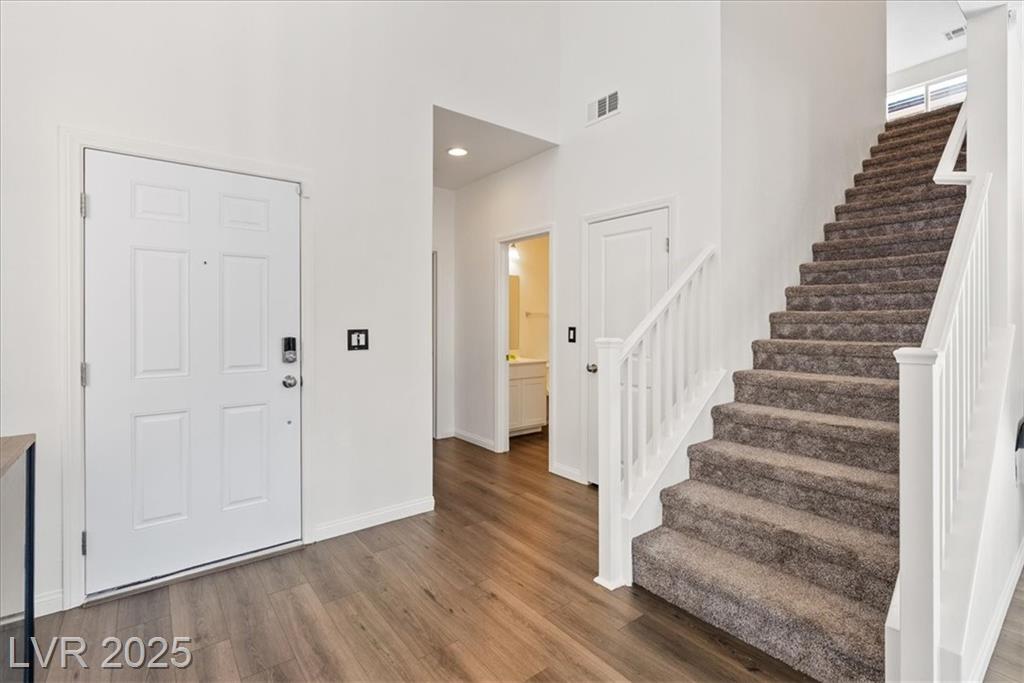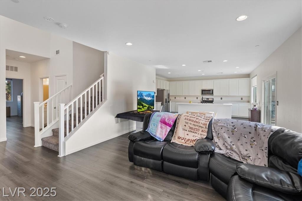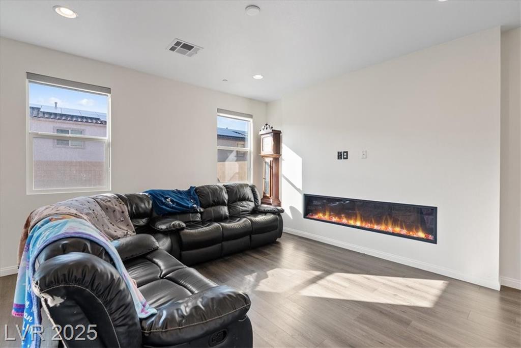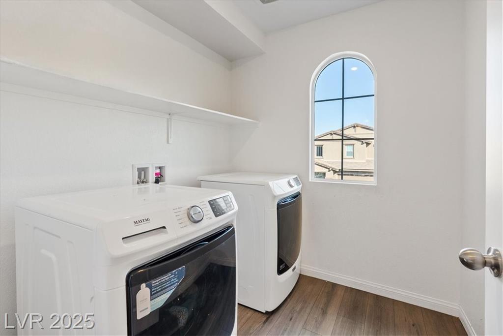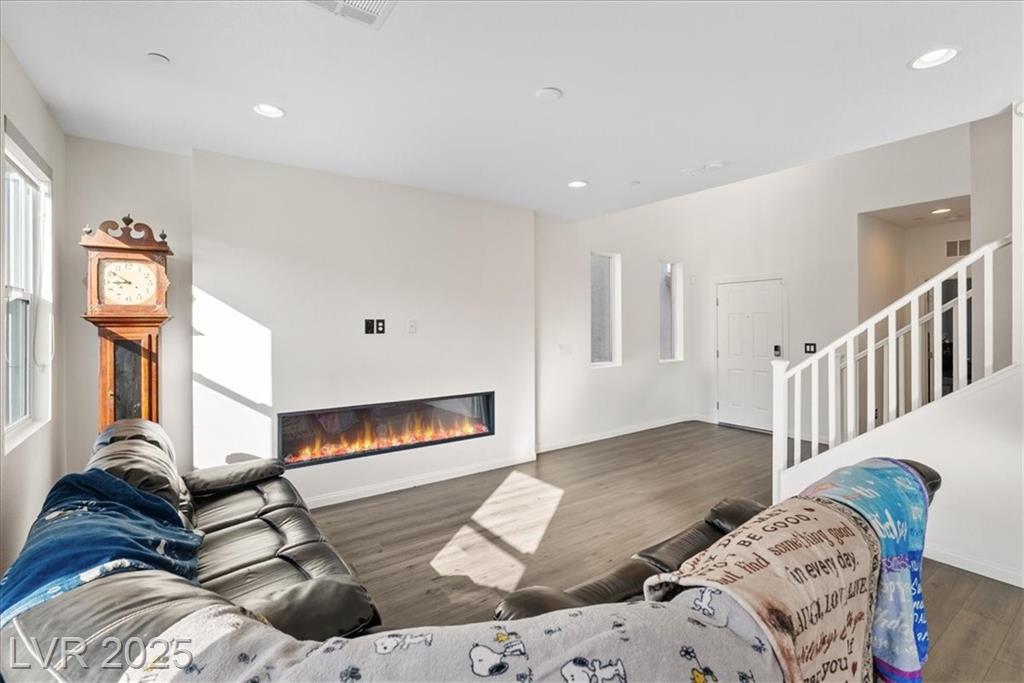 Welcome to this stunning 4 bedroom, 3 bathroom home in Henderson with an oversized 2-car garage. The beautiful kitchen features quartz countertops, stainless steel appliances, a spacious island with sink, and a large window for natural light. The open floor plan offers a dining space and cozy living room with fireplace, complemented by luxury plank vinyl flooring throughout the first floor. A convenient downstairs bedroom adds flexibility. Upstairs, the large primary suite boasts an ensuite bathroom with walk-in closet, along with a versatile loft and laundry room with shelving. The backyard is perfect for entertaining with pavers and low-maintenance turf. Located near Cadence Central Park, this home combines comfort and convenience in a highly desirable community.