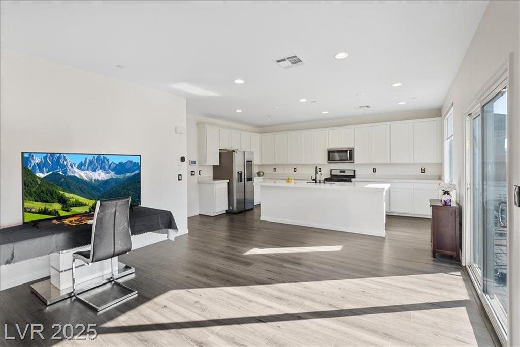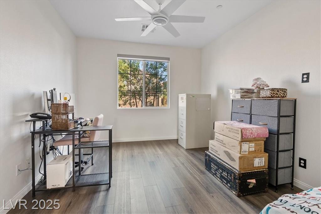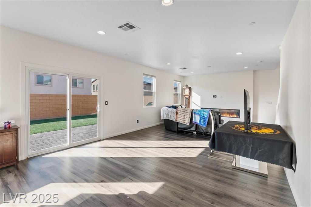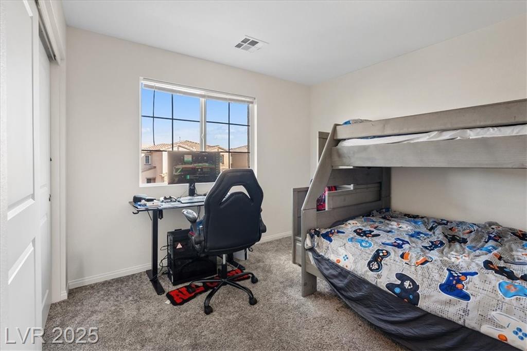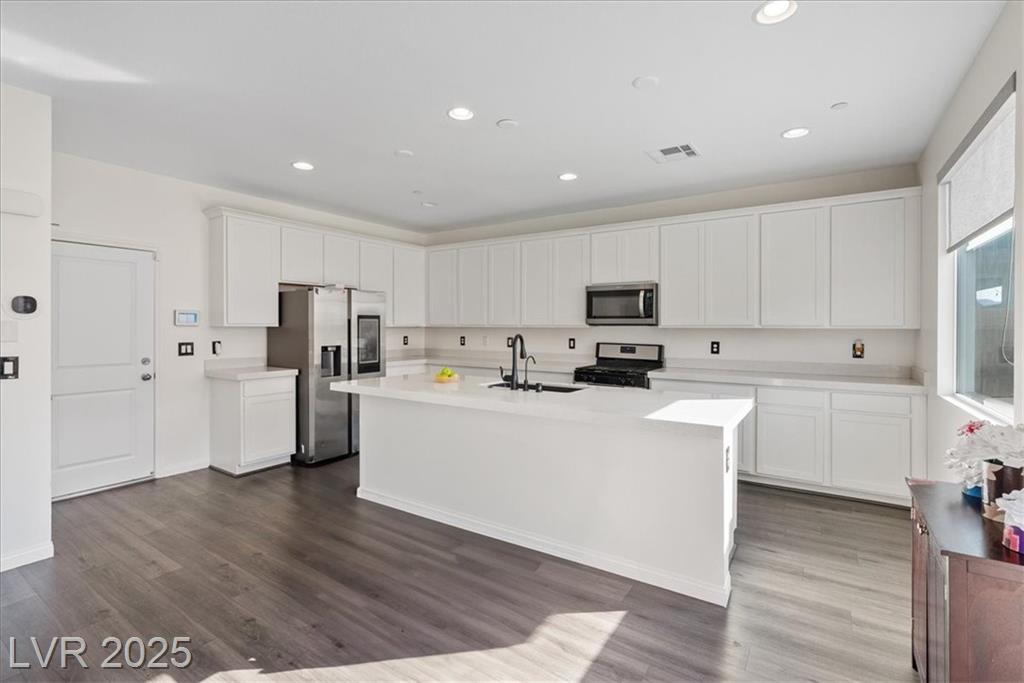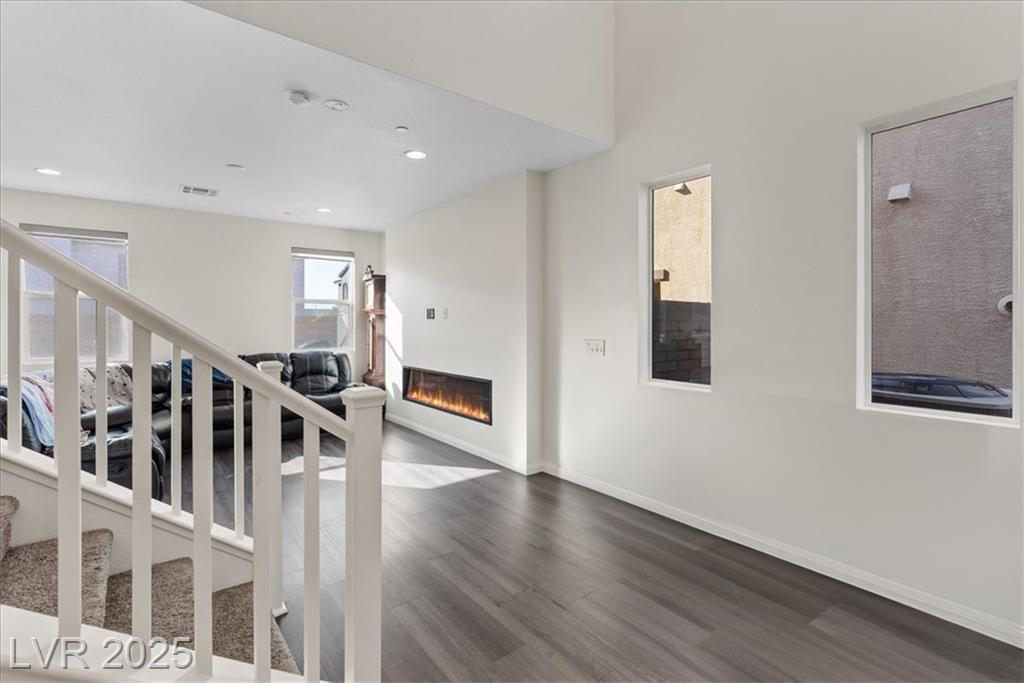 Welcome to this stunning 4 bedroom, 3 bathroom home in Henderson with an oversized 2-car garage. The beautiful kitchen features quartz countertops, stainless steel appliances, a spacious island with sink, and a large window for natural light. The open floor plan offers a dining space and cozy living room with fireplace, complemented by luxury plank vinyl flooring throughout the first floor. A convenient downstairs bedroom adds flexibility. Upstairs, the large primary suite boasts an ensuite bathroom with walk-in closet, along with a versatile loft and laundry room with shelving. The backyard is perfect for entertaining with pavers and low-maintenance turf. Located near Cadence Central Park, this home combines comfort and convenience in a highly desirable community.