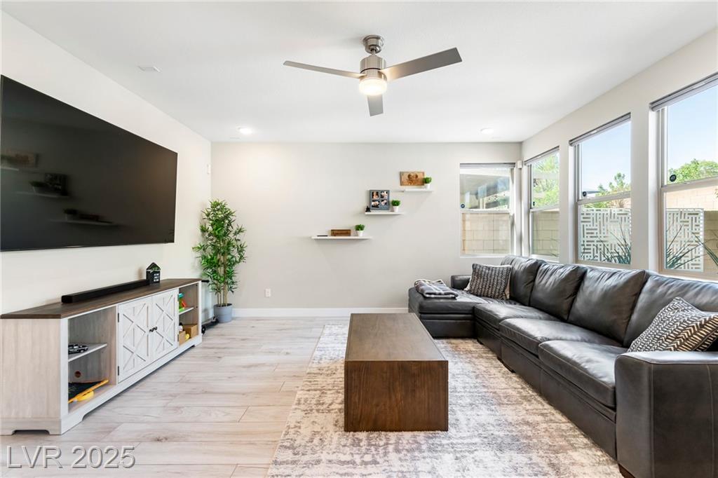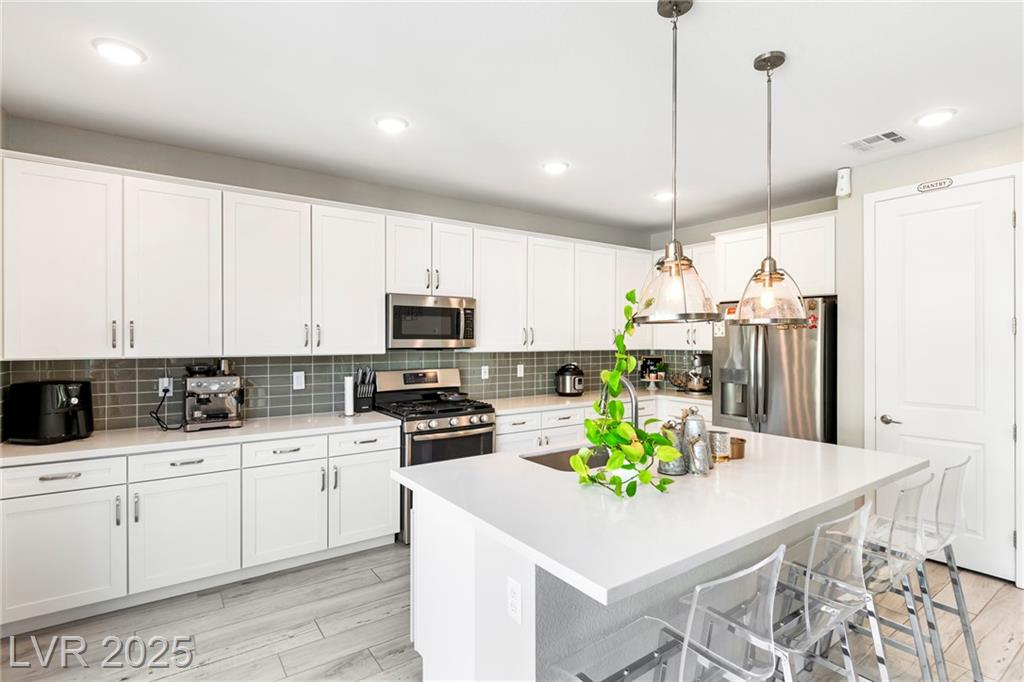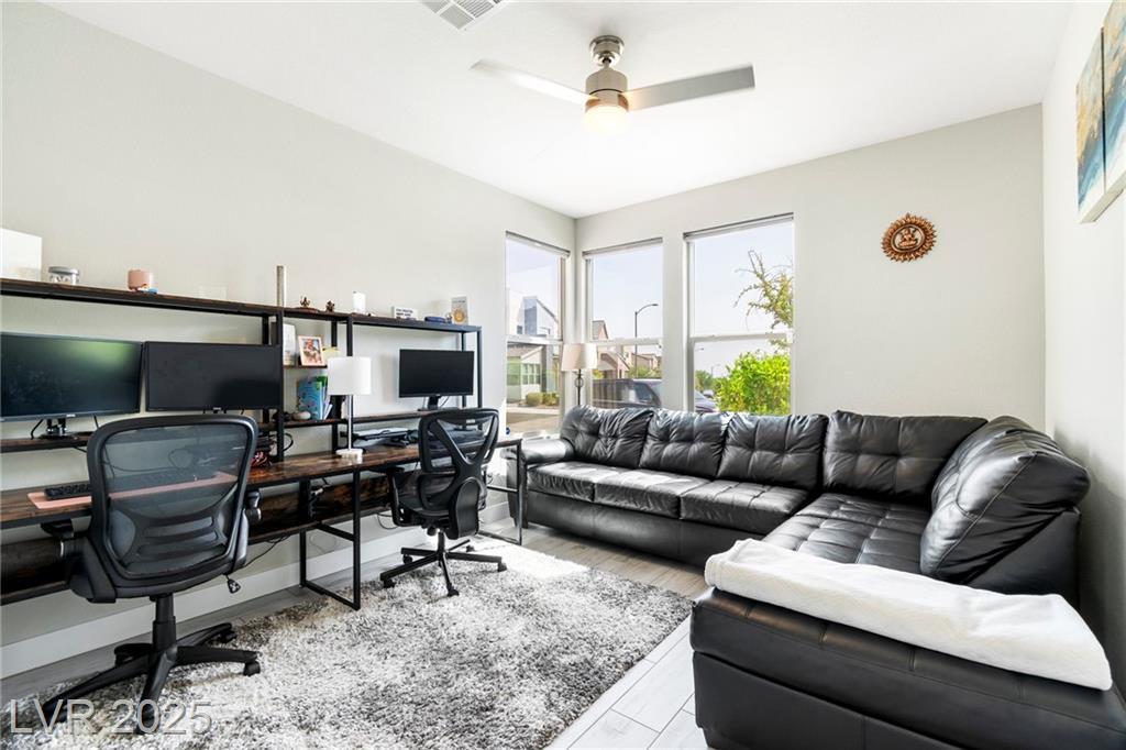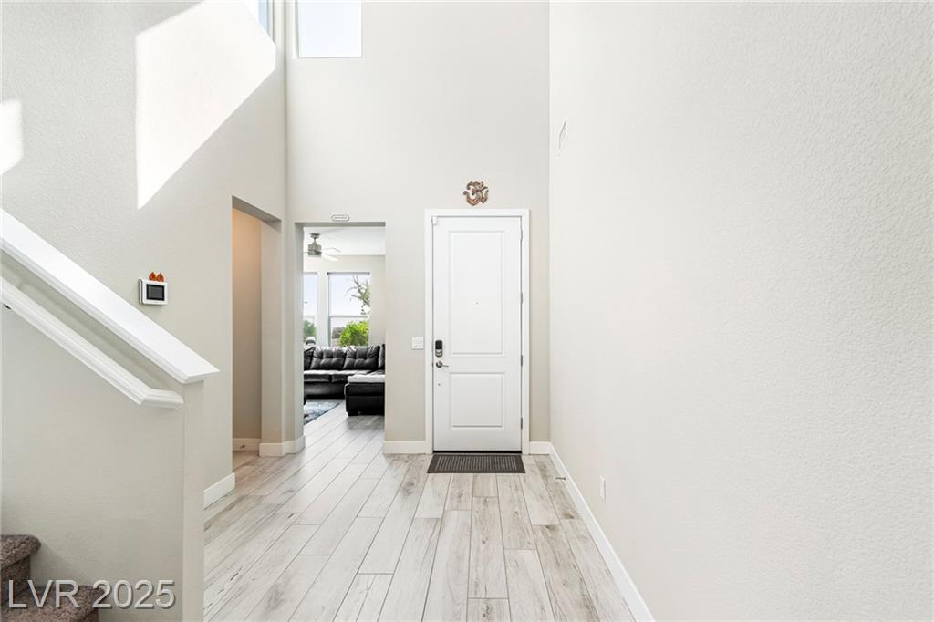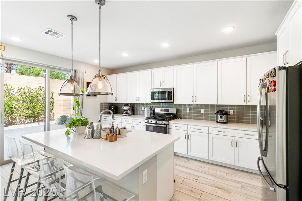 Welcome to this beautifully upgraded home in the heart of Skye Canyon, where simplicity meets sophistication. Thoughtfully designed with modern finishes throughout. This home offers comfort, style, and functionality in every corner. The chef’s kitchen features a sleek quartz island, upgraded cabinetry, and stainless steel appliances, seamlessly flowing into the open-concept dining and living area. A flexible downstairs den/office provides the ideal space for remote work or a cozy retreat. Upstairs, is a spacious primary suite with a spa-inspired bathroom, along with two generously sized secondary bedrooms offering ample space. Step outside to your private oasis—an artfully landscaped backyard designed for tranquility and relaxation. Highly sought-after Skye Canyon community, residents enjoy access to resort-style amenities including pools, parks, fitness centers, sports courts, and more. This home truly has it all—modern upgrades, functional spaces, and a lifestyle you’ll love.