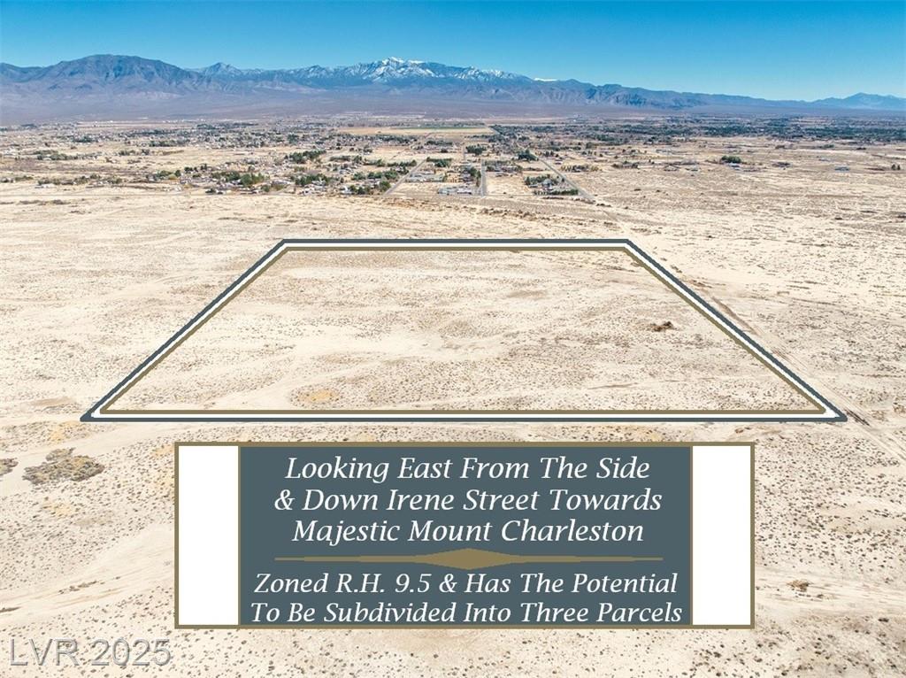 Nicely Nestled Near The Base Of Pahrump's Western Mountains Is Where More Than 36 Acres Of Pristine Property Awaits You~~~Priced Wonderfully At Less Than $10,000 Per Acre, 3870 W. Irene St. Offers Beautiful Views, Wide Open Spaces & More Than 1.5 Million Sq. Feet For Your Pahrump Plans~~~The Property Is Zoned For Private Well Septic With Power Located Nearby On Murphy St. & Irene St.~~~These Extra Large Parcels In This Area Are Zoned R.H. 9.5 & Can Possibly Be Subdivided Into Three Separate Parcels~~~Located Less Than 15 Minutes From The Center Of Town, About An Hour From Las Vegas, This Property Allows You To Be A World Away While Still Enjoying Modern Day Convenience & Activities~~~The Seller Will Finance (If Needed) With A Third Down Or Ask About Lenders That Are Now Offering Land Loans~~~This Is A Fantastic Opportunity To Secure An Extra Large Parcel For A Great Price, Make It Yours!