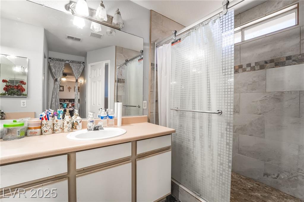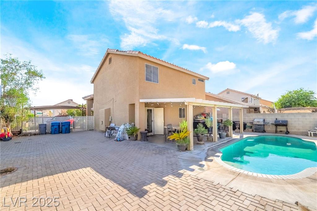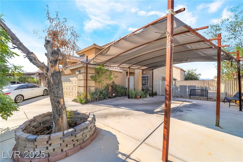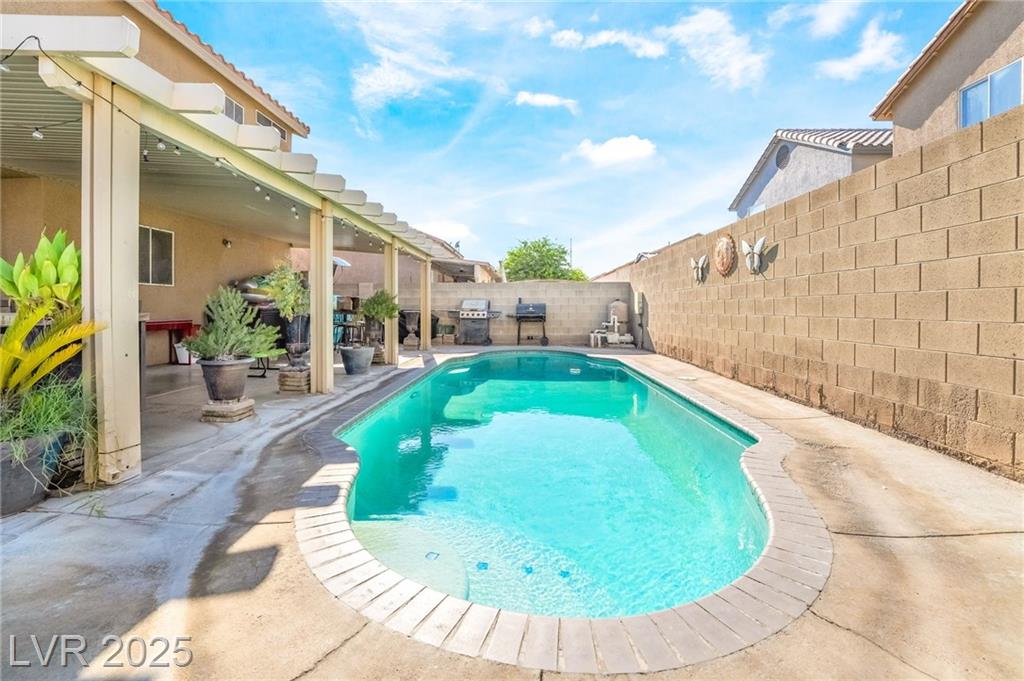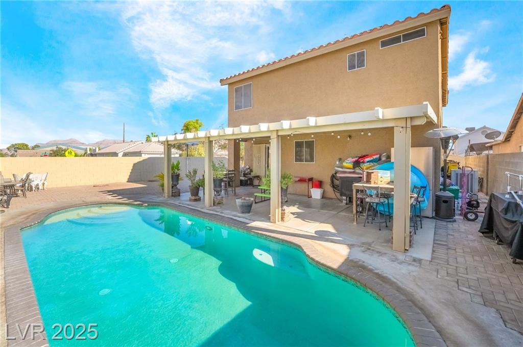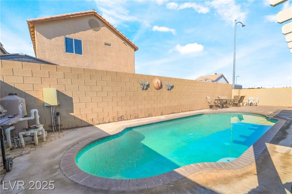 Welcome to this spacious 4 bedroom, 3 bathroom corner lot home featuring RV parking and no HOA! This beautifully maintained two story residence offers a well designed layout with two separate living rooms, one of which includes a cozy fireplace perfect for relaxing or entertaining. The upgraded kitchen showcases custom cabinets with plenty of storage and prep space for cooking enthusiasts. Step outside to a large private backyard ideal for gatherings, complete with a sparkling pool, a covered patio, and room for gardening, grilling, or outdoor lounging. The front yard includes a gated driveway with a custom shade structure providing additional covered parking. Located on a desirable corner lot with ample space and privacy, this home is perfect for families, entertainers, or anyone seeking comfort and functionality. Conveniently located near schools, shopping, dining, and major roads. Don’t miss your chance to make this beautifully upgraded Las Vegas home your own!