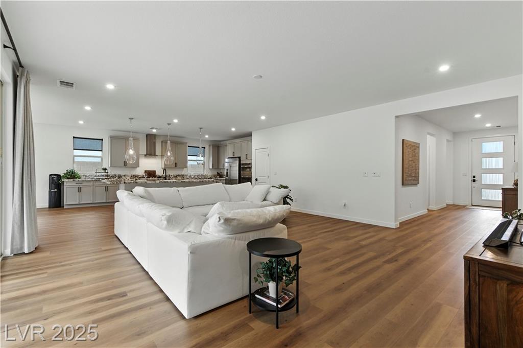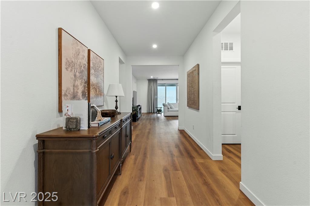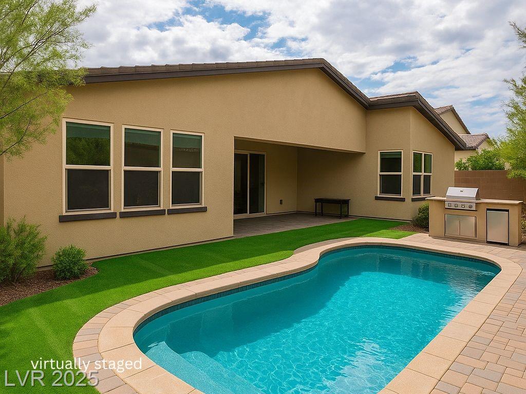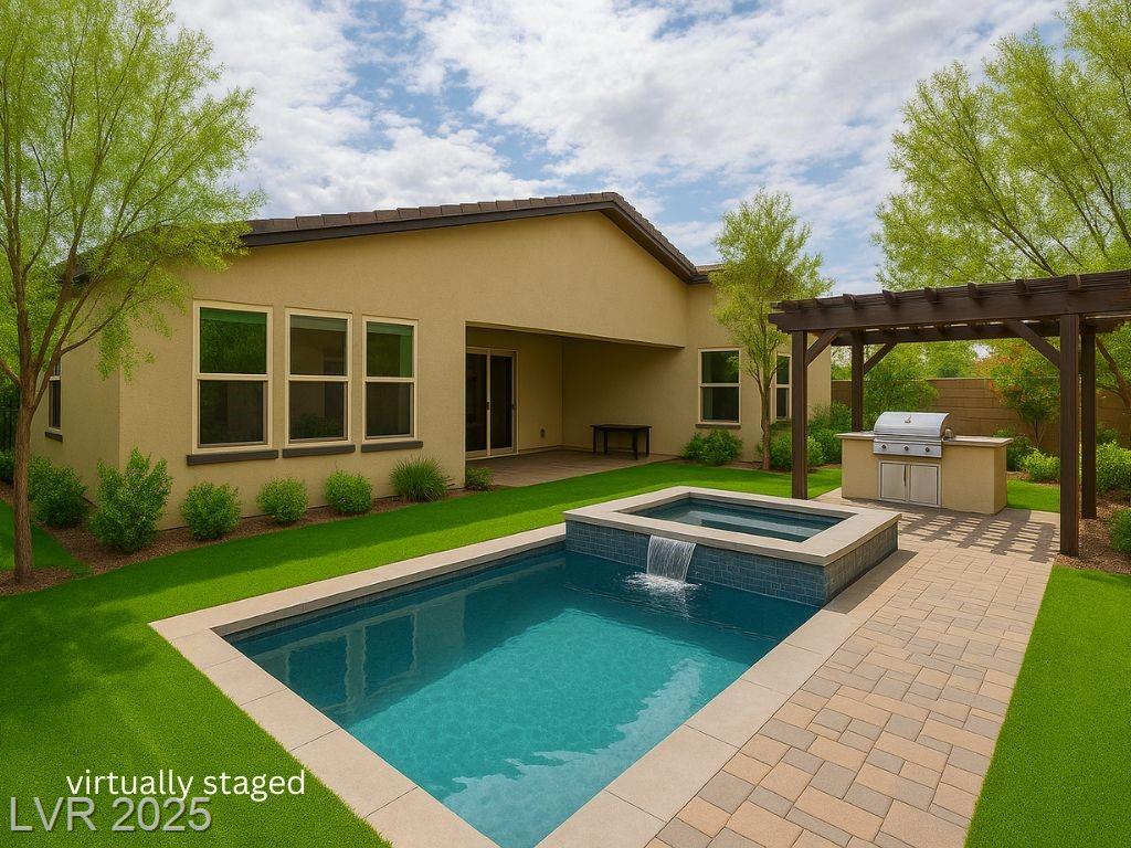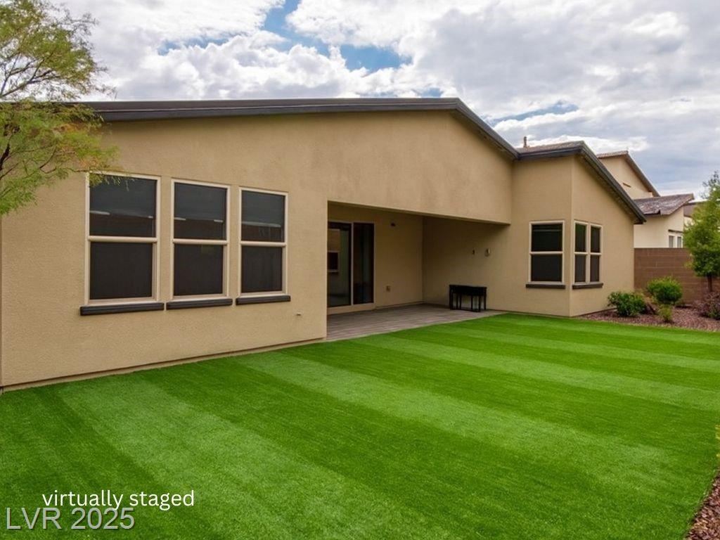 Welcome to this stunning 4-bed (1 is Den w/ Doors) 2.5-bath single-story home designed for modern living. Your future residence features an open-concept layout with a spacious great room that seamlessly connects to the gourmet kitchen. Here you’ll find stainless steel appliances, a gas cooktop with a sleek stainless-steel glass wall-mounted range hood, built-in oven, expansive island, and modern cabinetry—perfect for both everyday meals and entertaining. The luxurious primary suite offers a spa-like bathroom & generous walk-in closet, while the secondary bedrooms provide comfort & flexibility. Outside to you'll enjoy a large covered patio with recessed lighting, overlooking a low-maintenance backyard. Home has been upgraded w/ Smart Home Package at Panel. Located just 5 minutes from the 215 freeway & Aliante Casino/Hotel, this home also offers close proximity to parks, shopping, dining, & top-rated schools. Style, comfort, & convenience come together in this beautifully designed home!