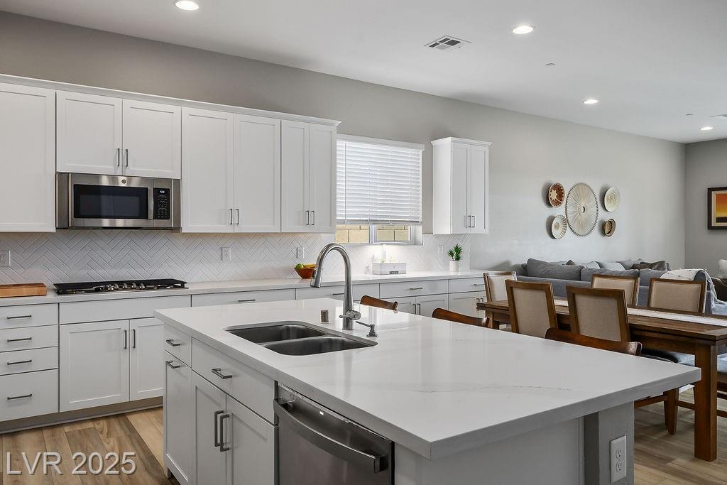 Welcome to your dream home in a highly desired gated masterplanned community, just steps from walking trails and parks. This beautifully upgraded residences features LVP flooring, upgraded kitchen with beautiful countertops, white cabinetry and a stunning backsplash that makes entertaining a joy. This open and light filled layout offers abundant storage, throughout while the back yard backs to a peaceful greenbelt, perfect for relaxing and private gatherings. Additional upgrades include a tankless water heater, water softener, and an epxoy coated garage flooring. Every detail has been thoughtfully designed to provide modern comfort.