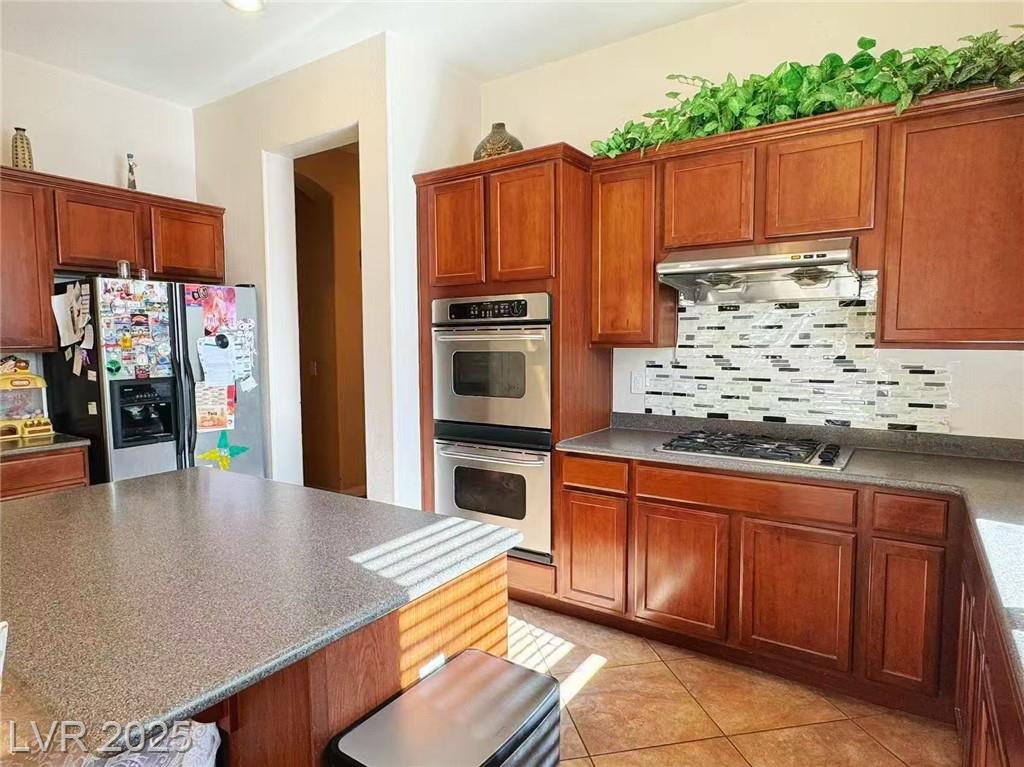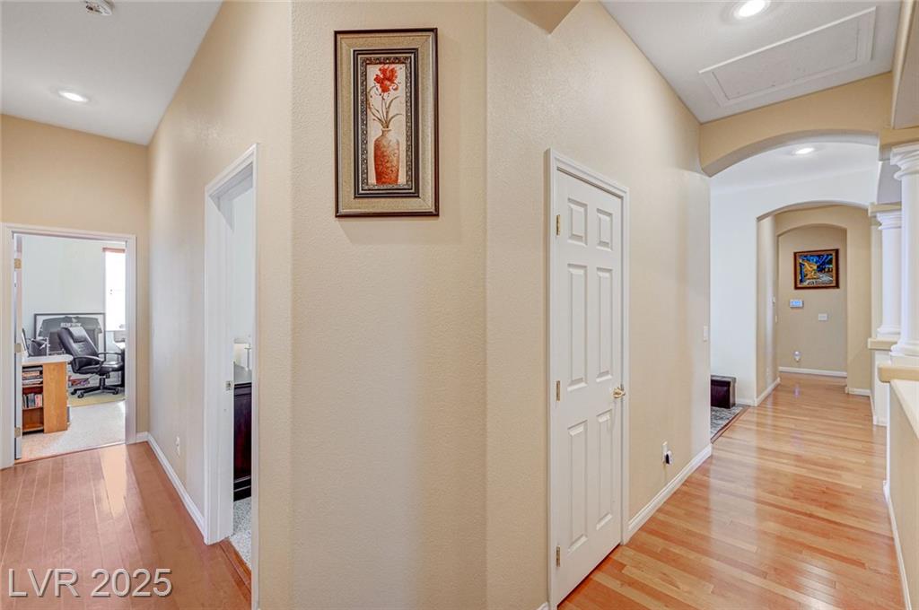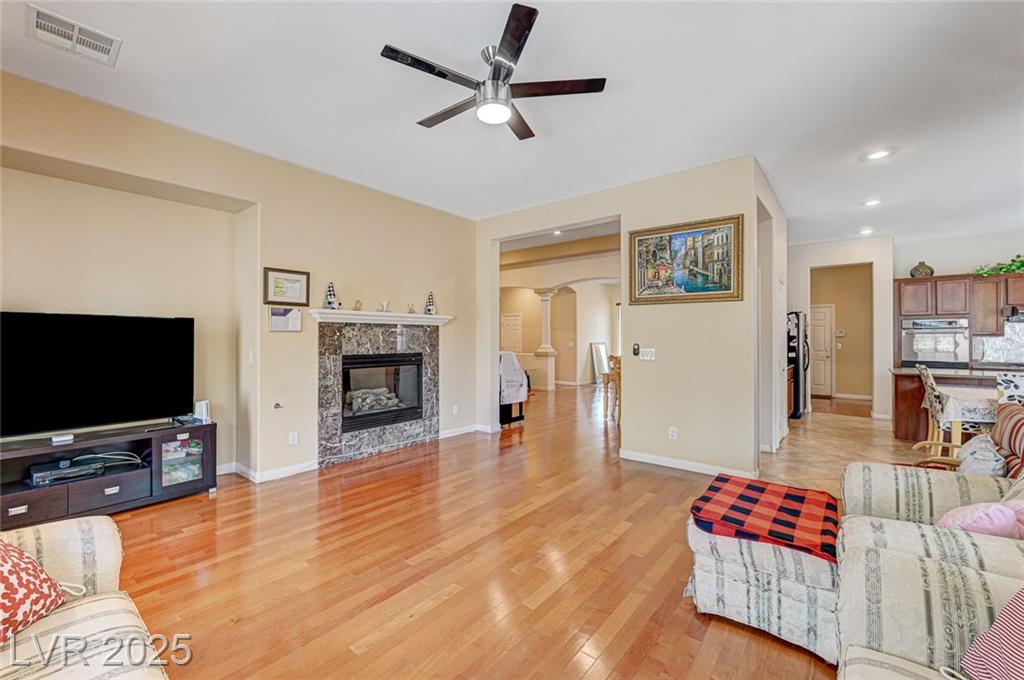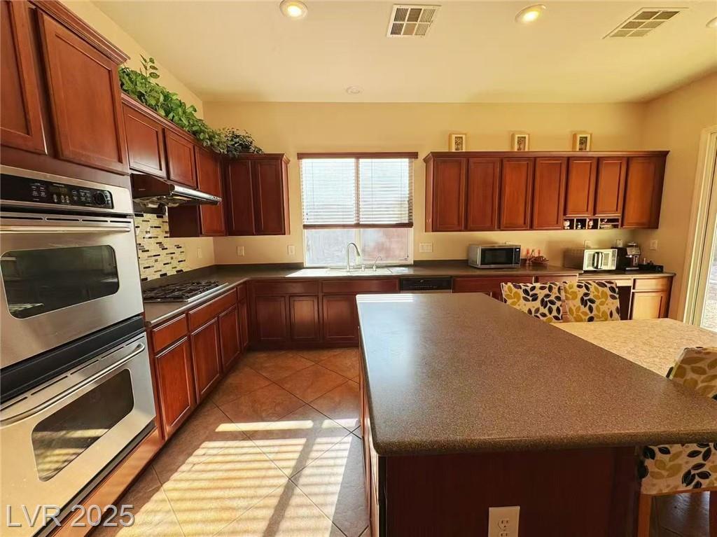 This charming Diamond Peak single-story home is located in the gated Yellowstone community in Mountain’s Edge master plan. Total 10,890 square foot lot, the expansive backyard offers endless possibilities. The house features a split 3-car garage, 4 bedrooms, and 3.5 bathrooms, with spacious 10-foot ceilings throughout. Hardwood flooring, shutters, maple cabinet, covered patio, etc…Community offers a wealth of amenities, including a clubhouse, fitness center, community pool and spa, basketball court, and park. This is truly a must-see property! Step outside to your own private oasis — a meticulously landscaped backyard perfect for entertaining, relaxing, or enjoying breathtaking sunsets over the nearby mountains. Located in the highly sought-after Mountain’s Edge master-planned community, residents enjoy access to parks, walking trails, and a variety of outdoor activities, all while being just a short drive from the vibrant heart of the city.