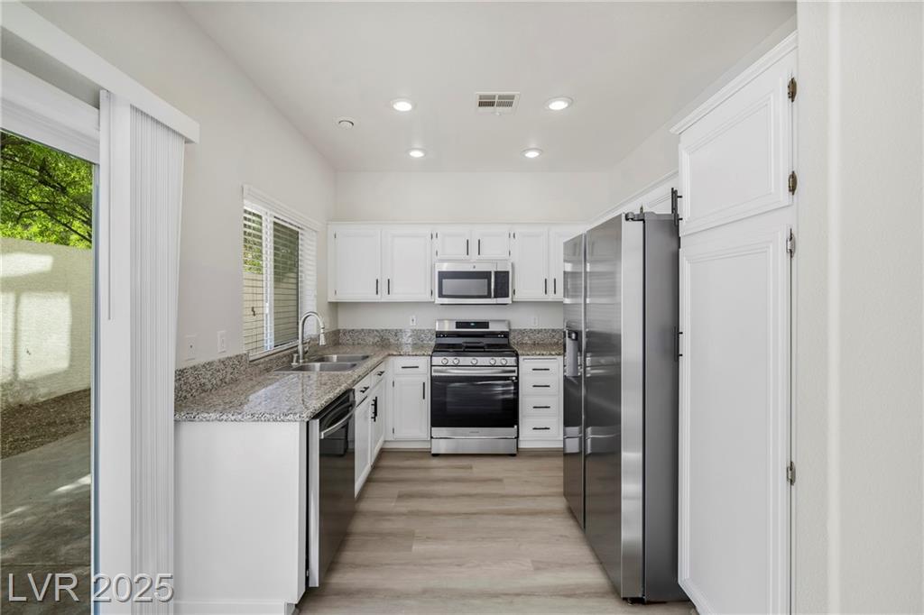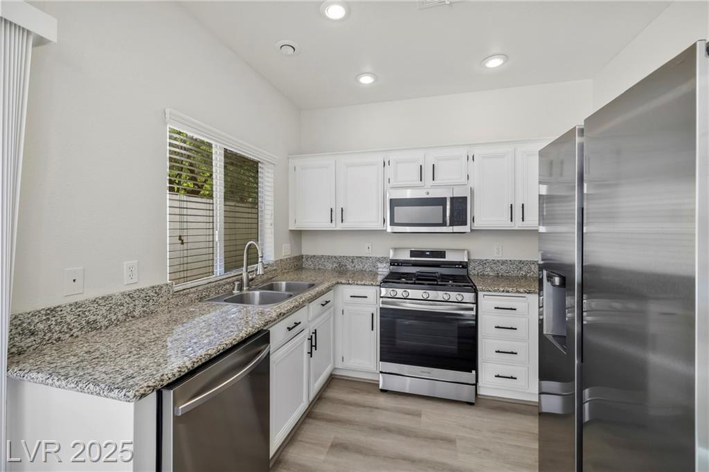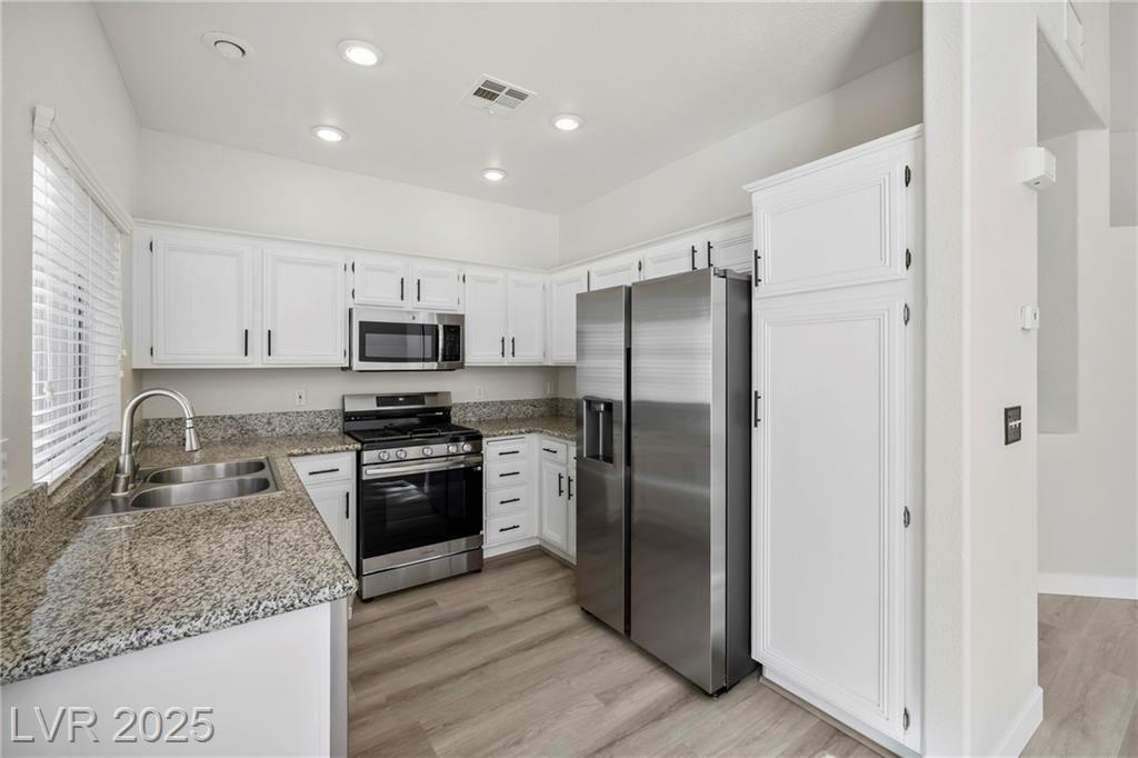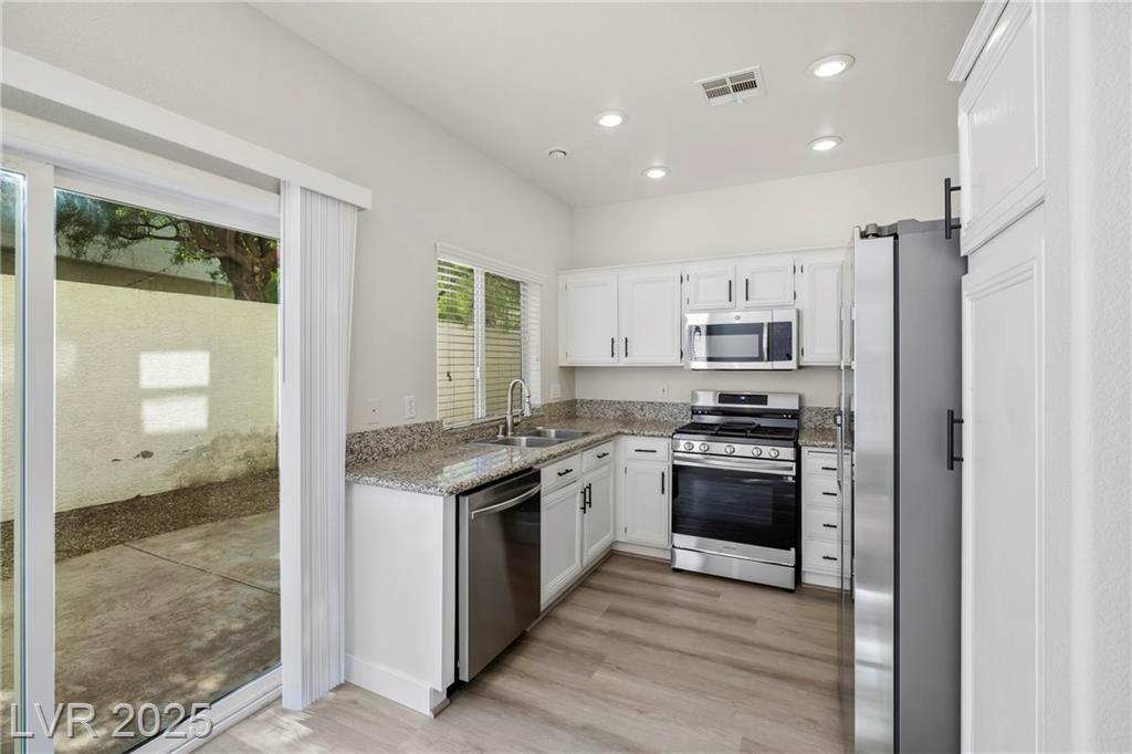 Welcome to this beautifully updated 4-bedroom, 3-bathroom home located in a desirable gated community in Summerlin. This home offers the ideal Summerlin lifestyle—just 8 minutes from Red Rock Casino, 10 minutes from Downtown Summerlin’s shops & dining, and for outdoor lovers, Red Rock National Park is just 20 minutes away, offering world-class hiking & breathtaking scenery. Step inside to a gorgeous open floor plan with soaring vaulted ceilings, creating a bright and welcoming atmosphere the moment you enter. The home features fresh paint throughout, brand-new luxury vinyl plank flooring, & new baseboards that give it a modern look. The kitchen is complete with granite countertops & brand-new stainless steel appliances, perfect for trying that recipe you just found. With its open design, modern updates, & prime location near endless dining, shopping, & recreation, this property is the perfect place to call home!