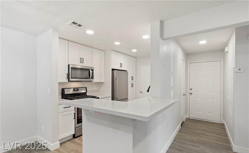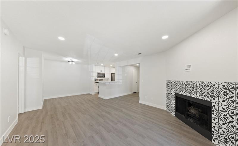 Recently Remodeled 2 bedroom condo with fireplace in living room in a Guard Gated Community. Extensive use of Luxury Vinyl Plank Flooring t/o! Kitchen boosts Quartz counter tops, upgraded Shaker Cabinets and fully equipped with upgraded stainless steel appliances. Quartz Counter tops in Bathrooms as well as in Shower Surrounds with new cabinets, faucets & hardware t/o! . Amenities include Clubhouse, Pool, Spa, Exercise room, Handball/Racquetball courts, Tennis courts, and more. Custom tile surrounds the fireplace. Living room leads to the covered patio. Tenants will have to pay for HOA parking decals.