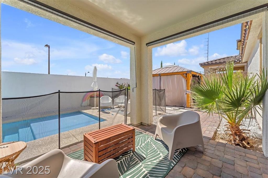 Exit 95 North at Skye Canyon Parkway West. Turn left onto Skye Village. Turn right onto Eagle Canyon. Turn left onto Pinyon Ridge. The house will be on the left.