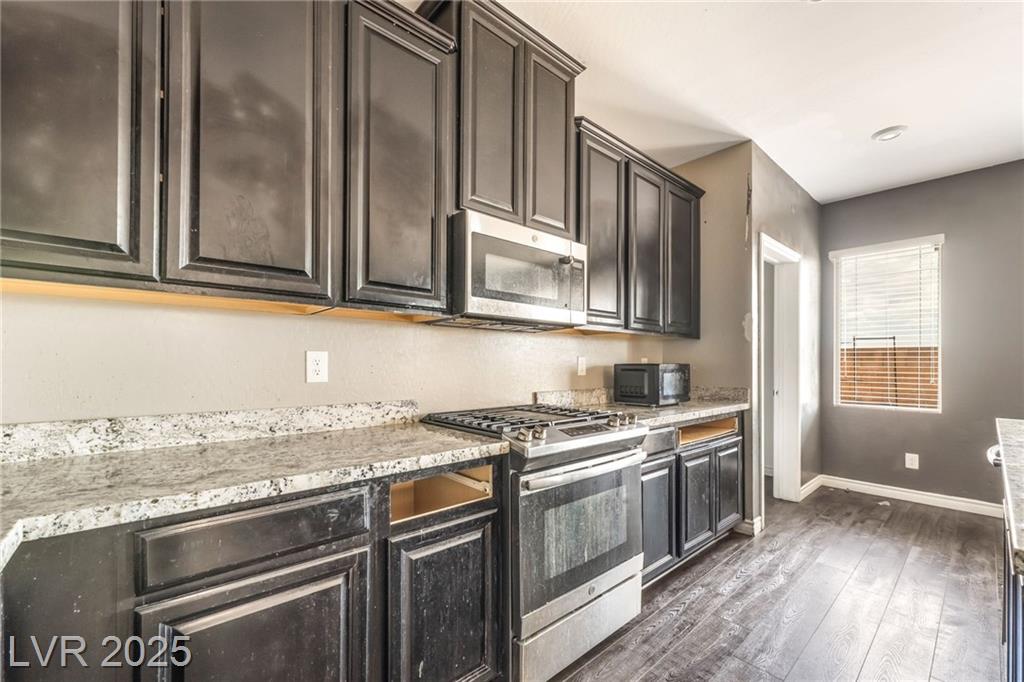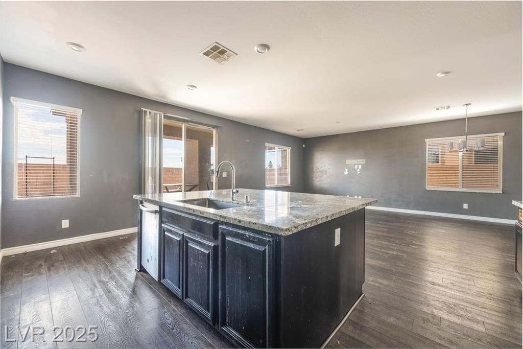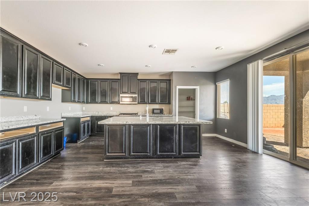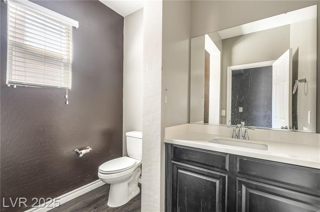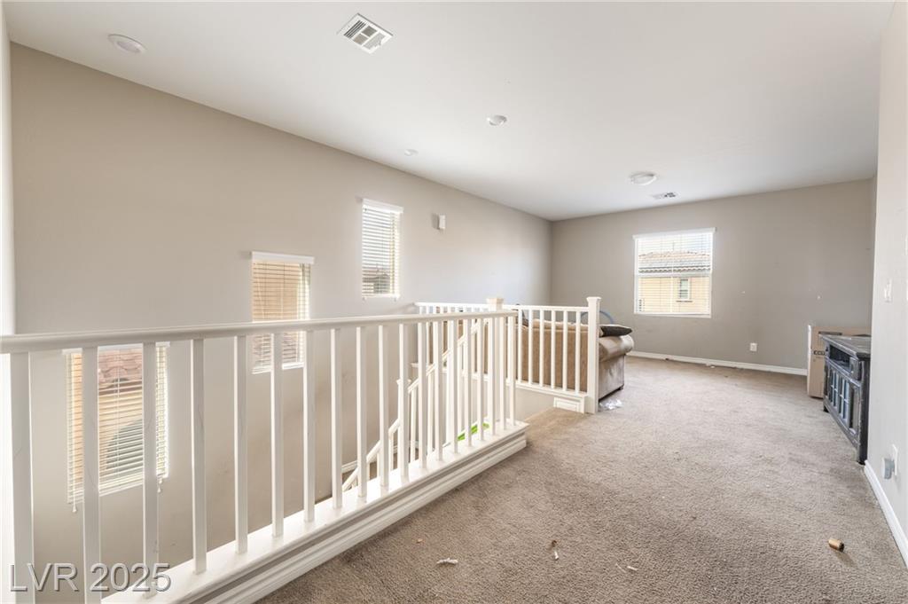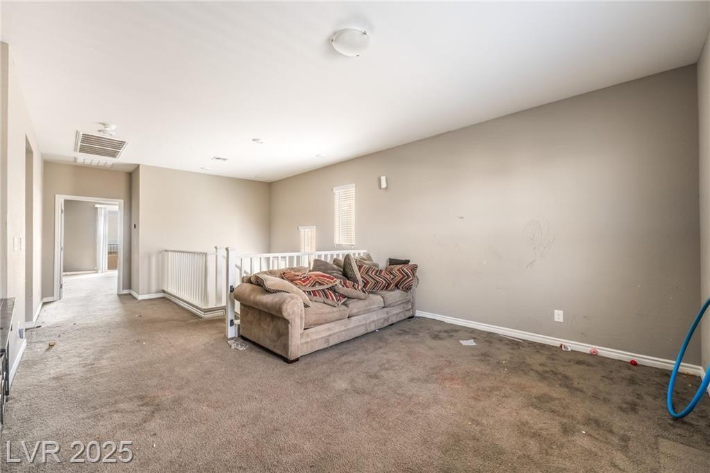 Spacious 2-story home located in Skye Canyon. Open floor plan downstairs with dark hardwood flooring. Kitchen boasts island w/ breakfast bar with granite countertops, plenty of cabinetry, large pantry, and dining area. Kitchen overlooks large living room with sliding glass doors to finished backyard. Make your way upstairs to a roomy loft just off the stairs. Primary bedroom includes balcony overlooking backyard, walk-in closet and separate shower & tub. Secondary bathroom with dual sinks and tub/shower combo.