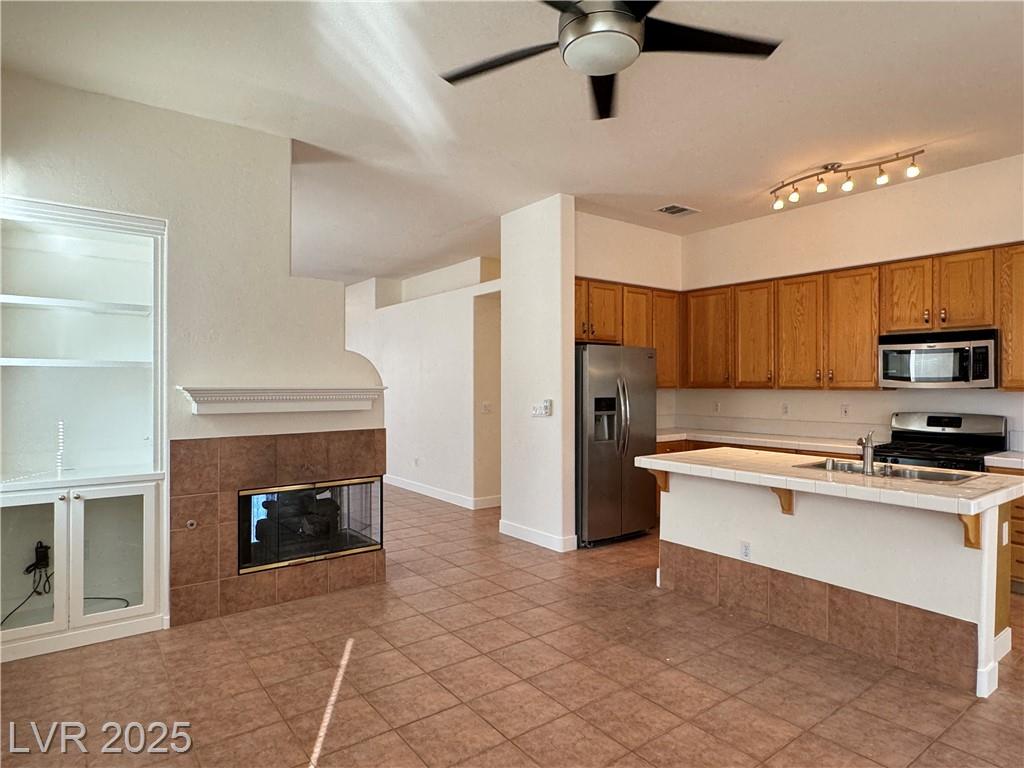 RARE SINGLE STORY 4 BED IN SUMMERLIN! RECENTLY PAINTED & BASEBOARDS THROUGHOUT. HIGH CEILINGS, NO CARPETS, PRIVATE BACKYARD, LARGE CORNER LOT, FULLY LANDSCAPED, 3-WAY FIREPLACE, SEPARATE FAMILY ROOM, 2 CAR GARAGE WITH AMPLE STORAGE. WATER SOFTENER FOR WHOLE HOUSE. SOLAR SCREENS ARE REMOVABLE. CLOSE TO HOSPITAL, SCHOOLS, SHOPPING/DINING, SUMMERLIN PKWAY.
