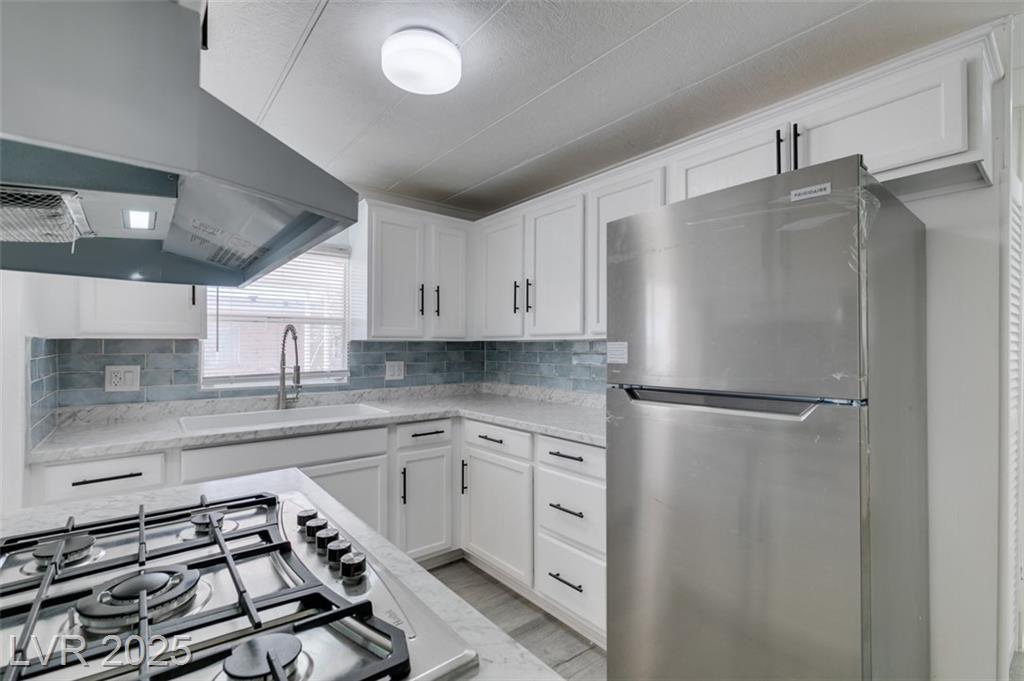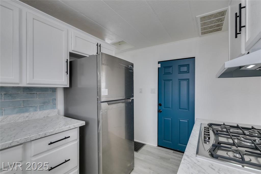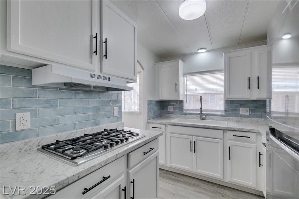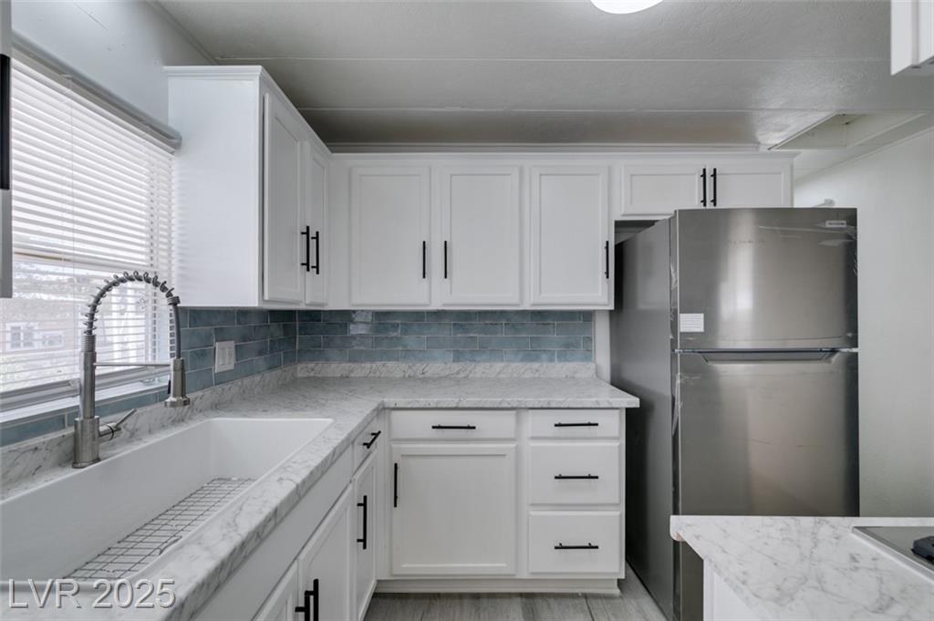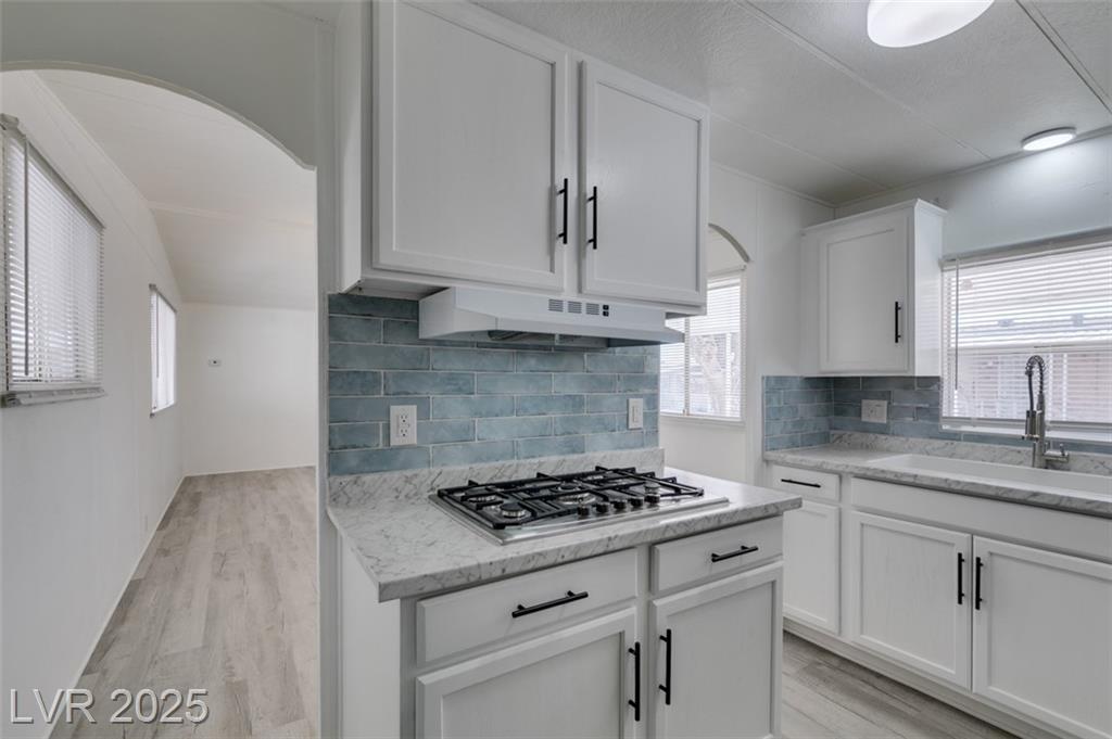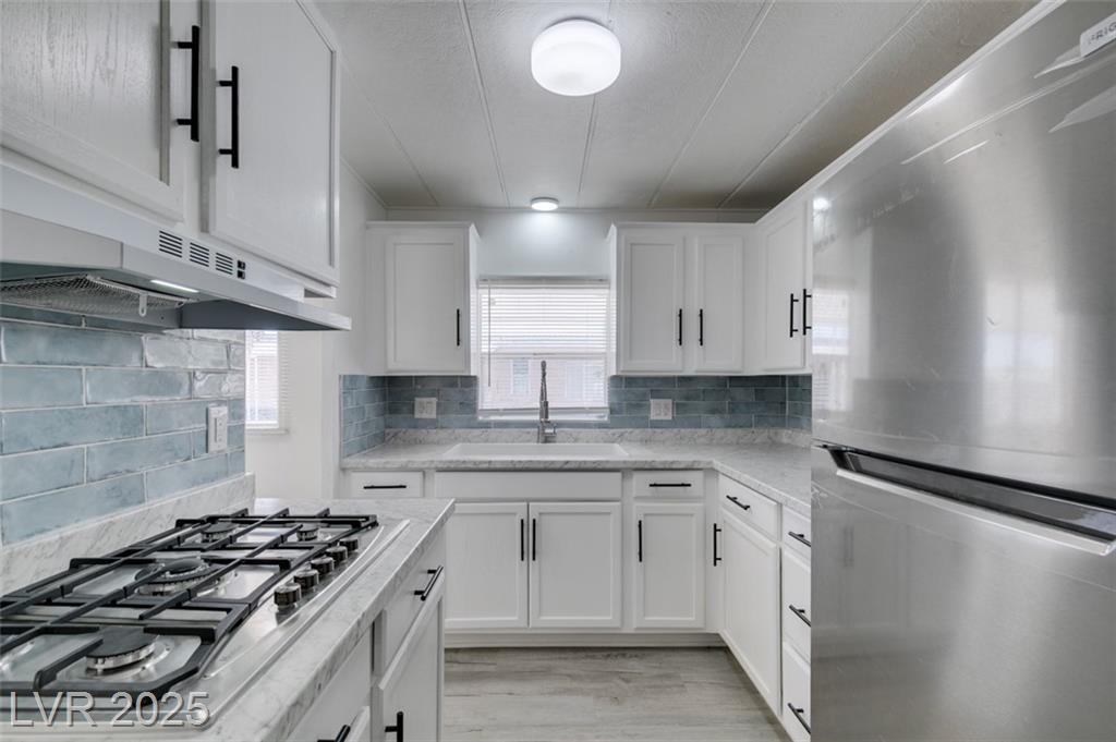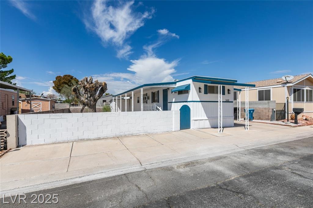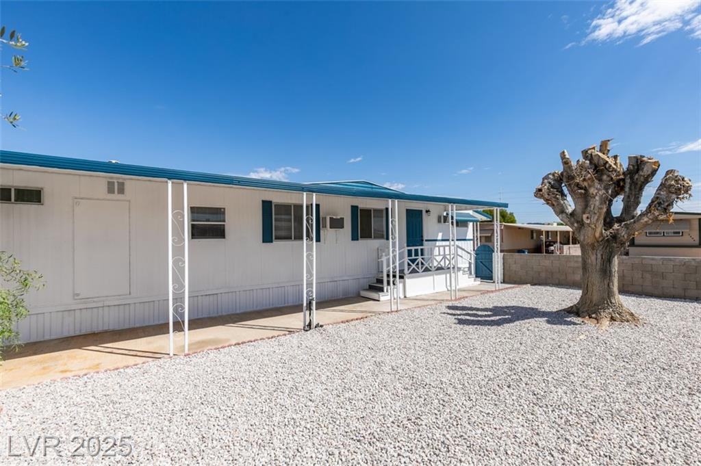 Discover your new home in the highly sought-after 55+ Desert Inn Estates Community! This fully renovated single-wide manufactured home sits on a private, fully fenced lot, offering both comfort and peace of mind. Step inside to an inviting open layout featuring fresh interior and exterior paint, upgraded modern light fixtures, and beautiful waterproof vinyl flooring throughout. The kitchen shines with a designer blue tile backsplash, farmhouse sink, and plenty of cabinet space—perfect for any home chef. The bathroom has been tastefully upgraded with contemporary fixtures, providing a touch of luxury and style. Desert Inn Estates offers fantastic community amenities including RV parking, pool, spa, clubhouse, and parks. Ideally located just minutes from shopping, dining, Sam’s Town, and Boulder Station Casino. Move-in ready and waiting for you to call it home!