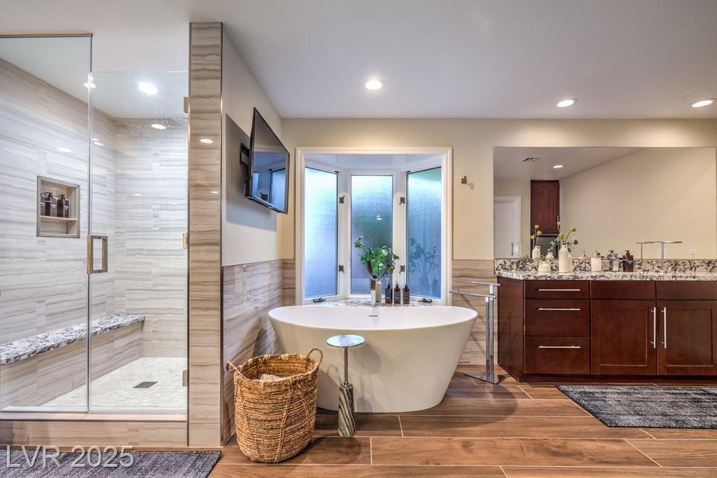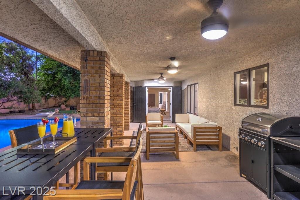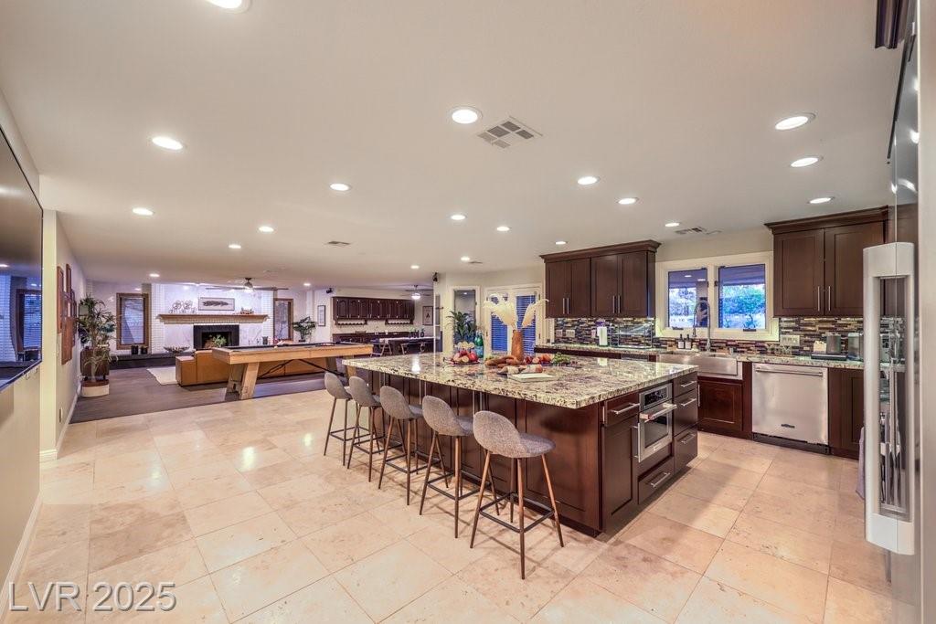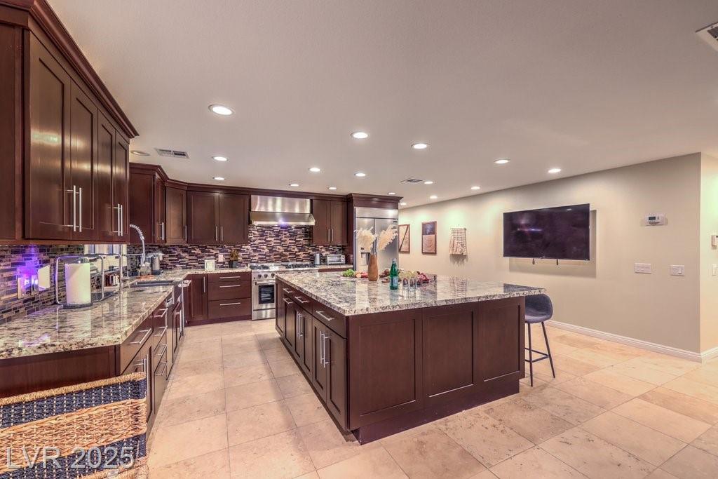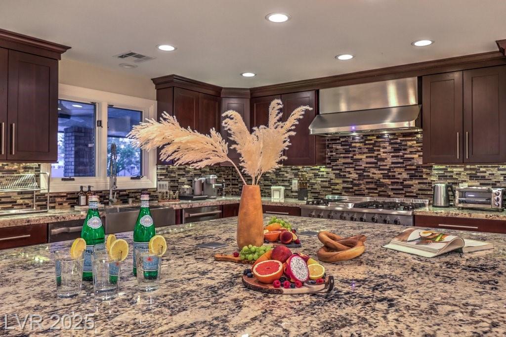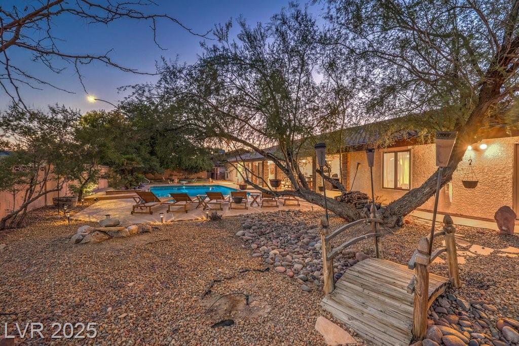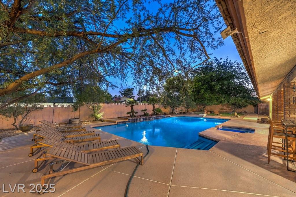 Step into this nearly 4,100 sq. ft. single-story estate, beautifully remodeled to capture both elegance and comfort. Perfectly situated on a half-acre lot with NO HOA in the heart of Las Vegas—just seven minutes from the Strip. The gourmet kitchen is a showpiece, featuring granite countertops, custom cabinetry, a sprawling oversized island with upgraded storage, and professional-grade appliances. Open floor plan connects expansive living and dining areas, making this home ideal for holiday gatherings, celebrations, and hosting family and friends. The master retreat has been fully remodeled, offering a luxurious private sanctuary with a massive walk-in closet to match. With 7 bedrooms and 3 bathrooms, this property provides unmatched flexibility—whether for guests, a home office, or multi-generational living. Outdoors, enjoy your own resort-style retreat with a sparkling heated pool and bubbling jacuzzi, perfect for relaxation or social gatherings. RV PARKING, 3CAR GARAGE, NO HOA
