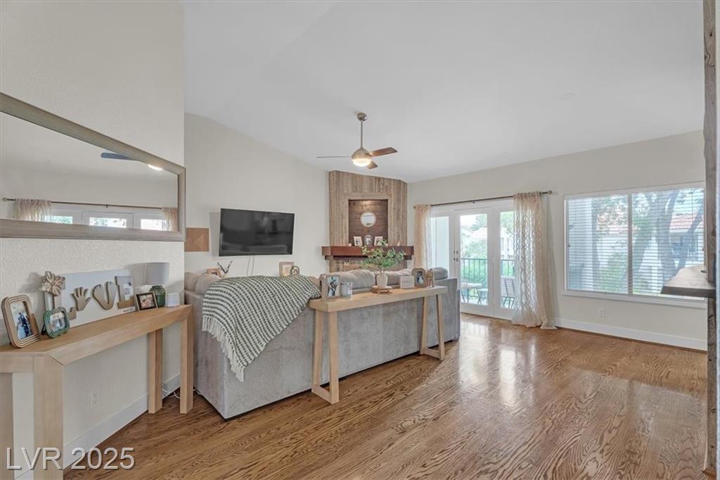 Beautiful home inside Painted Desert, guard gated golf community. 2 bedroom/ 2 bath plus den with 2 car garage. Large master bathroom has upgraded stone shower with frameless glass door. Cieling fans with lights in master, den, and family room. Wood accents on fireplace and breakfast bar. Wood flooring throughout except tile in bathrooms, and carpeted bedrooms. Kitchen includes beautiful mosaic back splash, granite counter tops, and stainless-steel appliances, which includes a new dishwasher. French doors off family room that lead to large balcony with storage. Plantatian shutters and wood blinds throughtout , curtains on french doors and ring doorbell do not stay. Close to pool and jacuzzi.